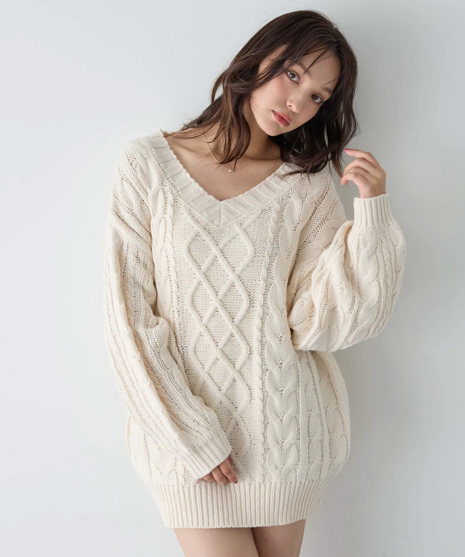 Глубокий V-образный вырез освежает лицо.