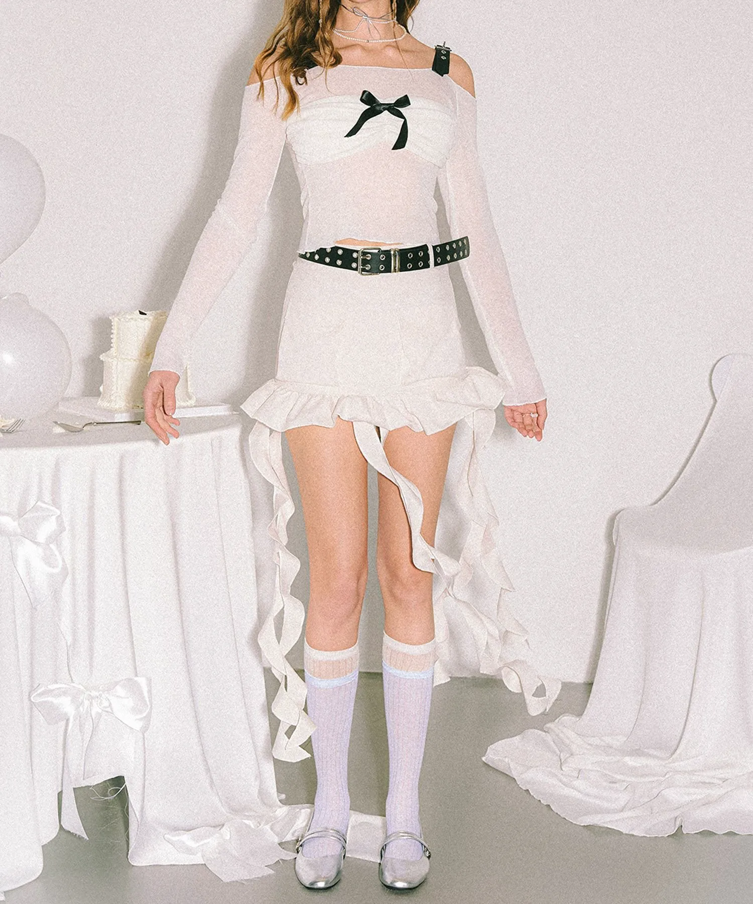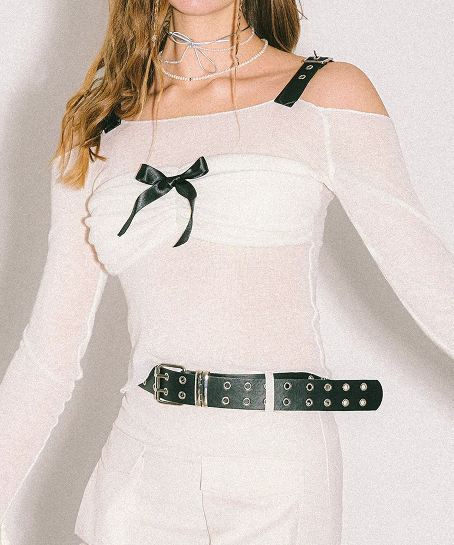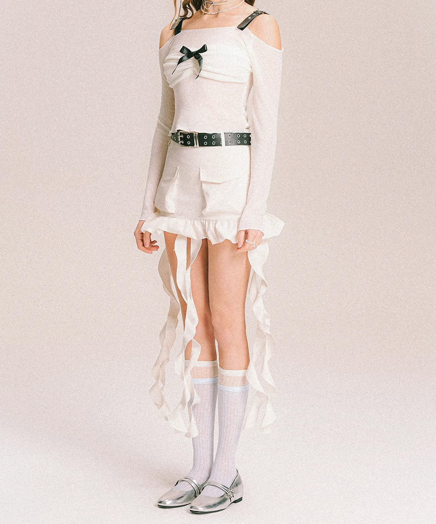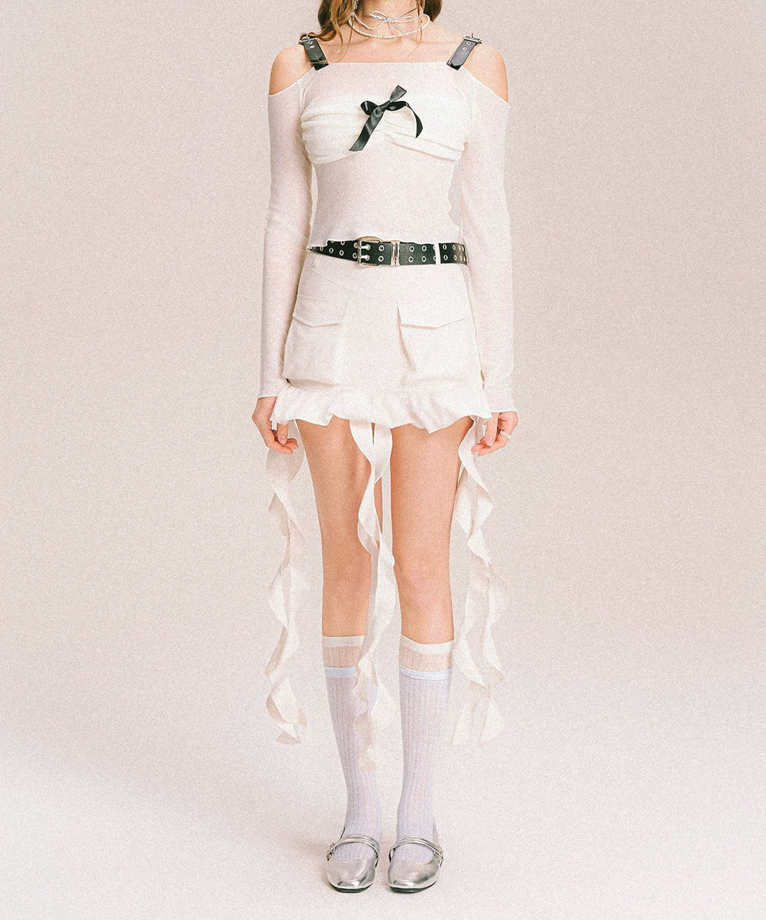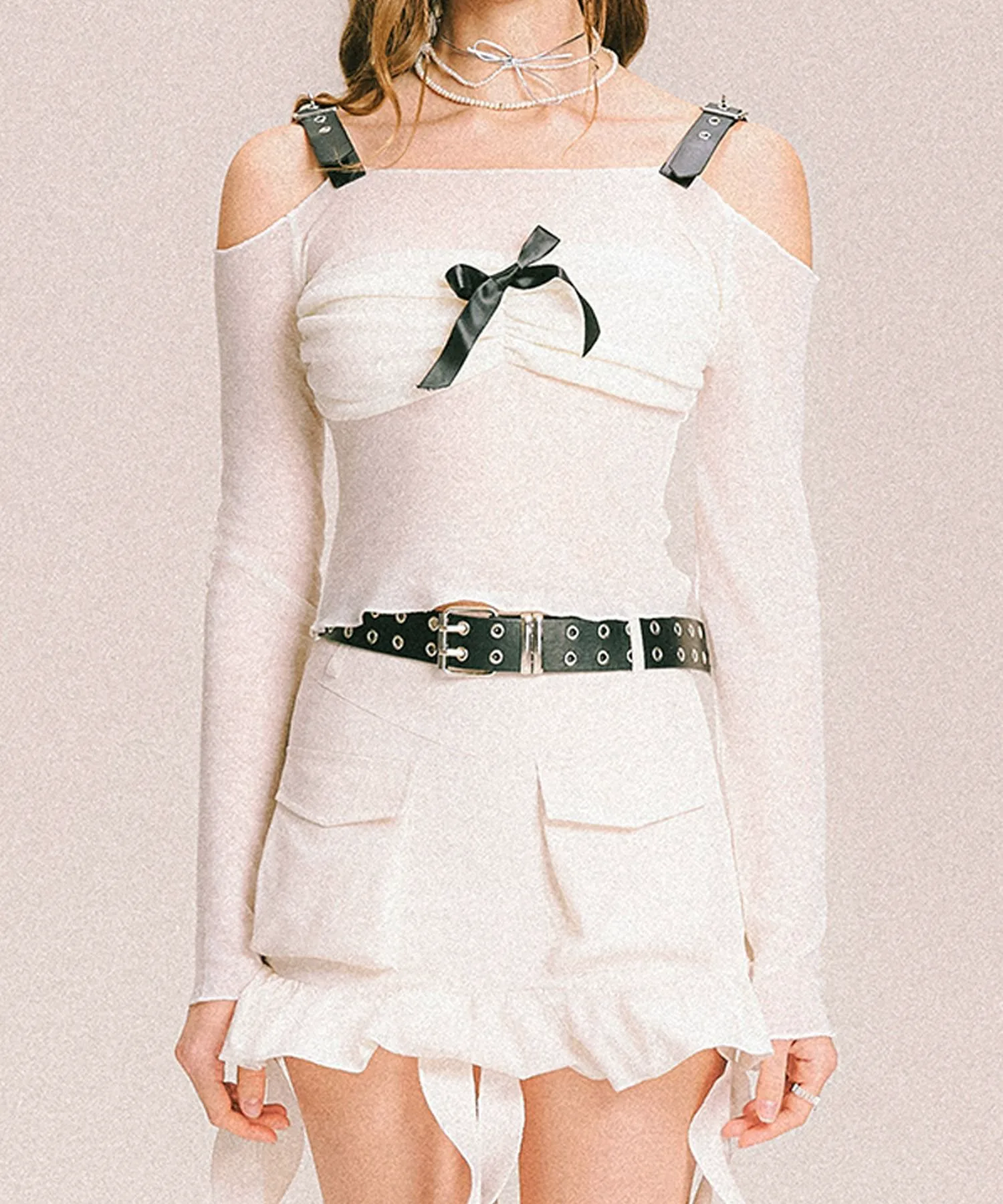 Сборка из лент спереди создает изысканное сочетание нежности и современного стиля.