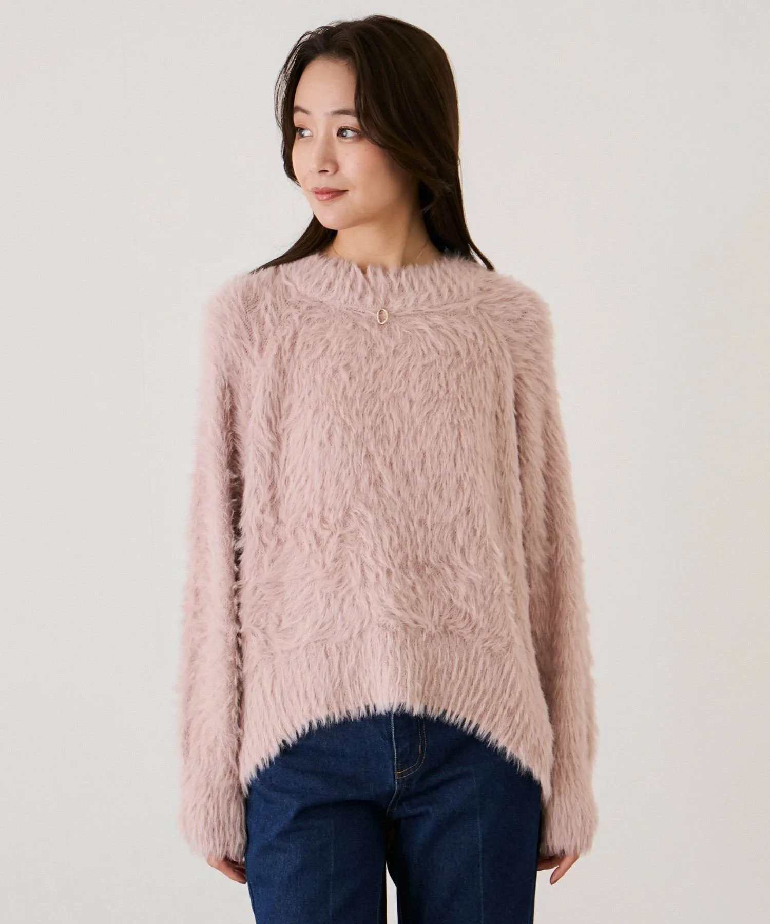- Вязаный пуловер из длинноворсовой ворсистой пряжи.