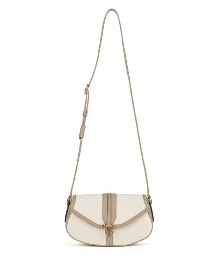 Изготовленная из однотонной канвы с матовой отделкой, она обладает характерной текстурой. Окантовка вдоль клапана подчеркивает кремовый цвет ткани, создавая ощущение элегантности и легкости.
