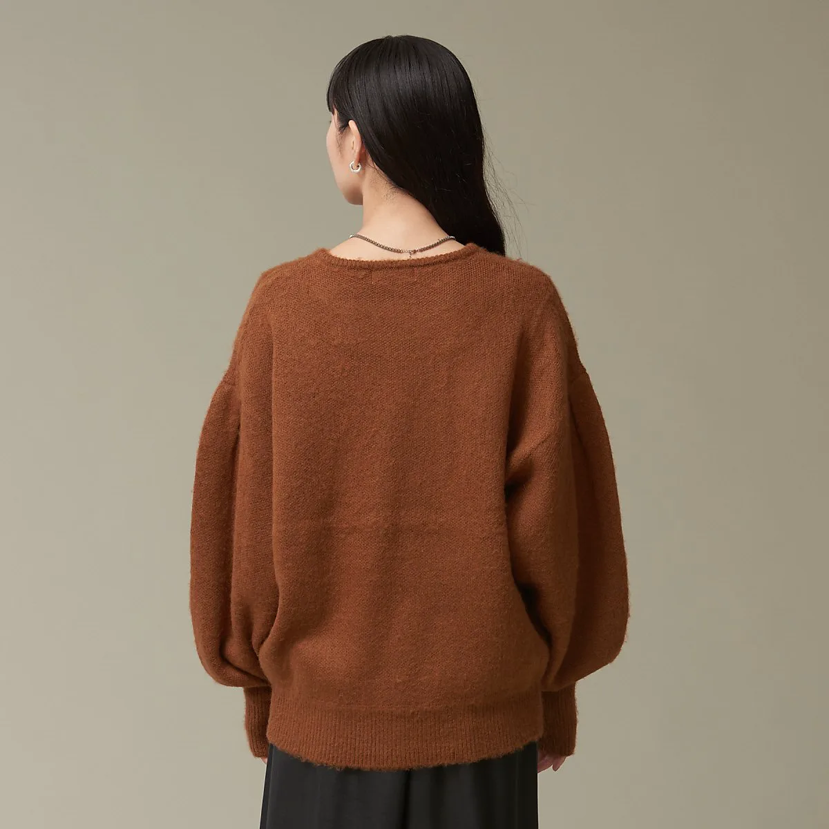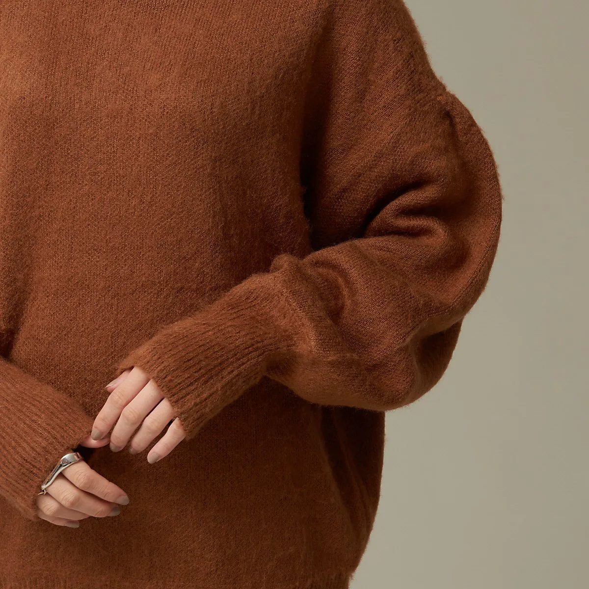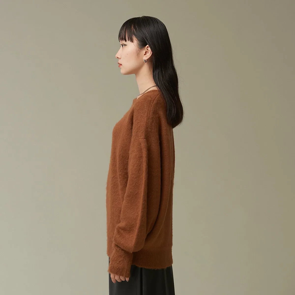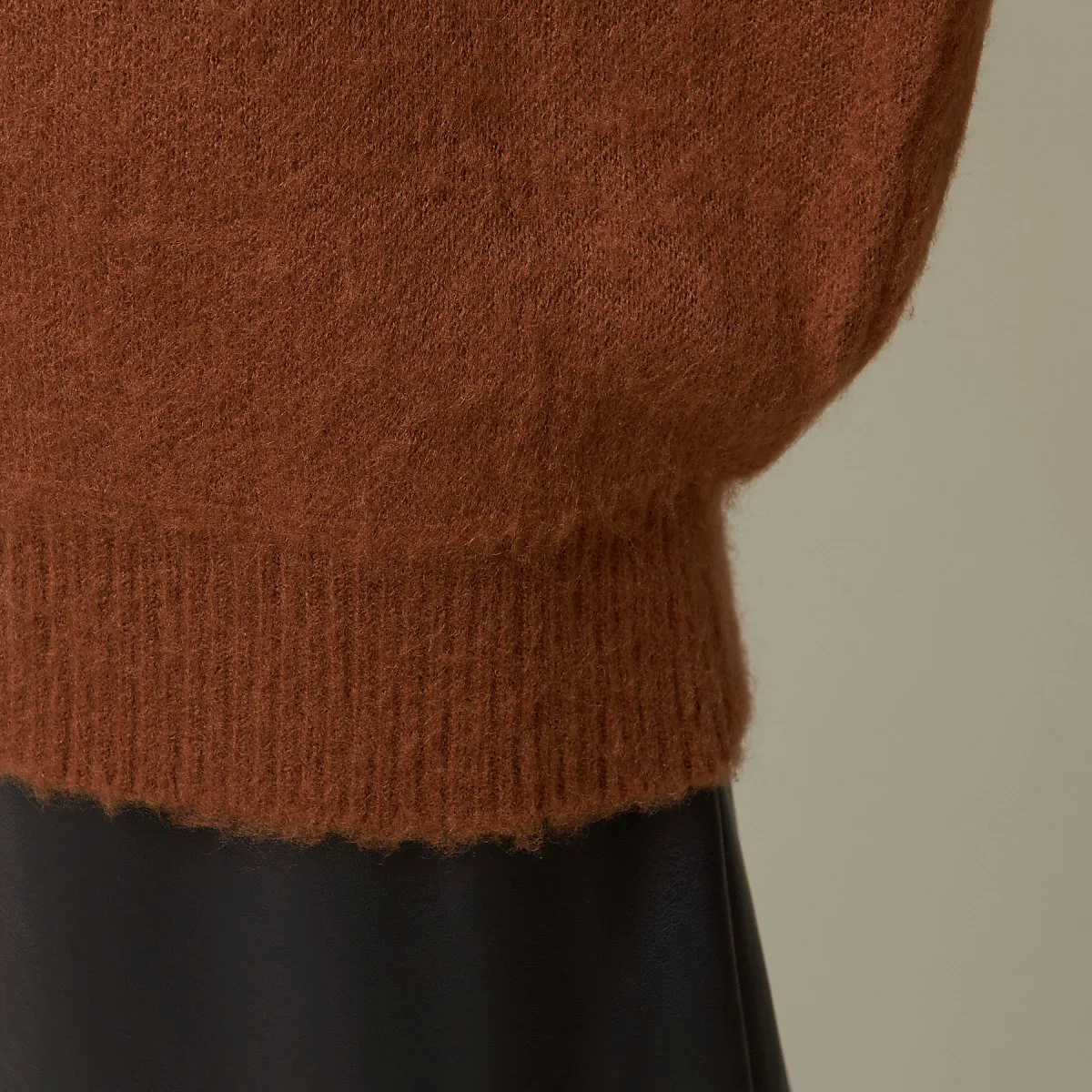 Вязаный пуловер с ворсистой поверхностью, придающей ему текстуру, похожую на мохер.