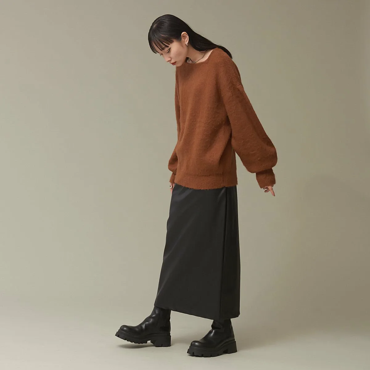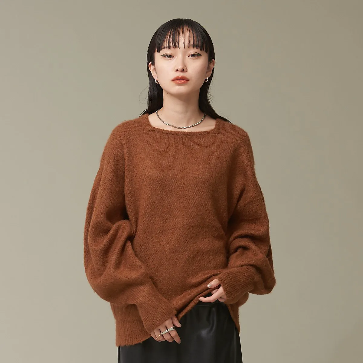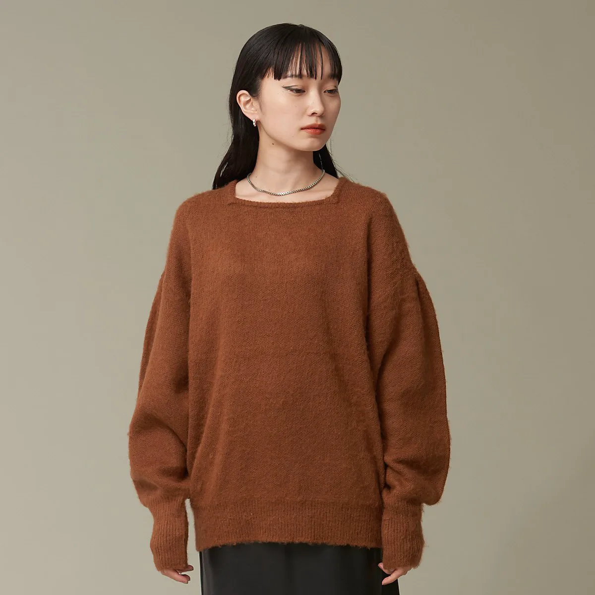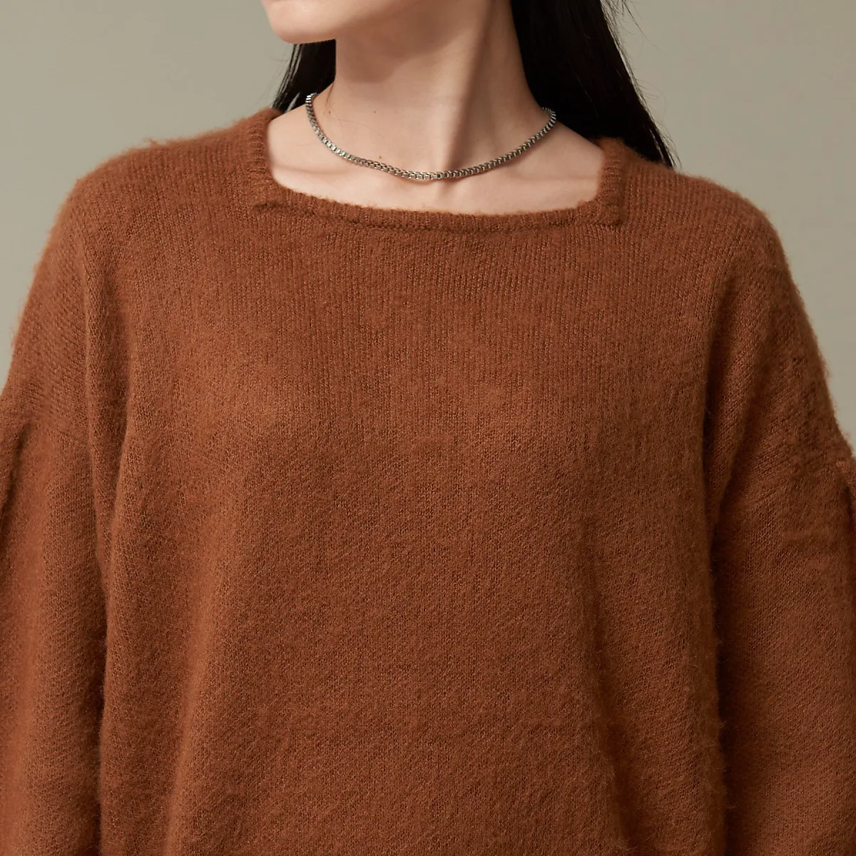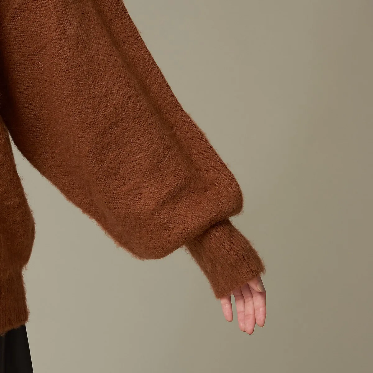 Вязаный пуловер с ворсистой поверхностью, придающей ему текстуру, похожую на мохер.