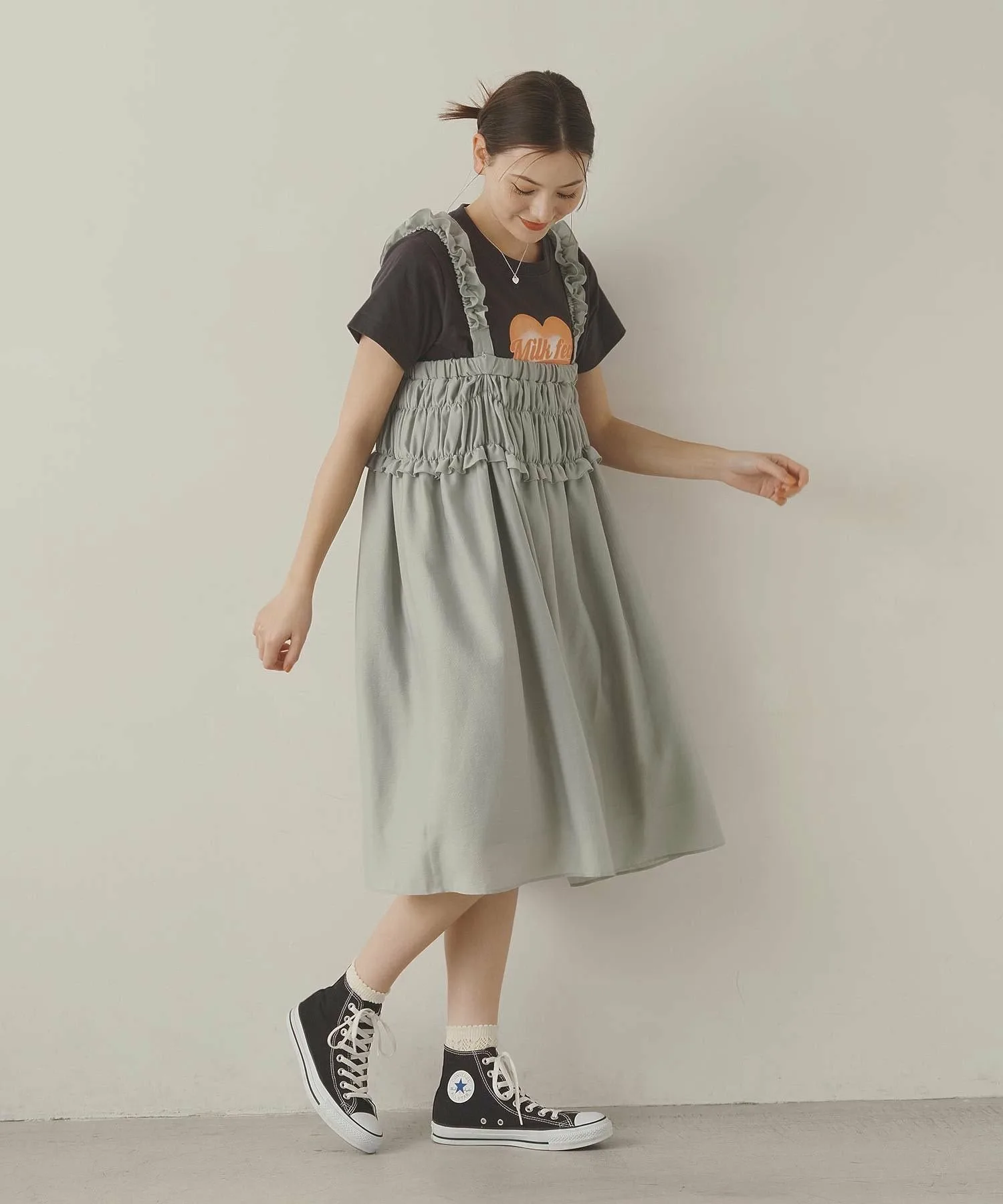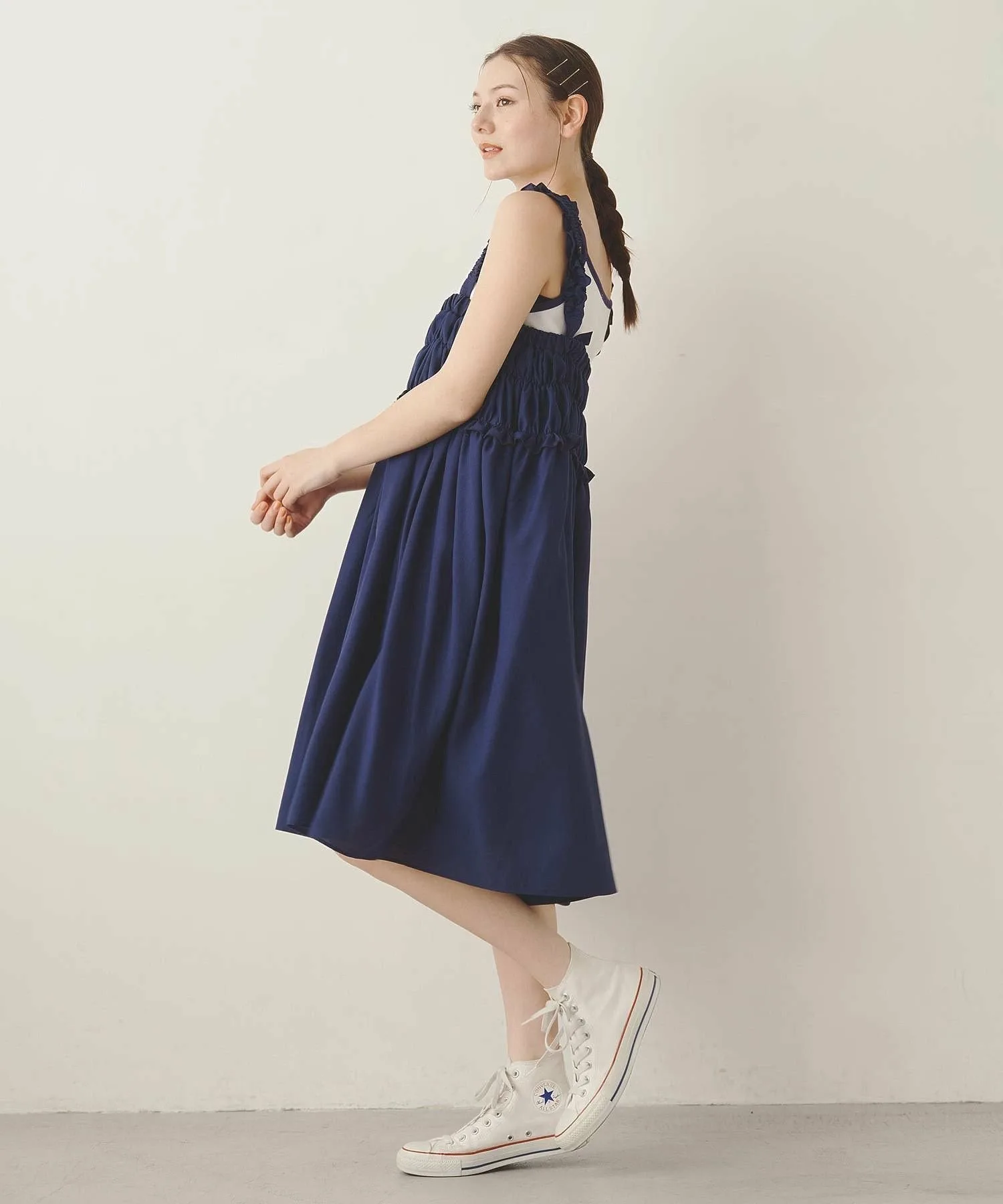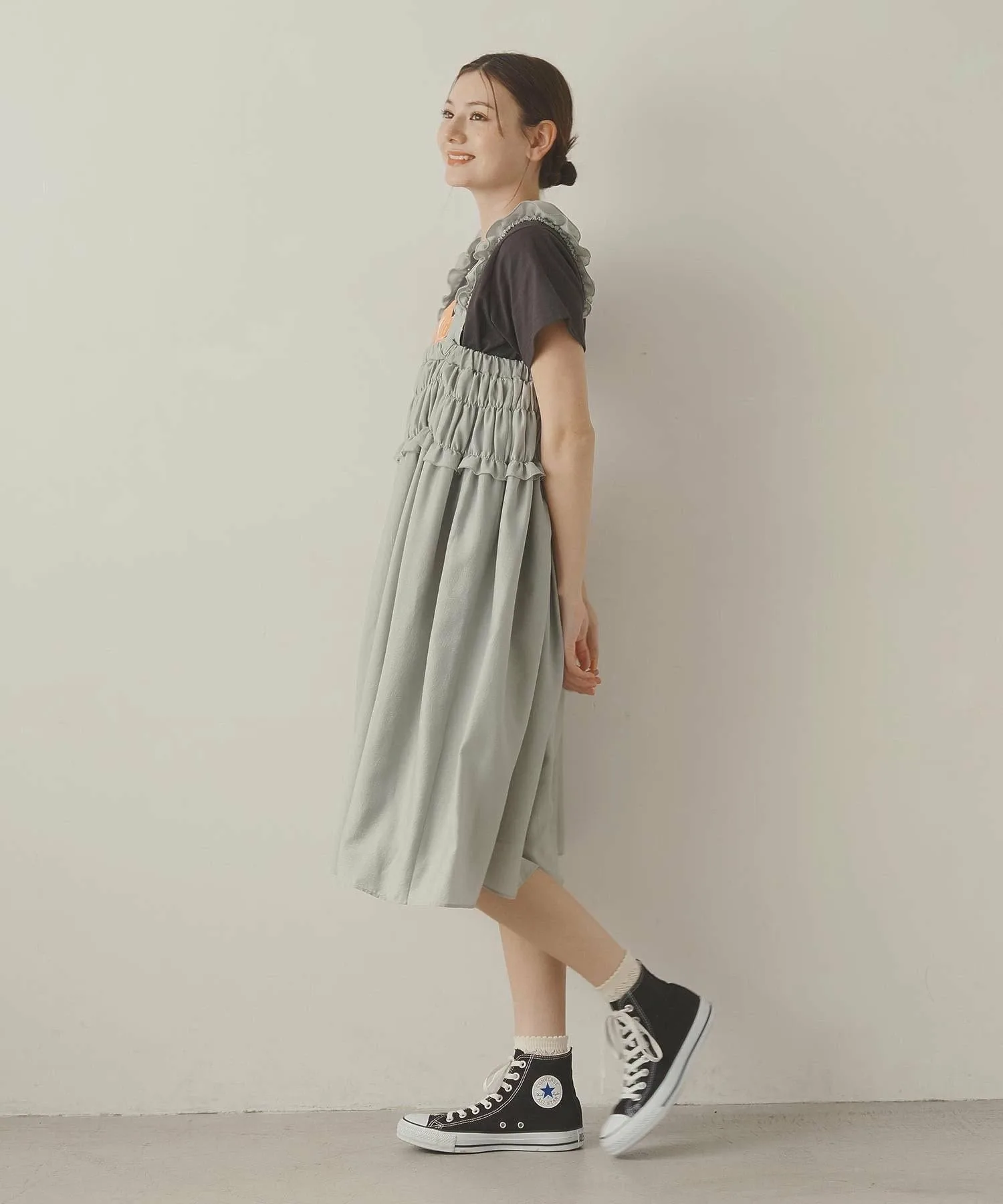 Сочетайте его с футболкой или майкой под низ для сбалансированного, собранного образа, который будет выглядеть аккуратно и опрятно.○Рекомендуем серебряные аксессуары! Поскольку платье объемное, остальная часть наряда будет простой и лаконичной, что сделает его еще более стильным.