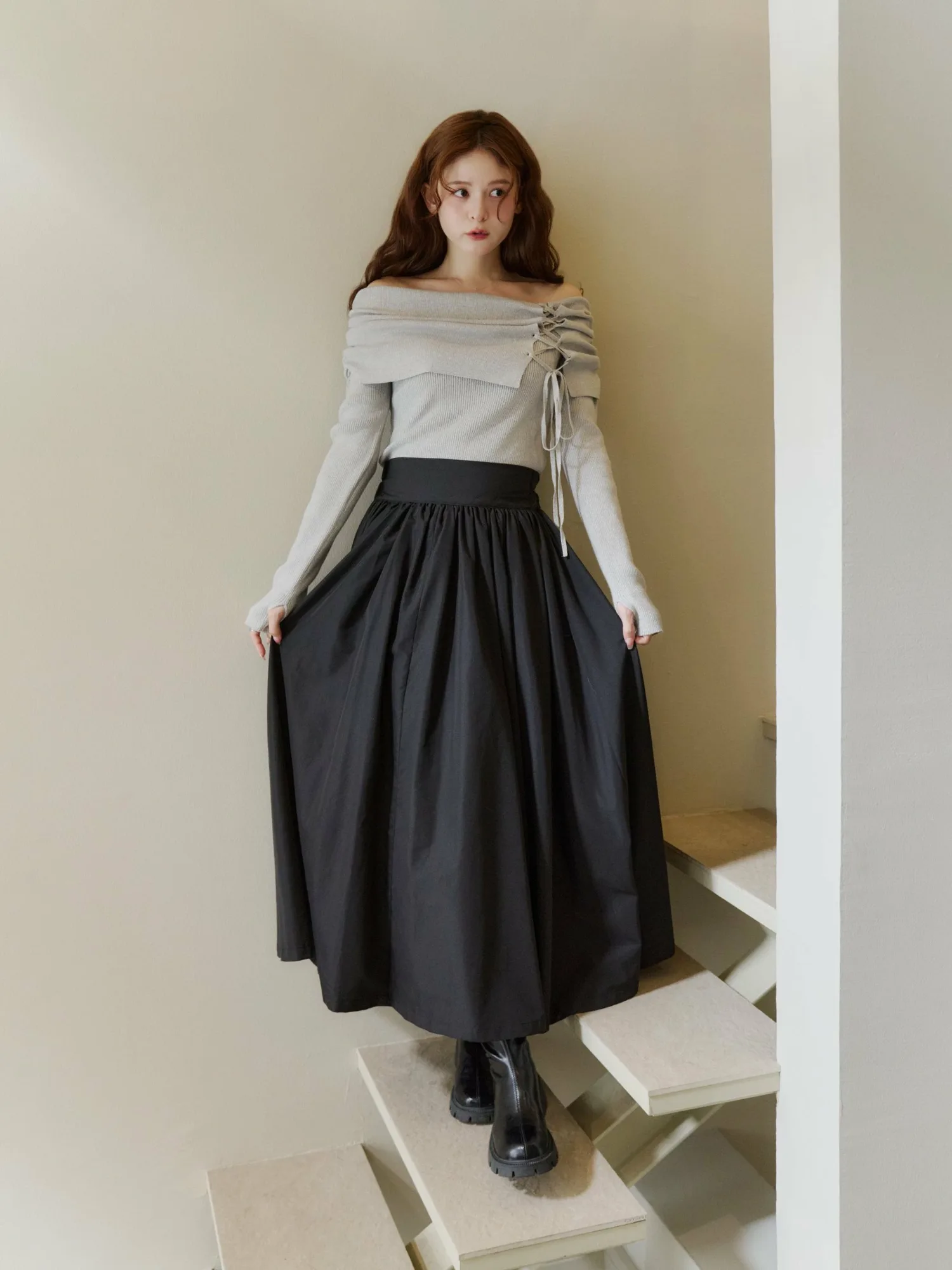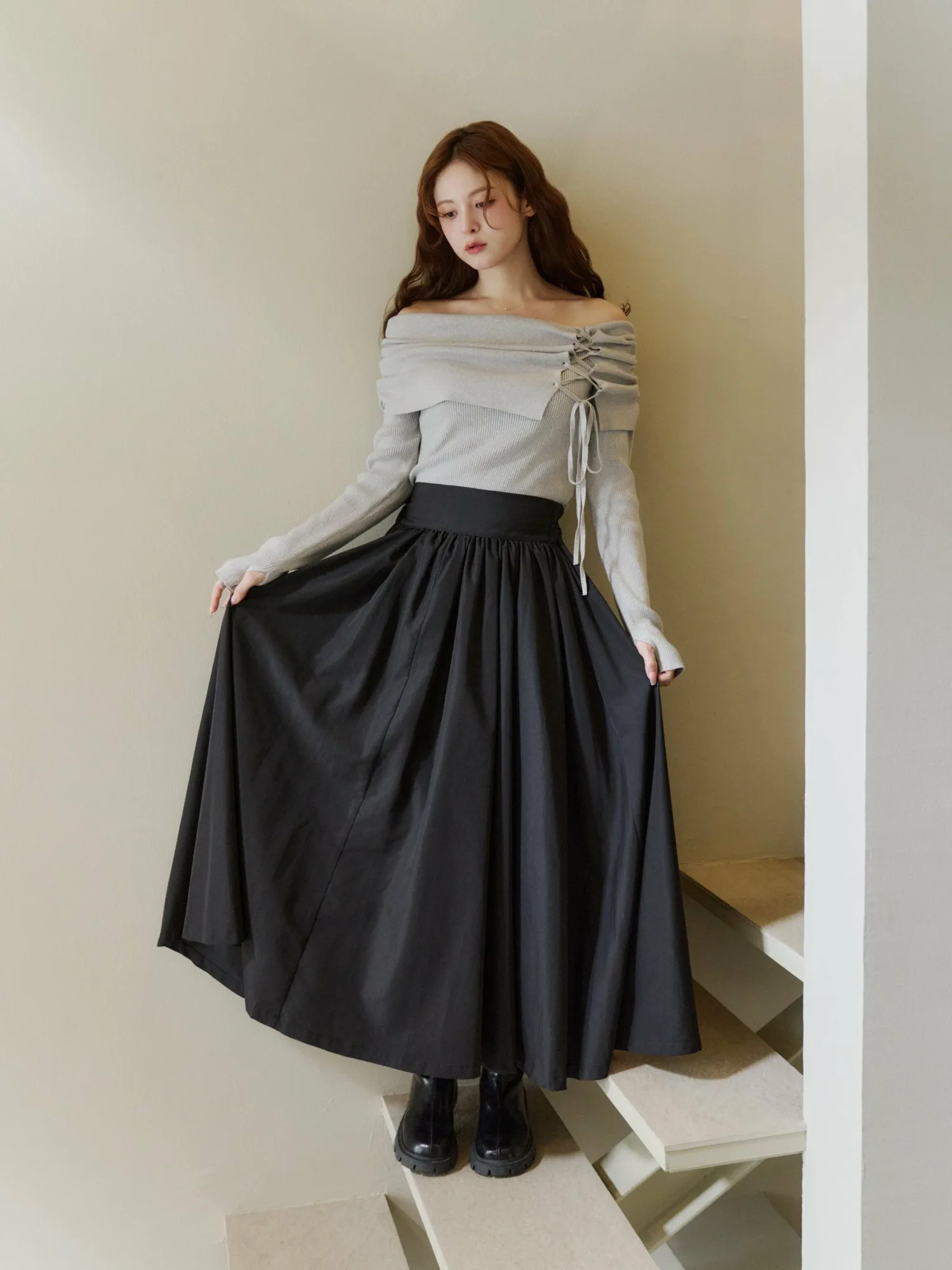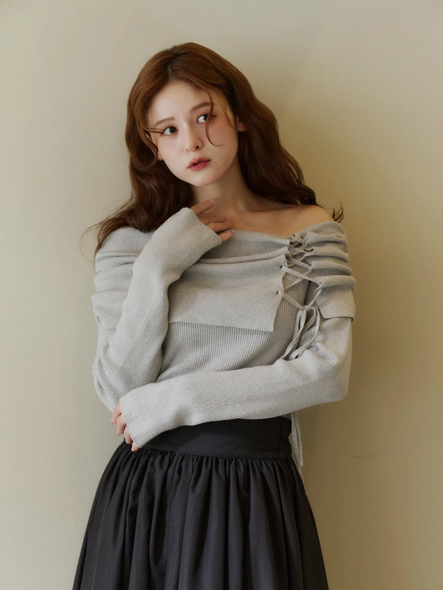 Дизайн с открытыми плечами прекрасно подчеркивает кожу, а шнуровка спереди — привлекательная деталь,