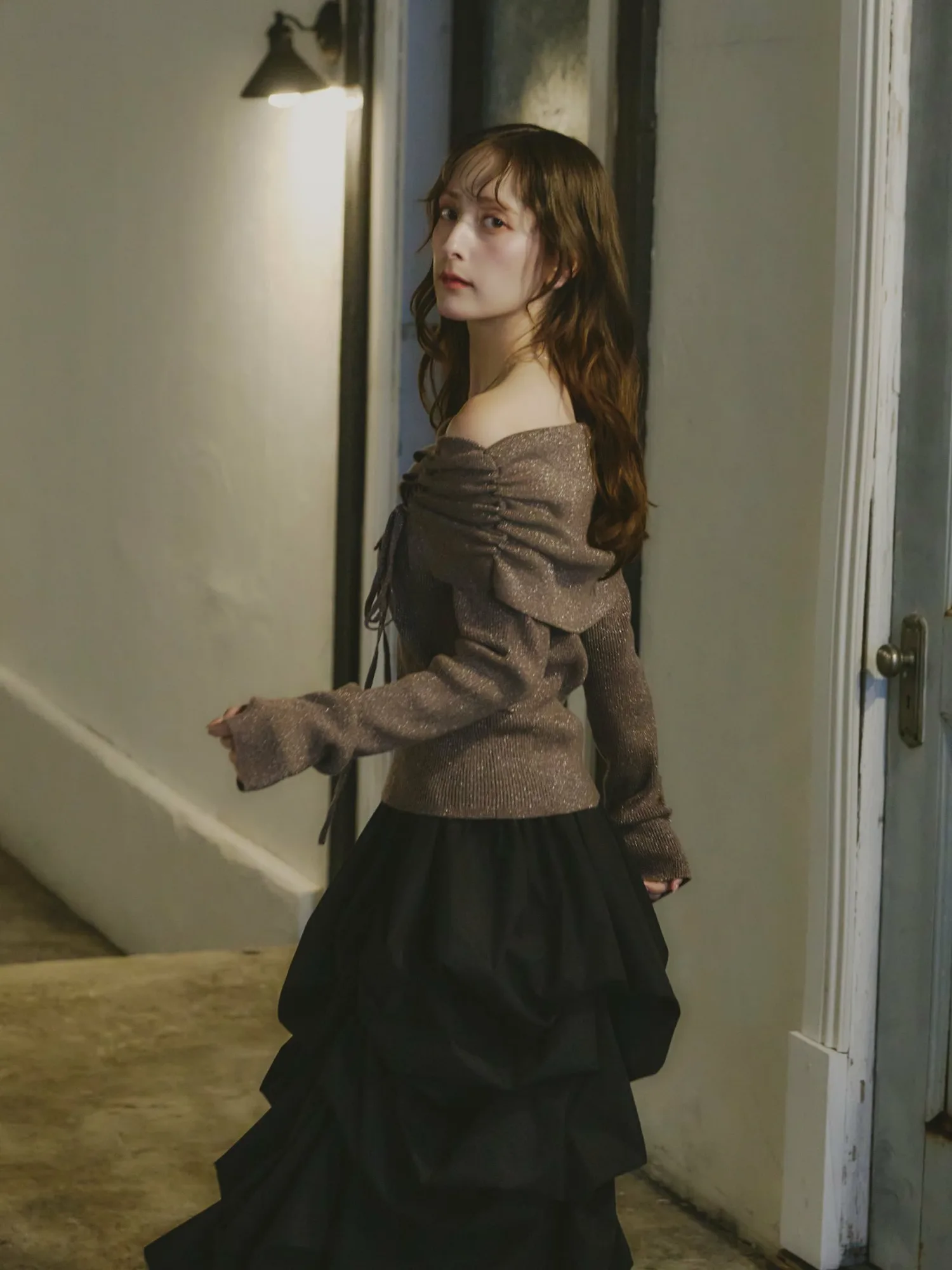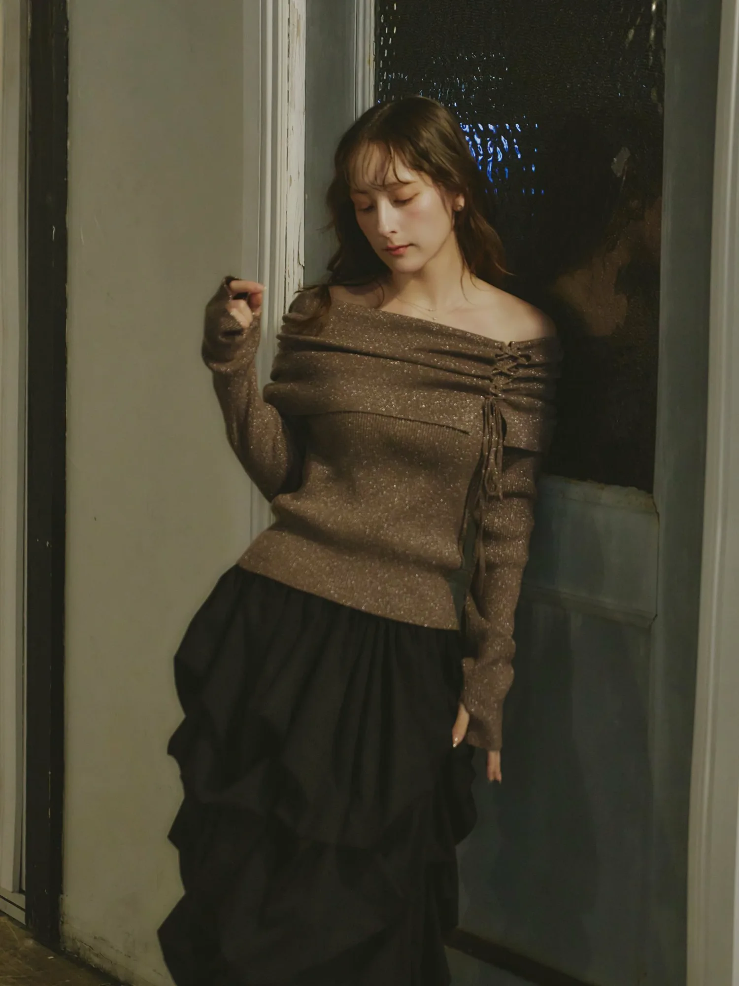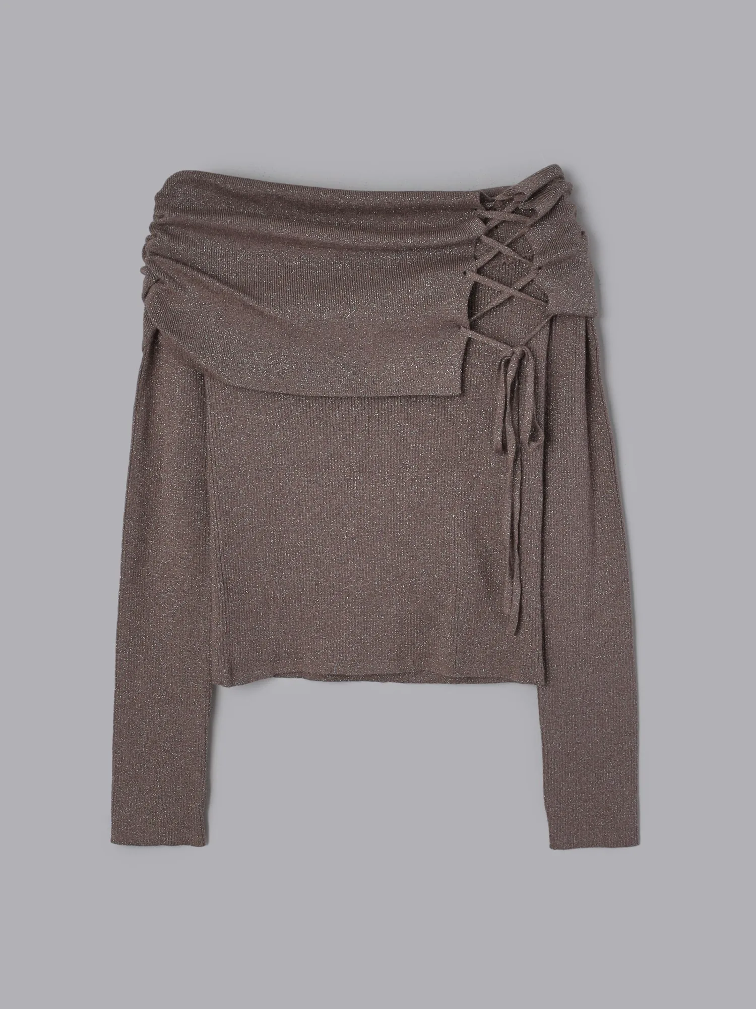 Дизайн с открытыми плечами прекрасно подчеркивает кожу, а шнуровка спереди — привлекательная деталь,