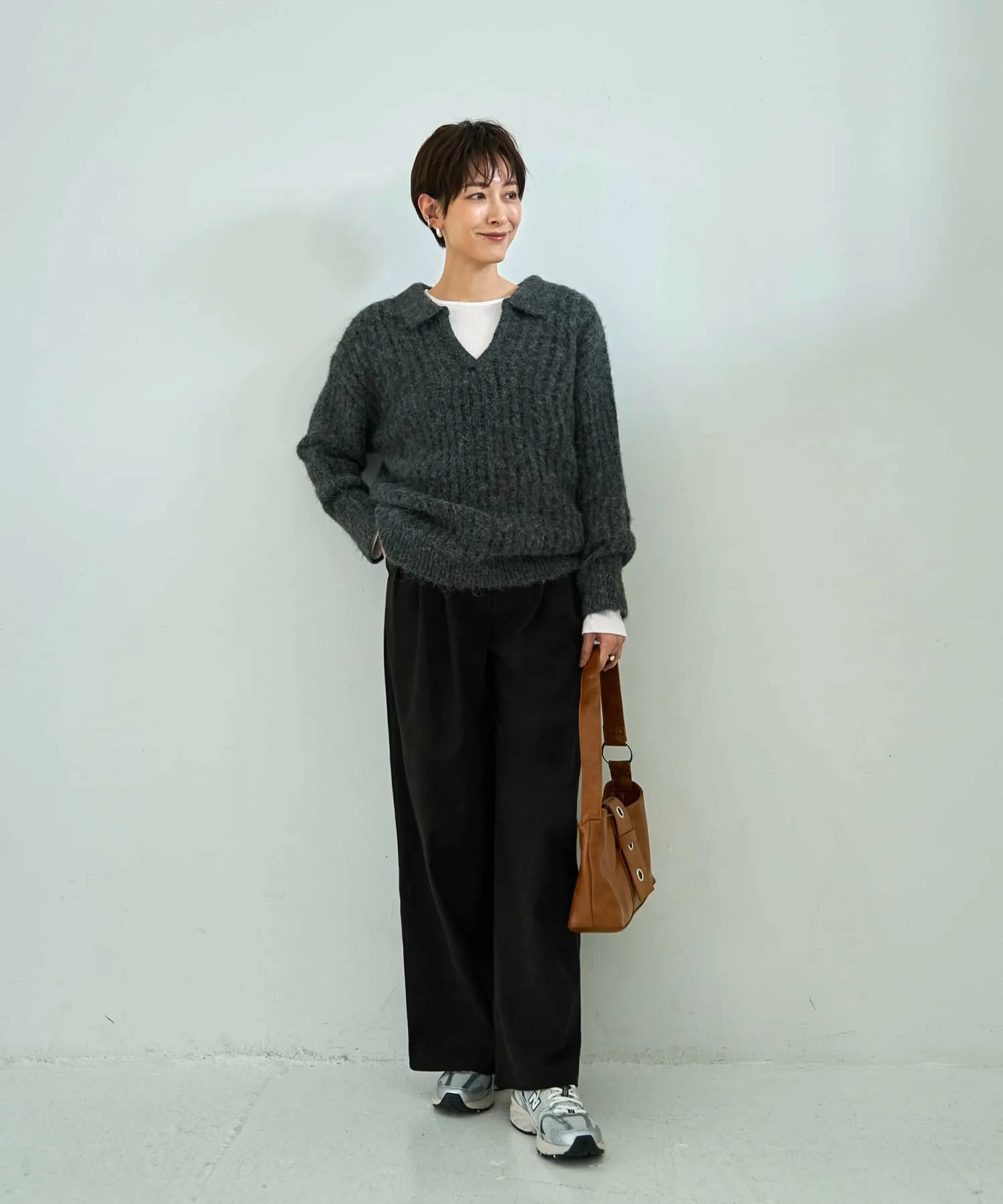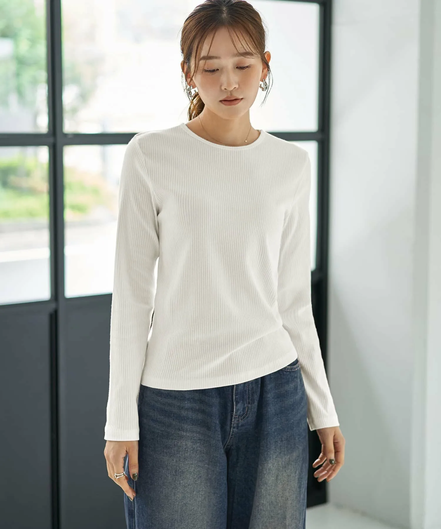 Слегка плотная ребристая вязка создает стильный дизайн, подчеркивая элегантную структуру. Поэтому, даже если носить ее как видимый внутренний слой с курткой или комбинезоном, она не ощущается как нижнее белье, что делает ее универсальной вещью.