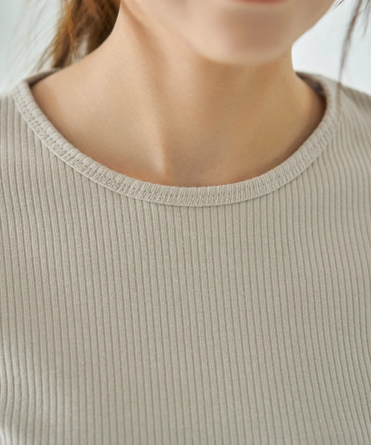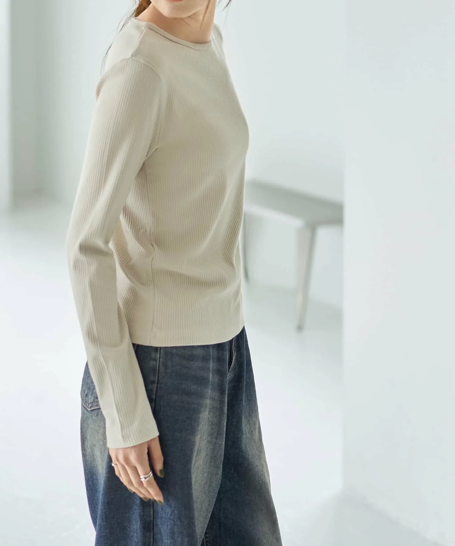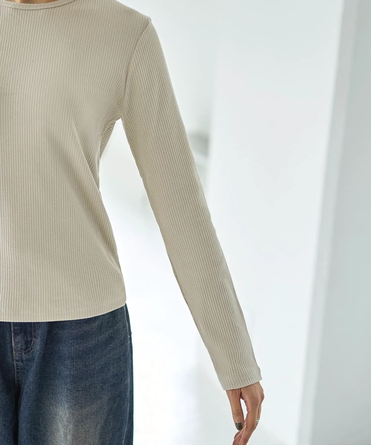 Слегка плотная ребристая вязка создает стильный дизайн, подчеркивая элегантную структуру. Поэтому, даже если носить ее как видимый внутренний слой с курткой или комбинезоном, она не ощущается как нижнее белье, что делает ее универсальной вещью.