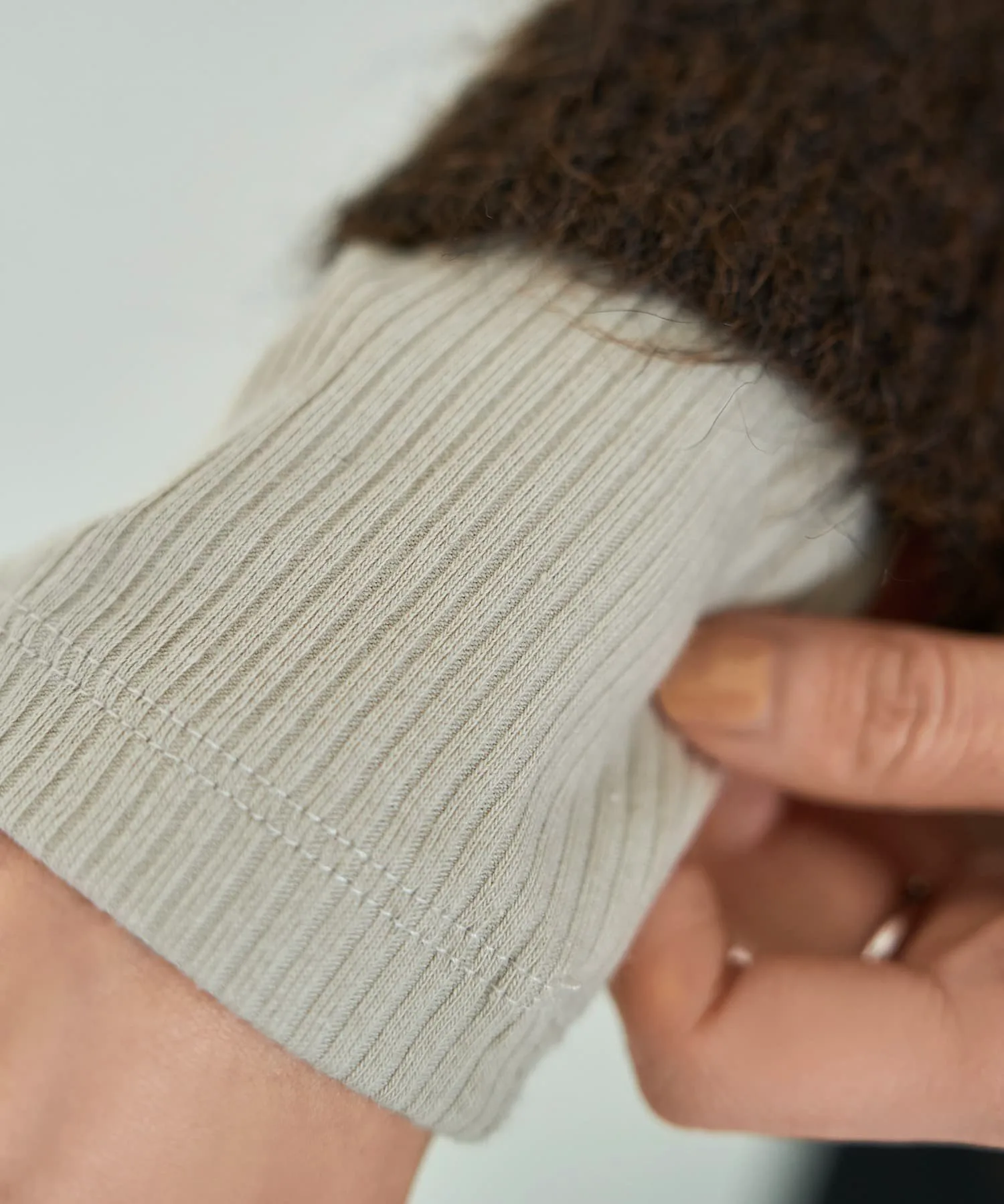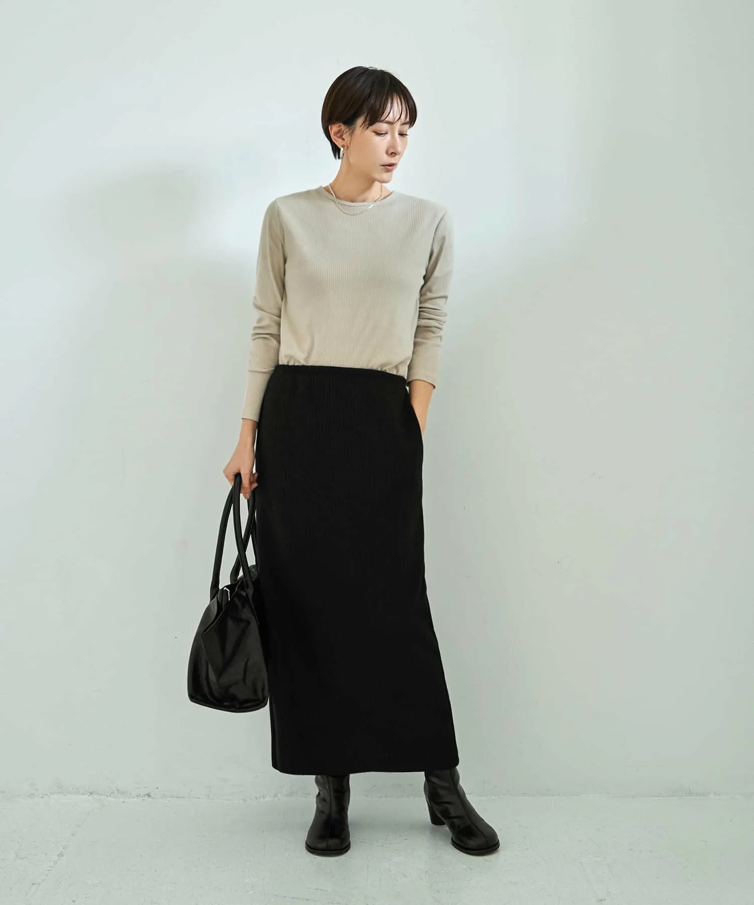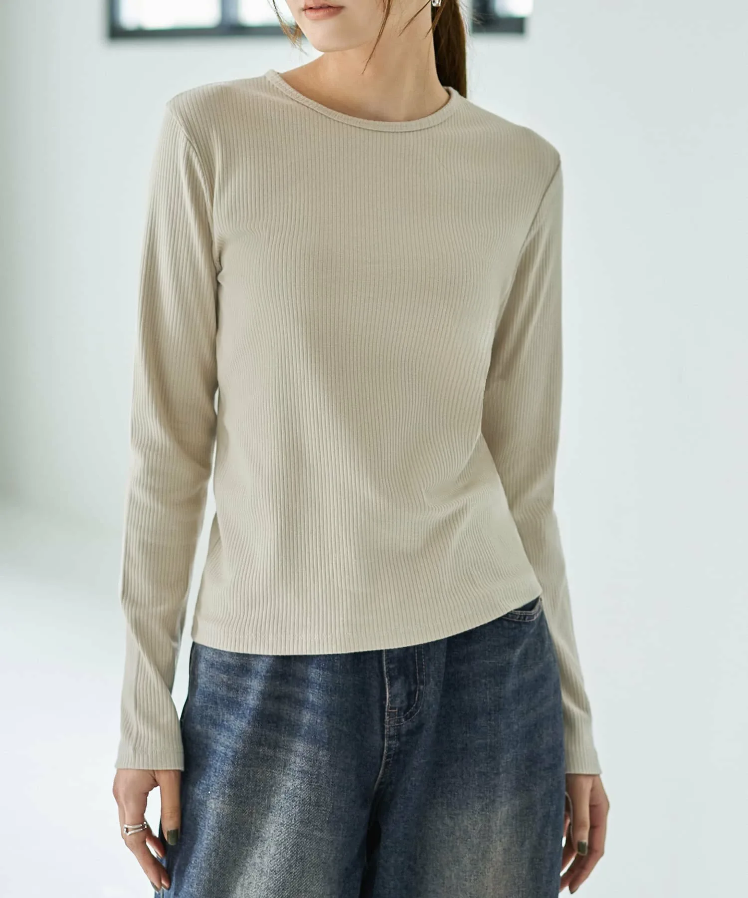 Слегка плотная ребристая вязка создает стильный дизайн, подчеркивая элегантную структуру. Поэтому, даже если носить ее как видимый внутренний слой с курткой или комбинезоном, она не ощущается как нижнее белье, что делает ее универсальной вещью.