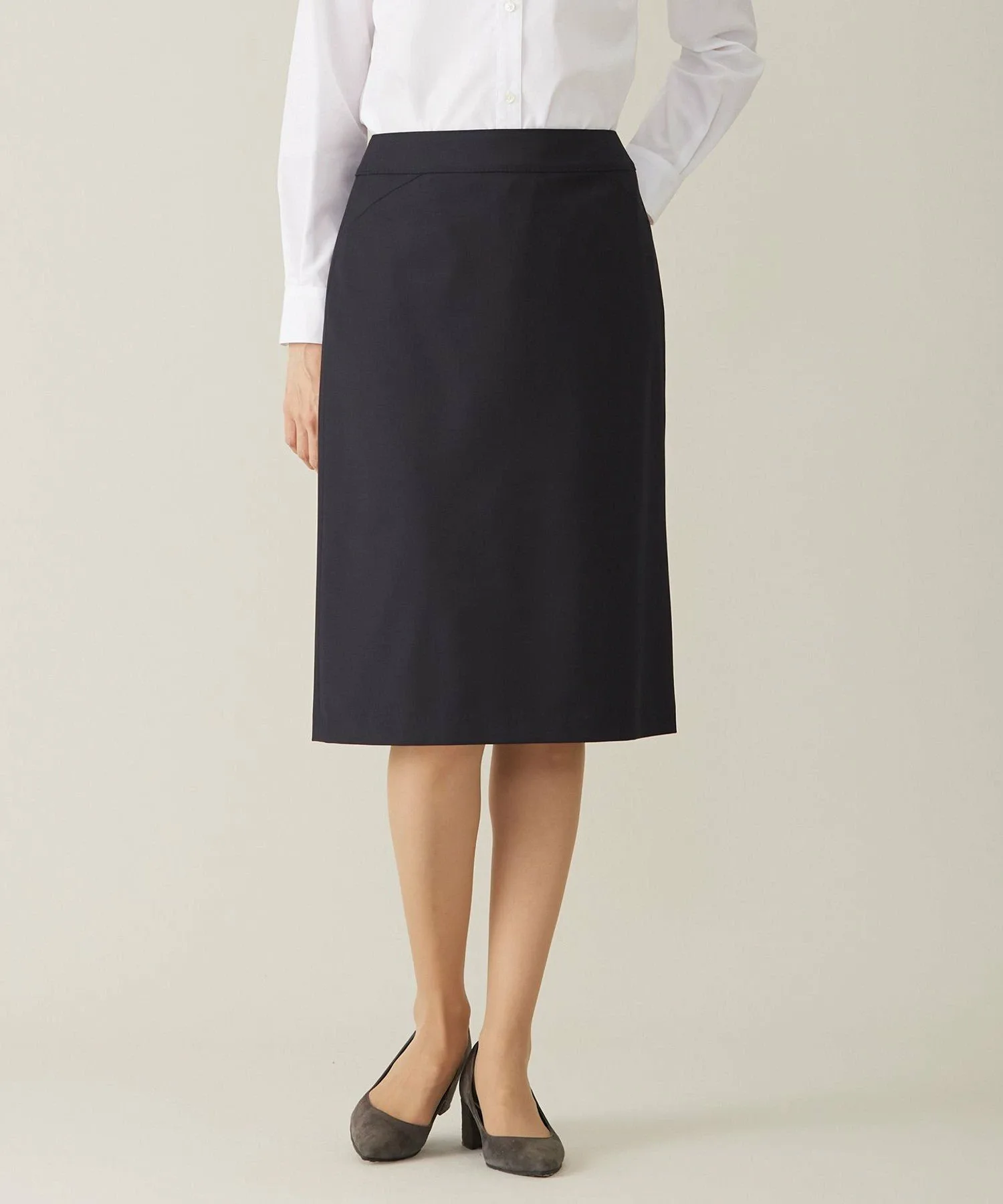 Эта однотонная расклешенная юбка имеет шов на талии спереди. Талия подчеркнута, а силуэт А-силуэта плавно расширяется к низу. Элегантная длина, закрывающая колени, создает мягкое, женственное впечатление. Ее можно сочетать с жакетом из того же материала для создания гармоничного образа или носить отдельно с блузкой или топом. Юбка полностью на подкладке.