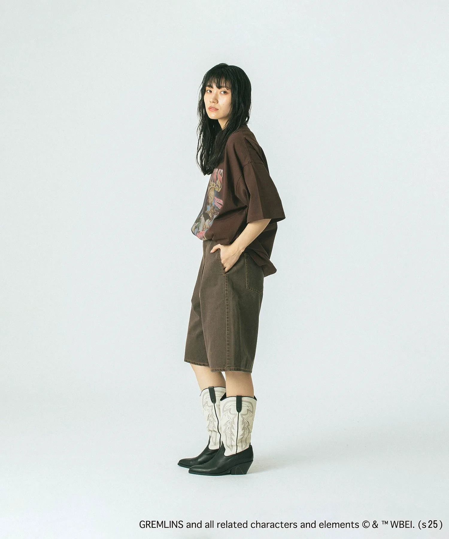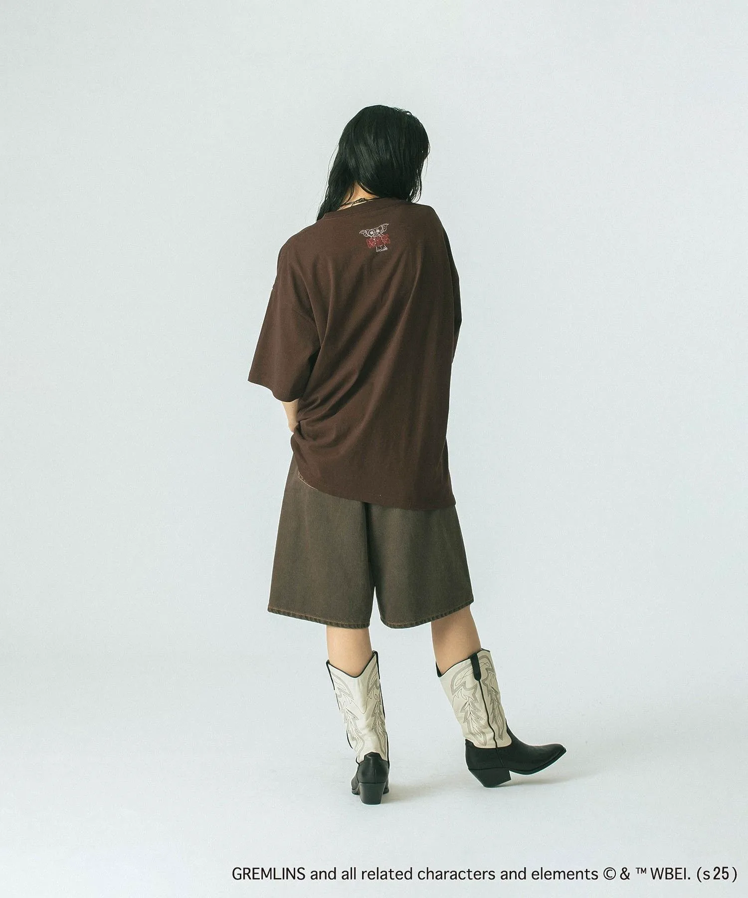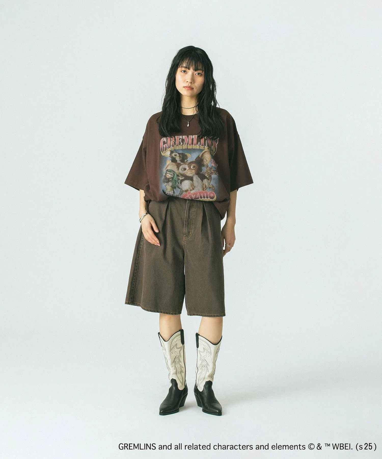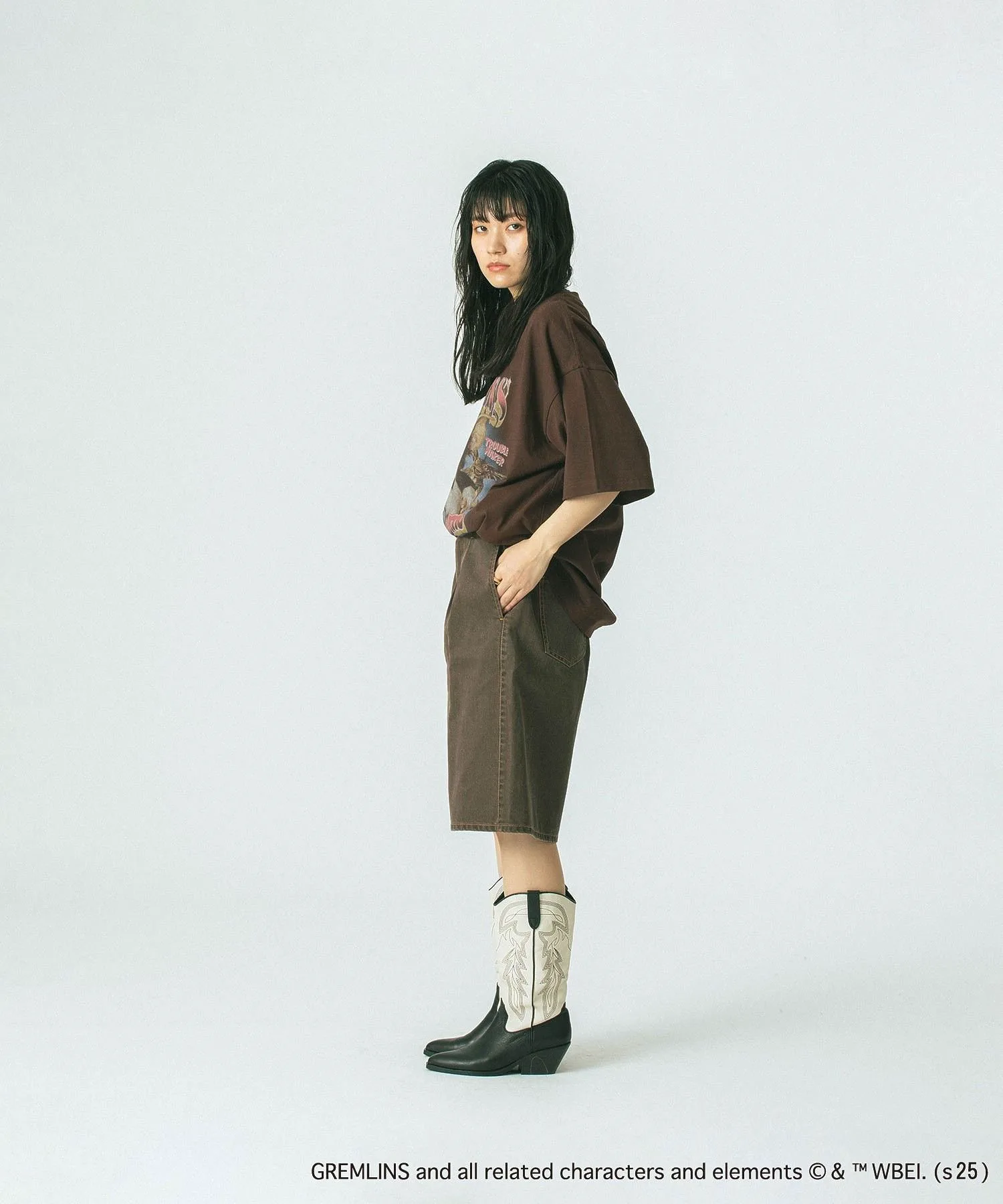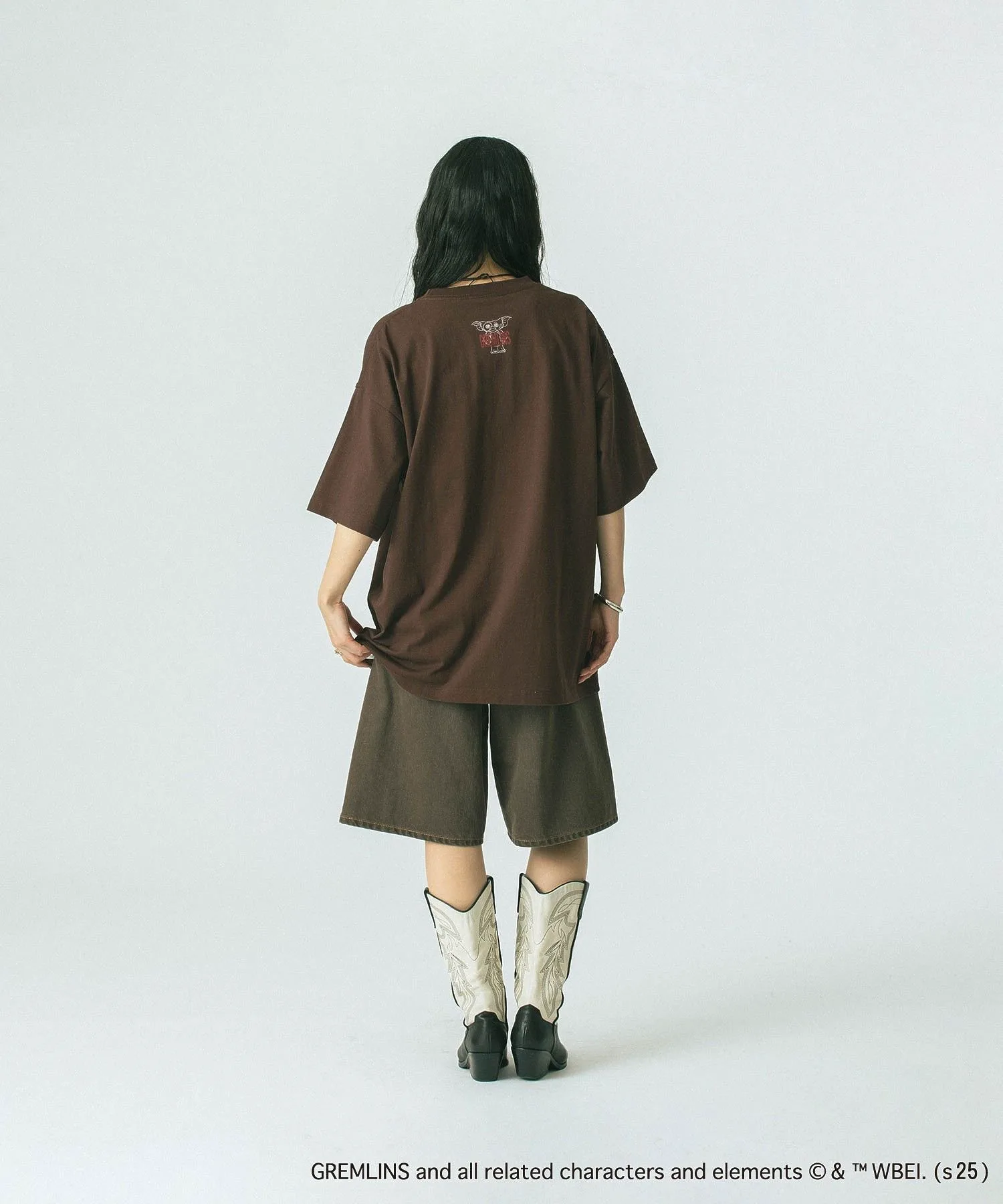 Смелый принт гремлина добавляет акцент, создавая эффектный образ.