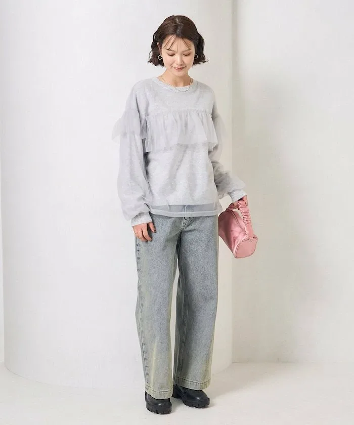 ●Застежка-молния создает многослойный образ всего из одной вещи, как будто тюль надет поверх трикотажного топа.