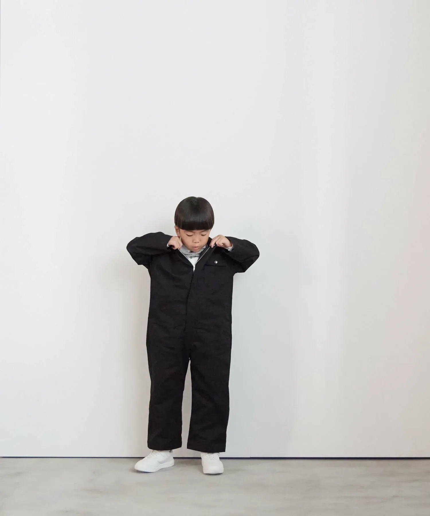 Он имеет переднюю молнию, что облегчает надевание и снимание, и разработан таким образом, чтобы его было легко надевать детям.