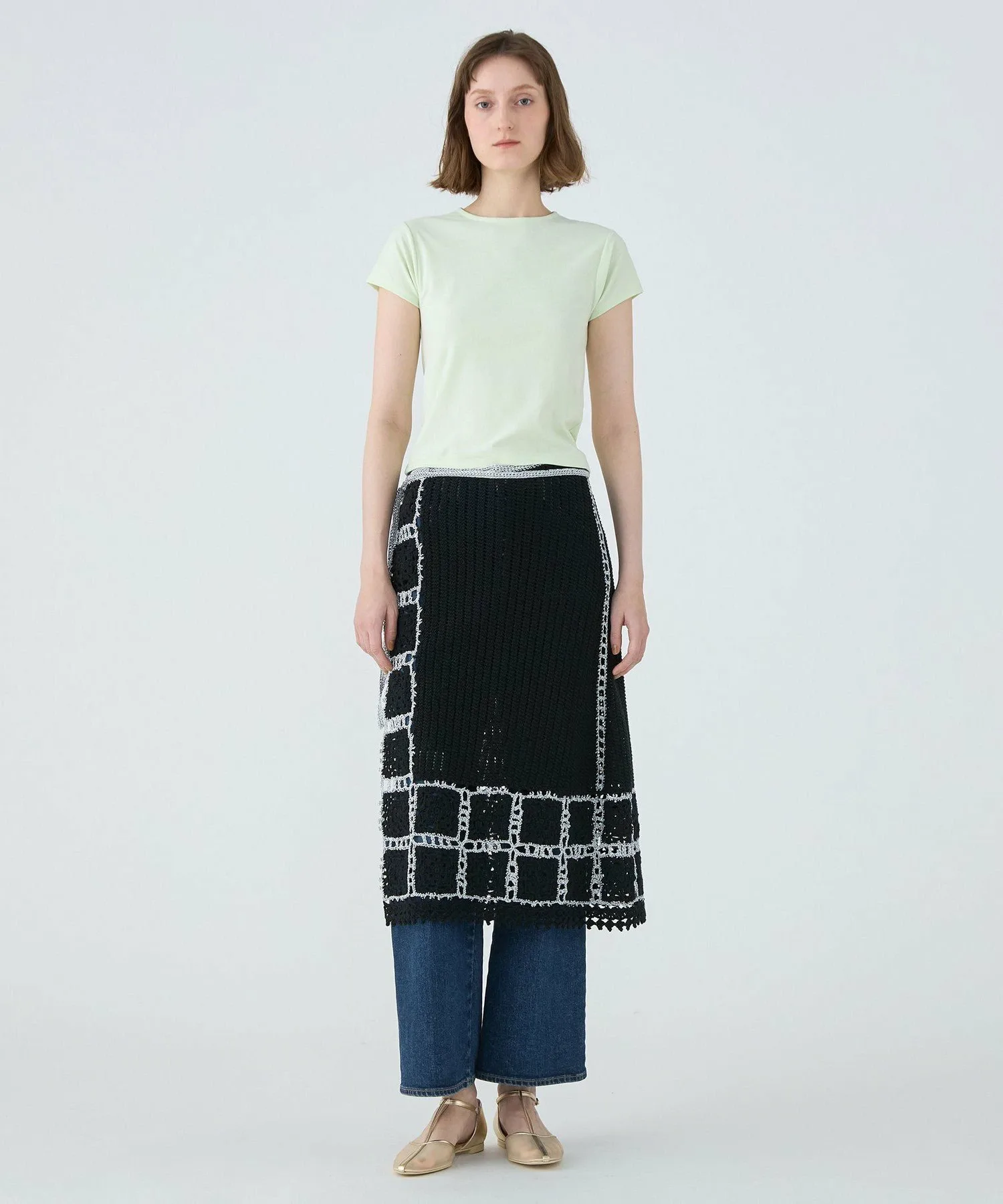 Эта юбка-запах, завязывающаяся на талии, имеет лаконичный силуэт и длину до колена, создавая слегка современный баланс.
