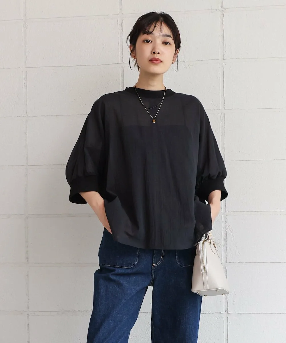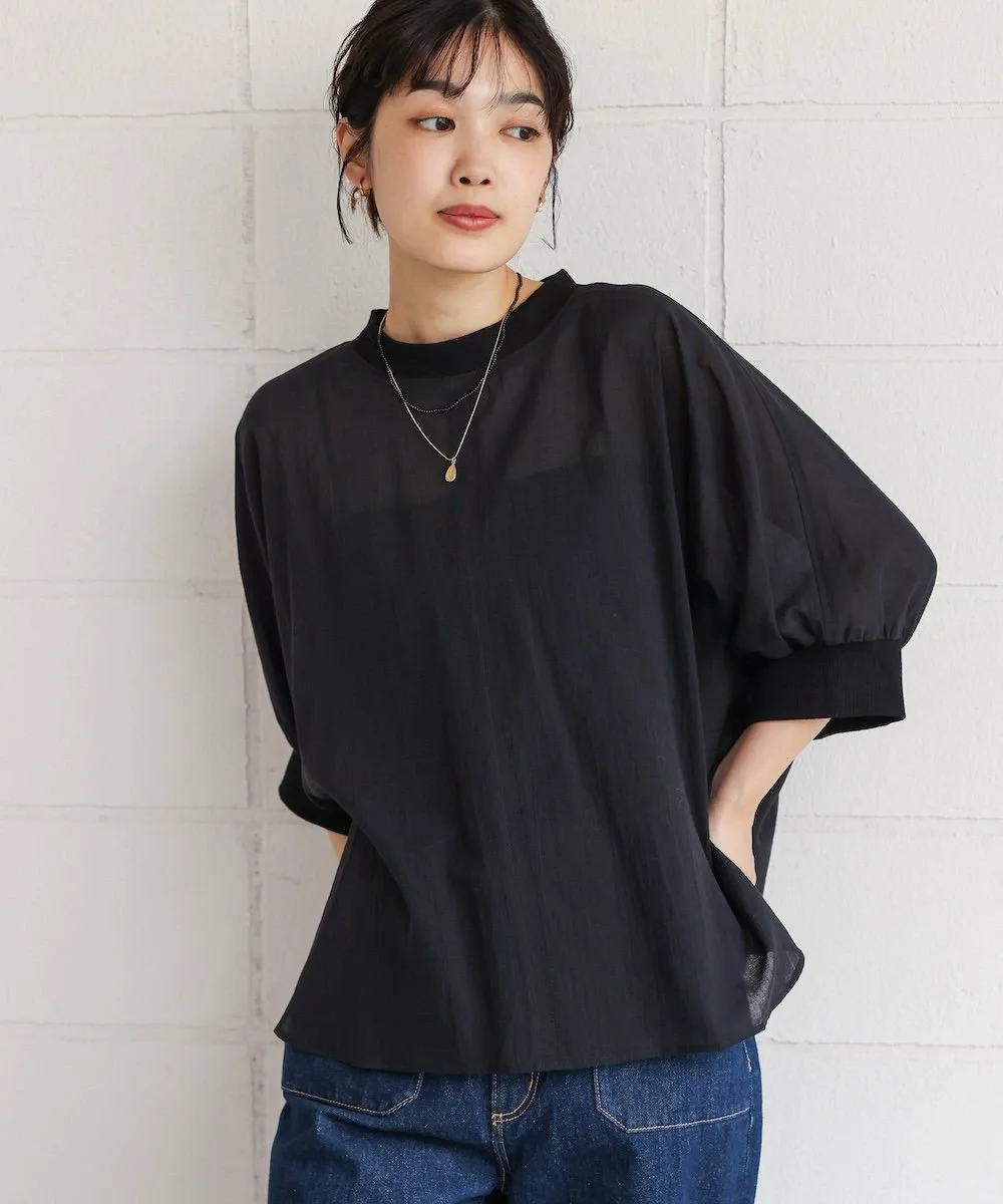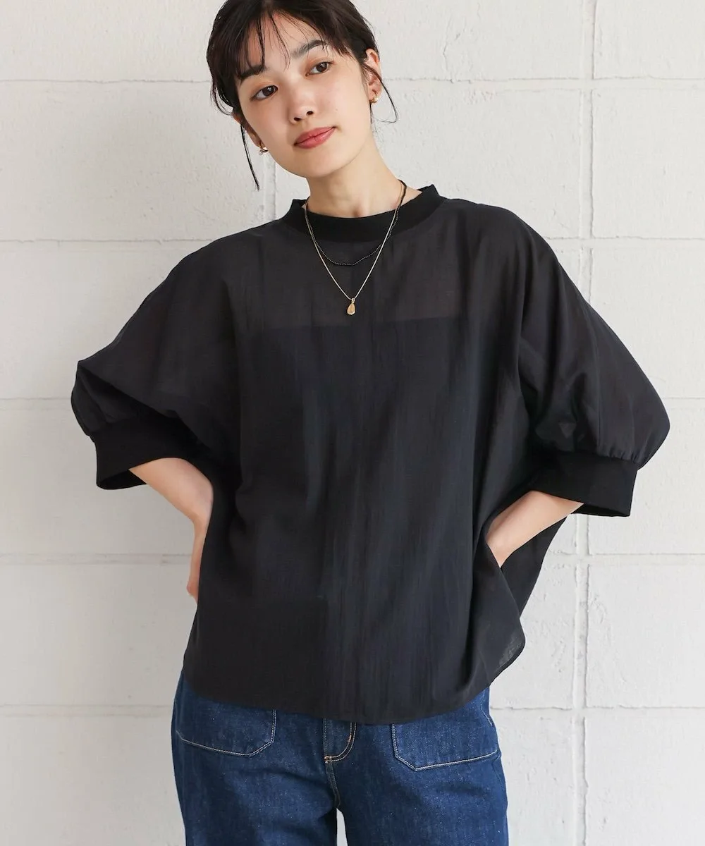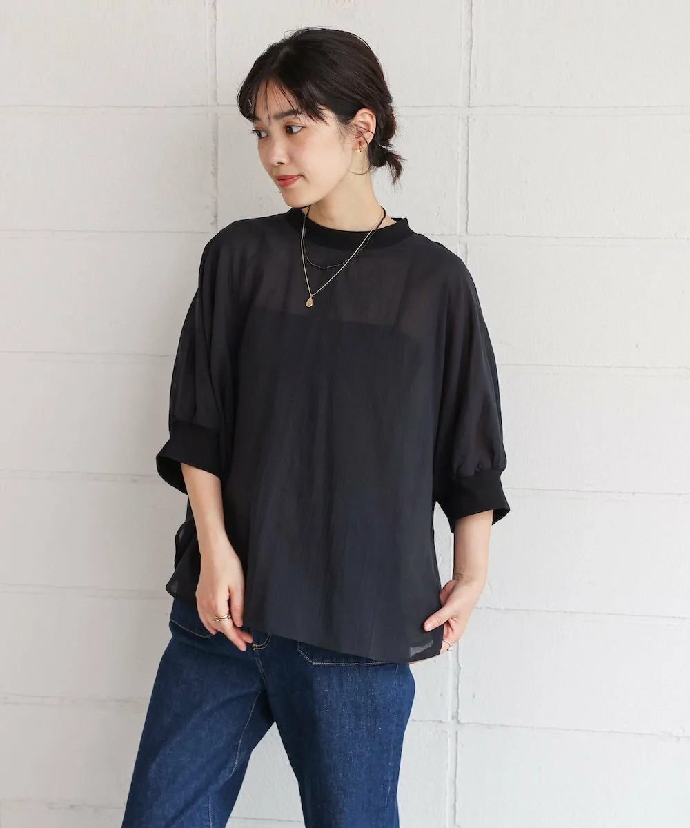 POINTЛегкий и воздушный! Пуловер-летучая мышь из вуали. Этот пуловер-летучая мышь изготовлен из привлекательной легкой вуали. Свободный крой делает его удобным в ношении. Ребристый материал на воротнике и манжетах добавляет четкости, придавая ему повседневный, но элегантный вид. Пуговица на заднем крае добавляет тонкий акцент к виду сзади.