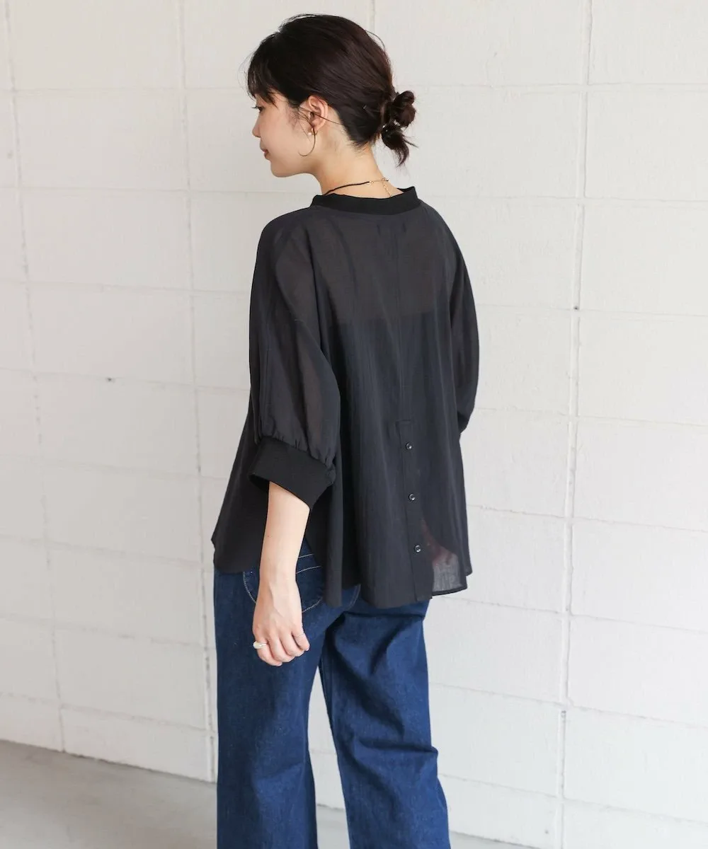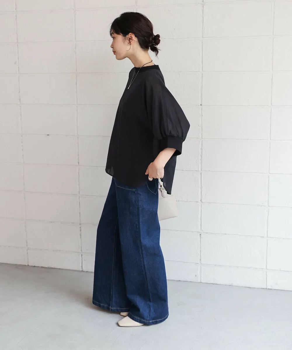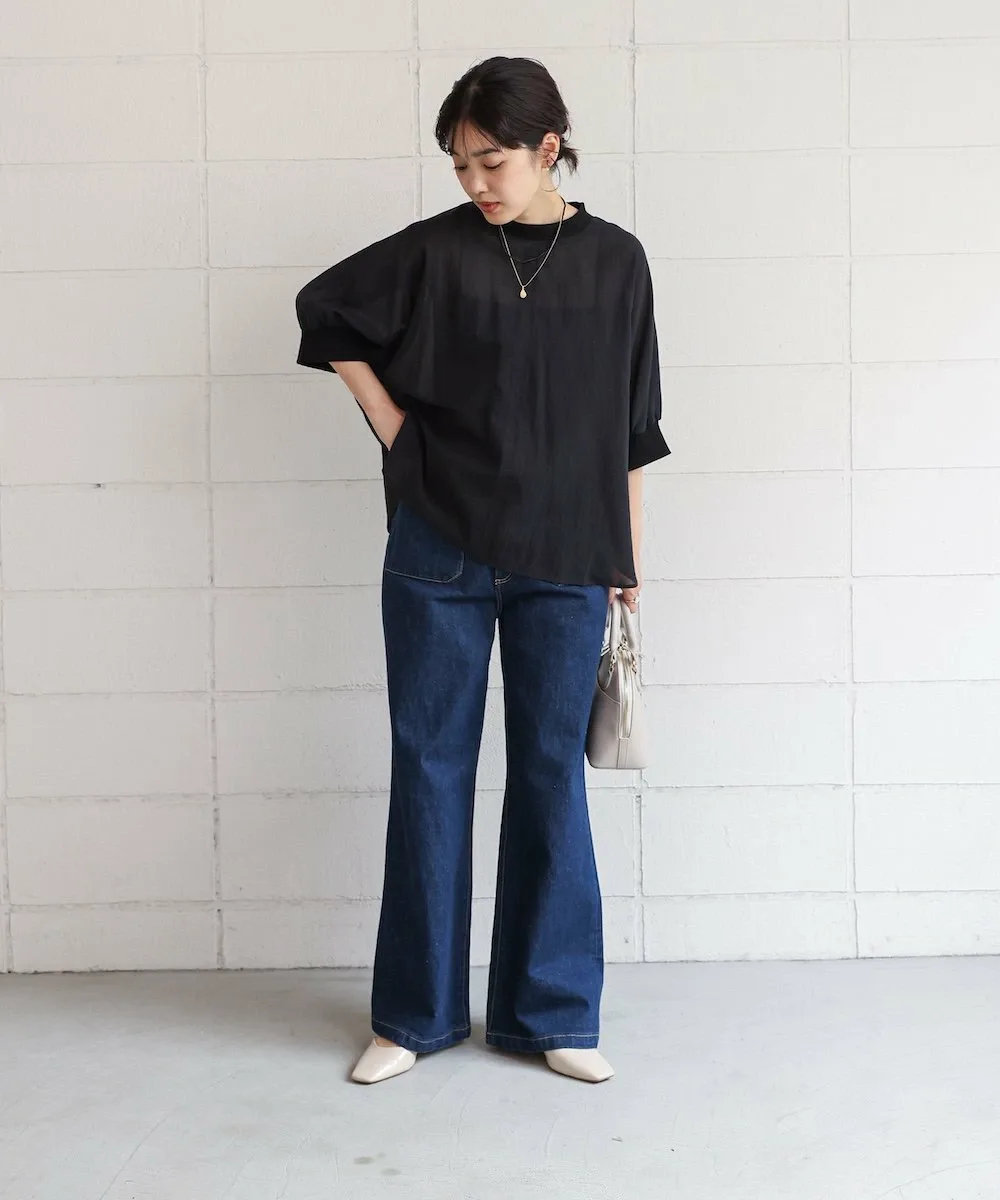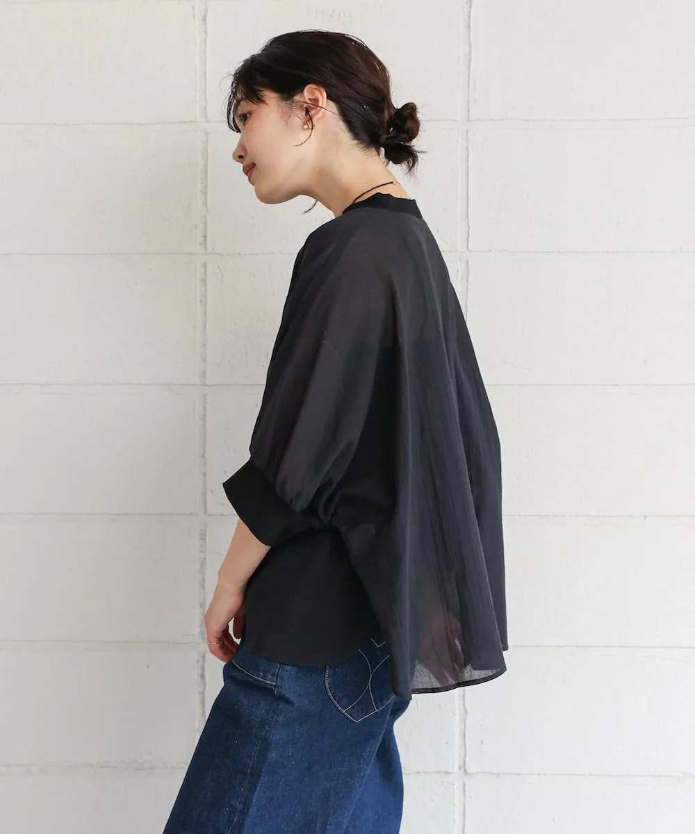 POINTЛегкий и воздушный! Пуловер-летучая мышь из вуали. Этот пуловер-летучая мышь изготовлен из привлекательной легкой вуали. Свободный крой делает его удобным в ношении. Ребристый материал на воротнике и манжетах добавляет четкости, придавая ему повседневный, но элегантный вид. Пуговица на заднем крае добавляет тонкий акцент к виду сзади.