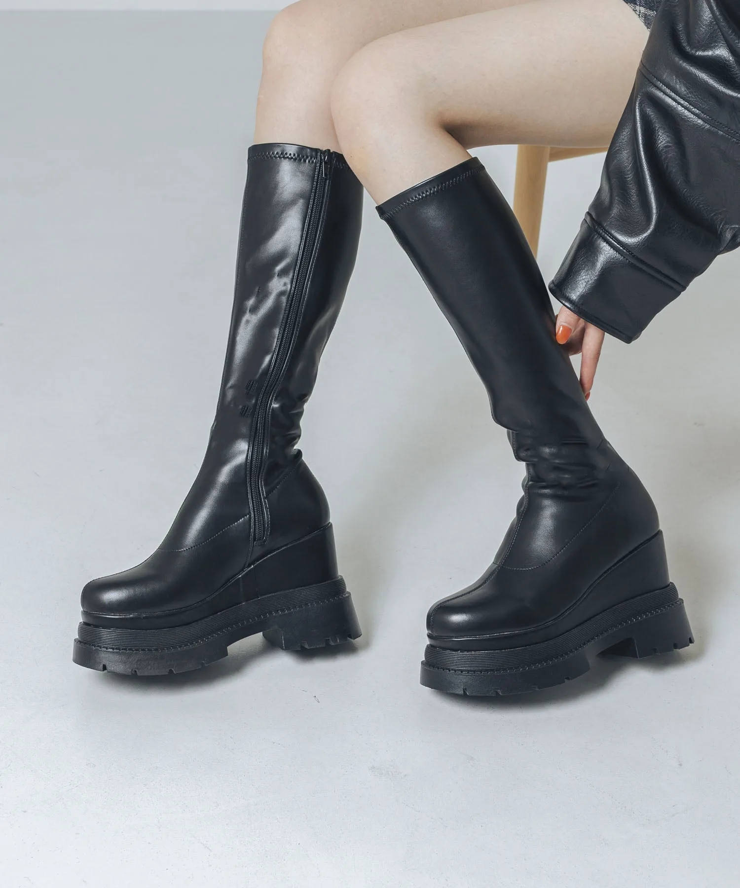 Эти высокие сапоги на платформе подчеркнут ваш стиль, как только вы их наденете. Современный, объемный силуэт и эластичный материал делают эти сапоги фантастическим выбором для создания красивых ног! Мягкая, пушистая стелька делает их удобными и комфортными для длительных прогулок. Подошва на платформе высотой около 11 см легче, чем кажется, что делает их идеальными для повседневной носки, а также для концертов и тематических парков.
