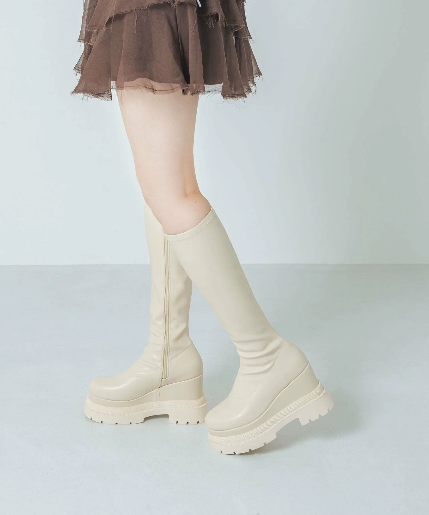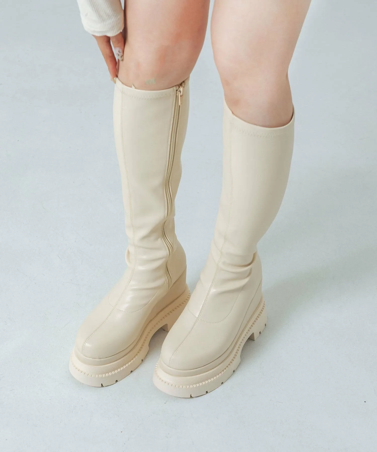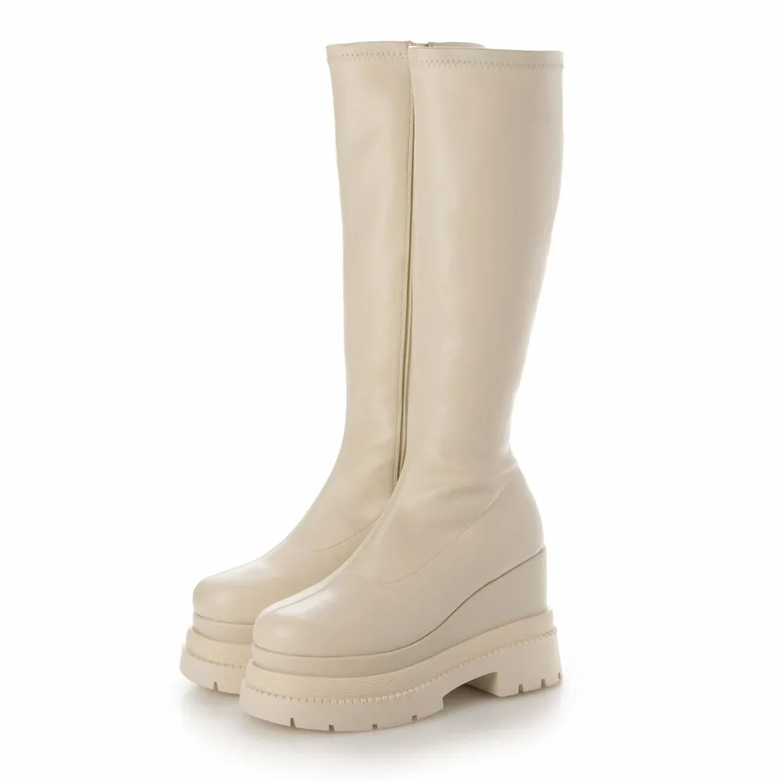Эти высокие сапоги на платформе подчеркнут ваш стиль, как только вы их наденете. Современный, объемный силуэт и эластичный материал делают эти сапоги фантастическим выбором для создания красивых ног! Мягкая, пушистая стелька делает их удобными и комфортными для длительных прогулок. Подошва на платформе высотой около 11 см легче, чем кажется, что делает их идеальными для повседневной носки, а также для концертов и тематических парков.
