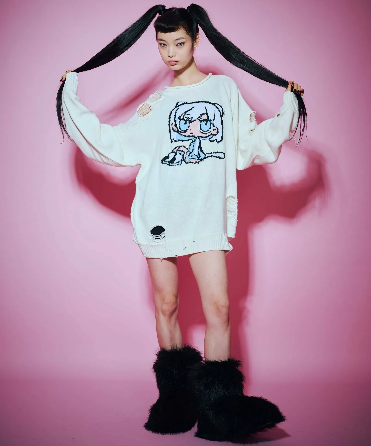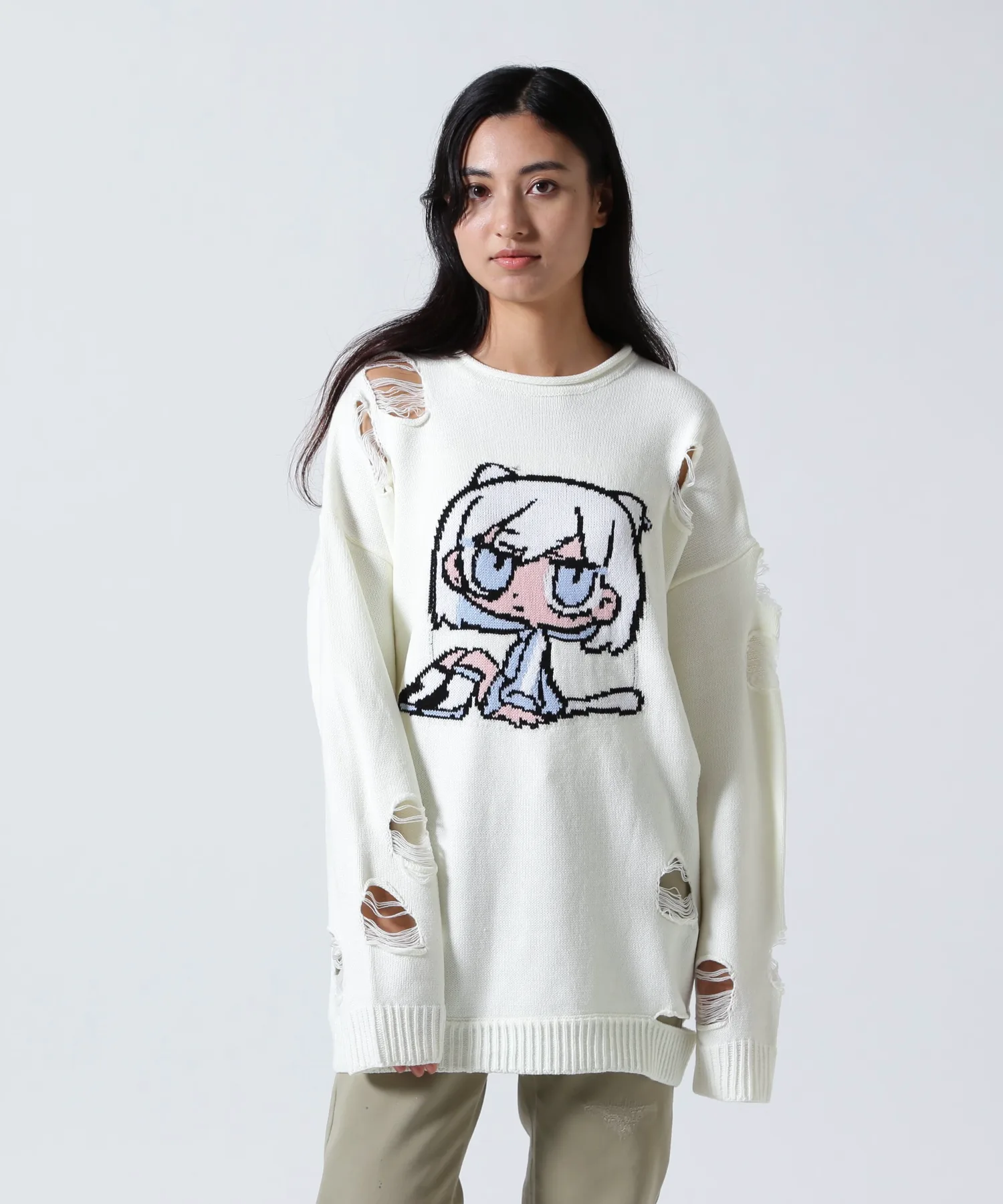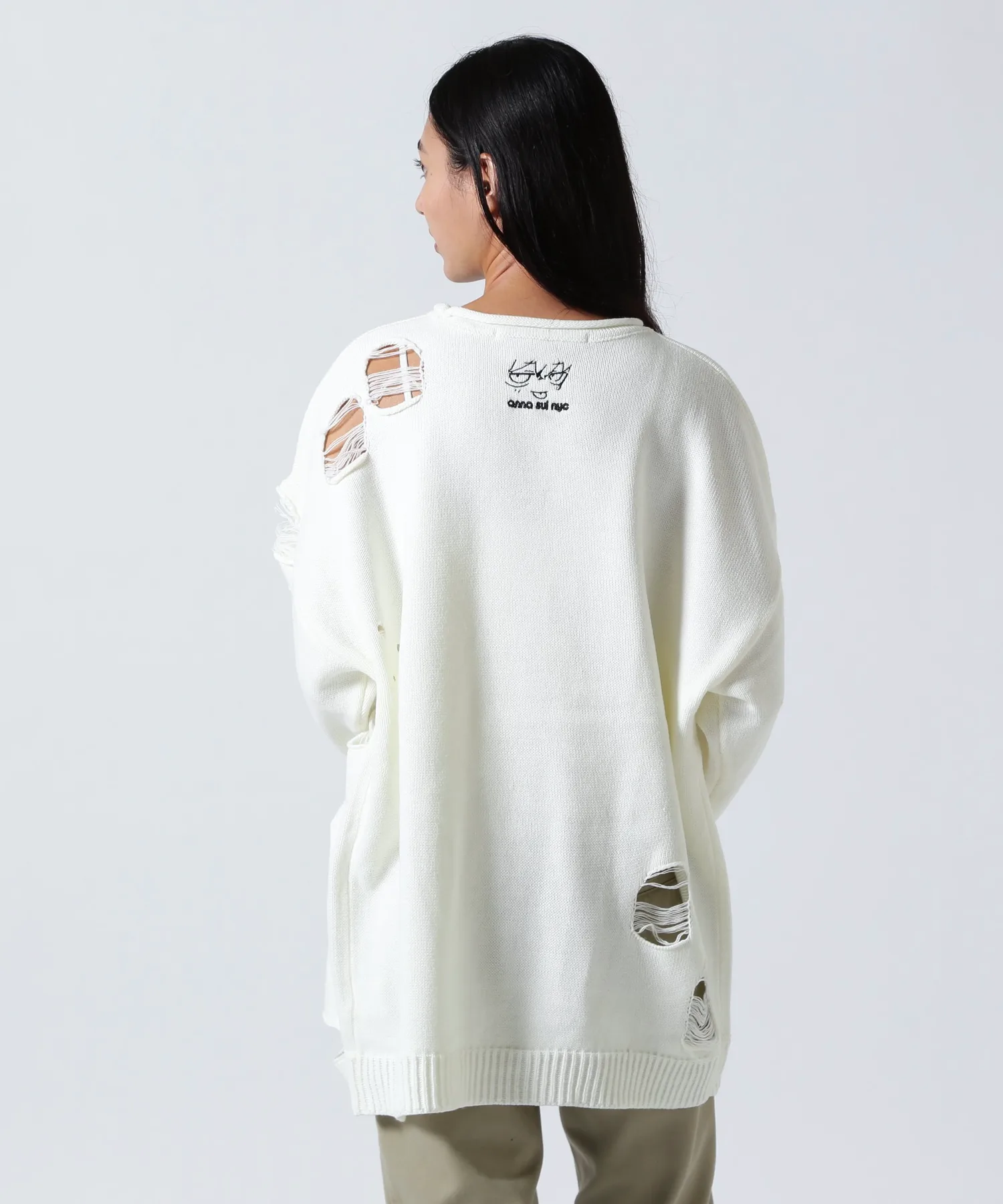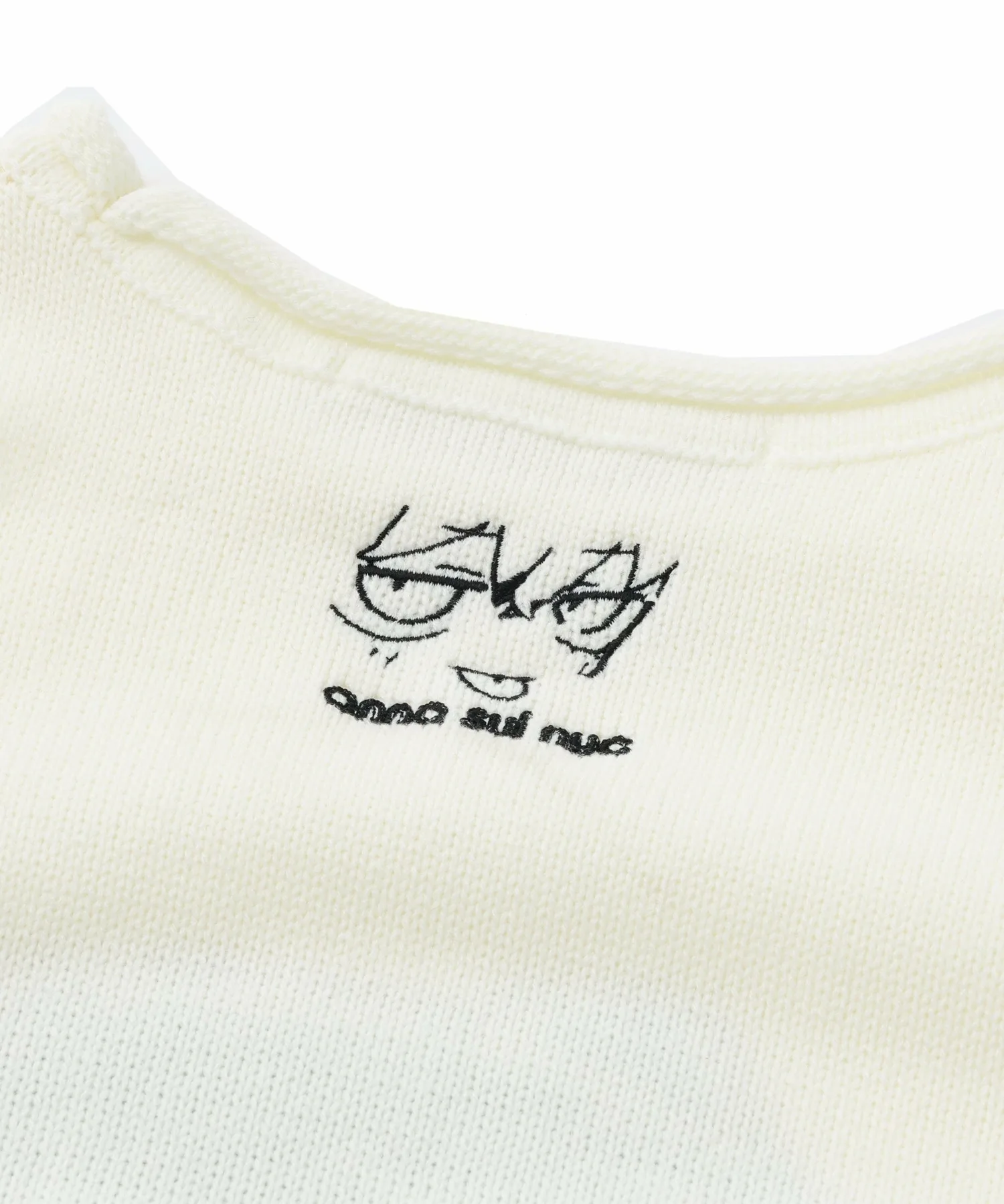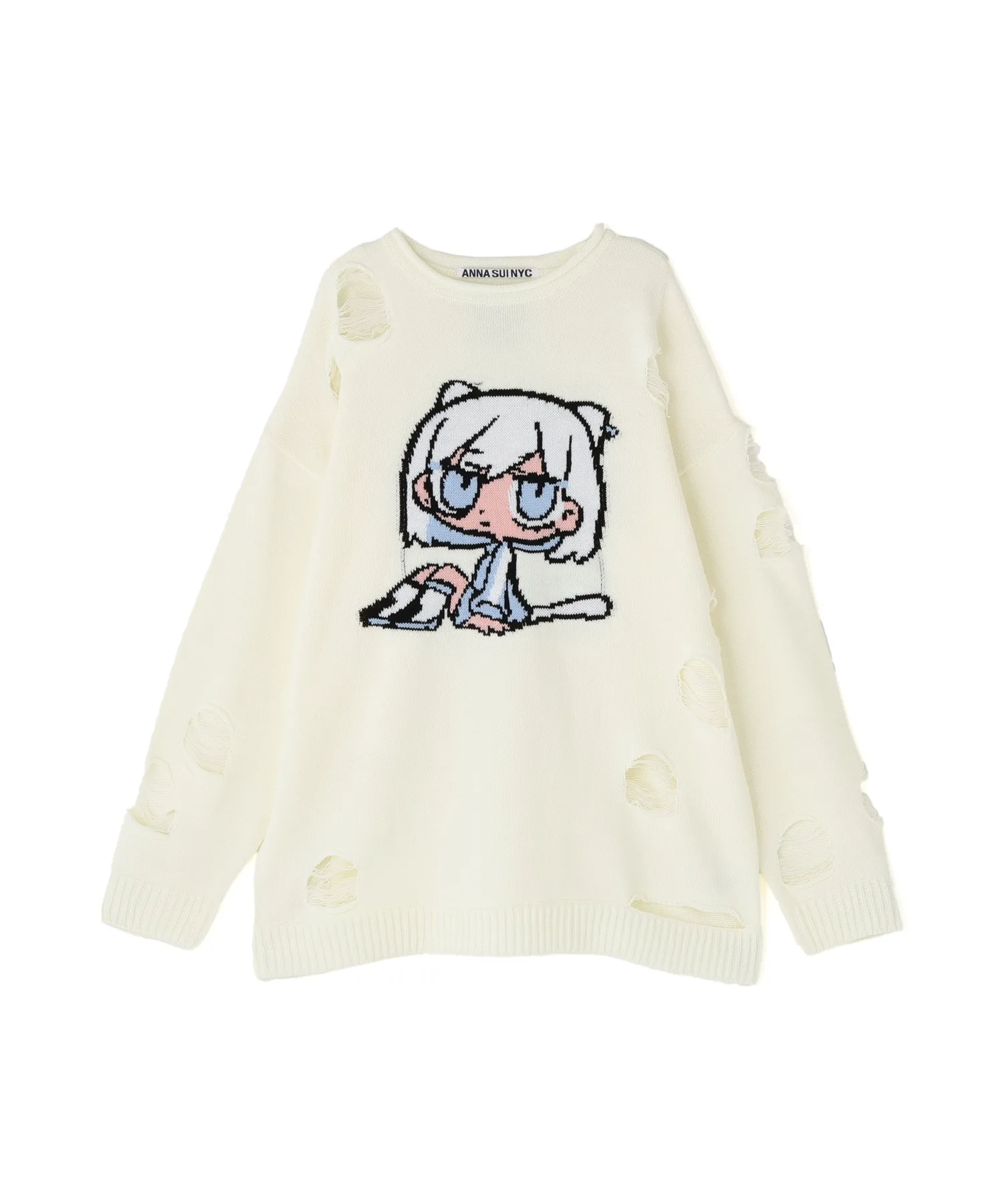 Особая коллаборация цифрового дизайнера Терады Тера и ANNA SUI NYC. Этот объемный трикотаж украшен жаккардовым узором с изображением поп-персонажа и потертыми деталями, создающими девичий, но в то же время роскошный образ. Умеренно свободный силуэт создает ощущение расслабленности, позволяя носить его с прозрачной блузкой или как платье. Оригинальная вышивка под воротником сзади добавляет особый шарм. Сочетайте его с простыми элементами гардероба для создания эффектного образа. Доступный в двух монохромных цветах, этот предмет одежды можно трансформировать под любой стиль и случай. ANNA SUI NYC — новый бренд повседневной и неформальной одежды. Концепция бренда — «СУВЕНИР НЬЮ-ЙОРКА» и «волнение от шопинга в Нью-Йорке», и бренд предлагает вдохновляющие дизайны и вещи. Мы предлагаем свободную и радостную моду, не ограниченную традиционными стереотипами в одежде.