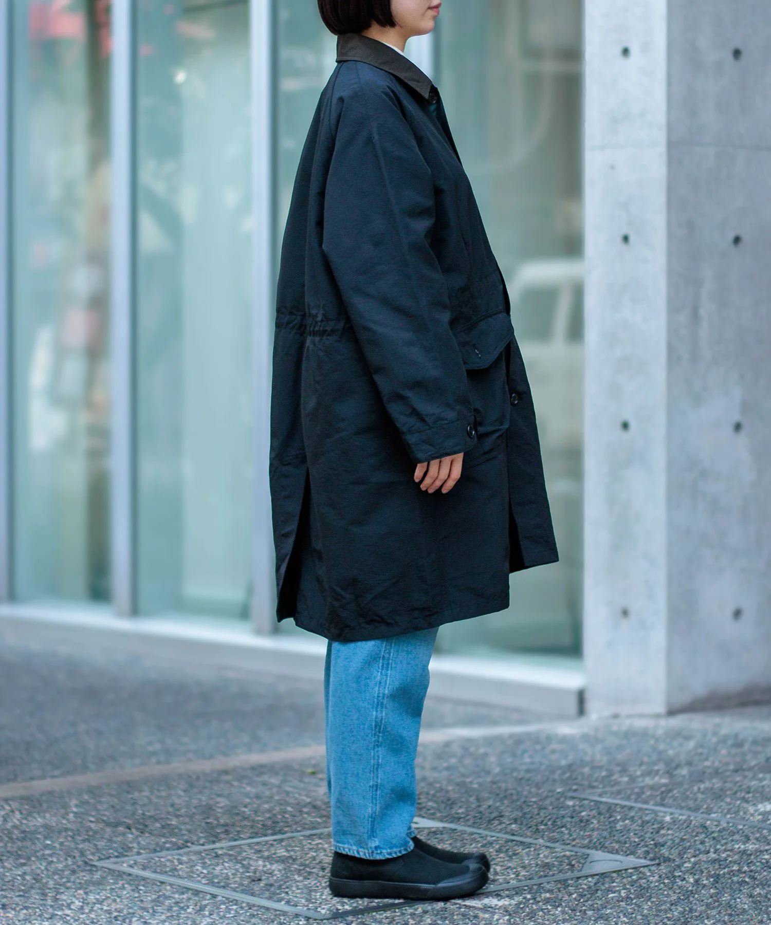 60% хлопковая нить утка и 40% нейлоновая нить основы, обычно известная как 64 cross.Оригинальный функциональный материал, известный своими водоотталкивающими, но при этом дышащими свойствами. Ткань имеет красивый потертый блеск и плотность, а ее уникальная текстура развивается со временем.Воротник выполнен из контрастной ткани, что создает осенне-зимнее ощущение и мягкий вид вокруг лица. Внимание к деталям также проявляется в ремешке под подбородком, больших объемных карманах, реглане внизу спереди и поясе. Свободный, объемный силуэт с рукавами реглан обеспечивает свободу движений, и его можно комфортно носить поверх толстого трикотажа или толстовки.Средняя длина легко сочетается с брюками или юбками. Она естественно прикрывает бедра и создает элегантное, легкое ощущение.…………………… Подкладка: отсутствуетТолщина: стандартнаяРастяжимость: отсутствуетКарманы: естьУход: химчистка…………………… 60% хлопок, 40% нейлон