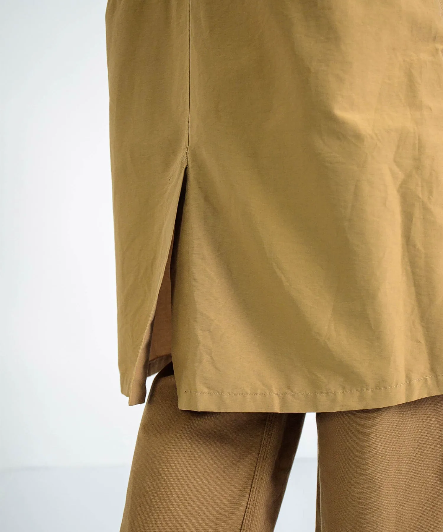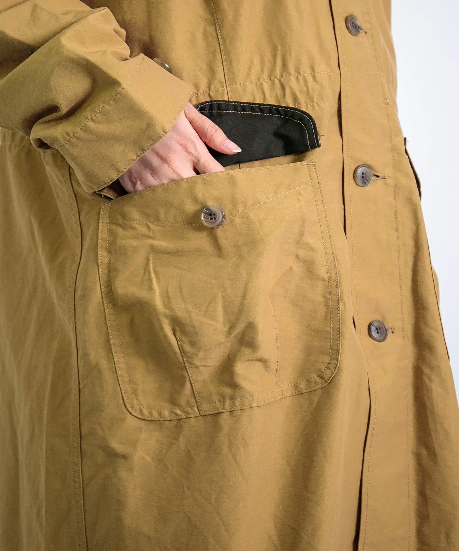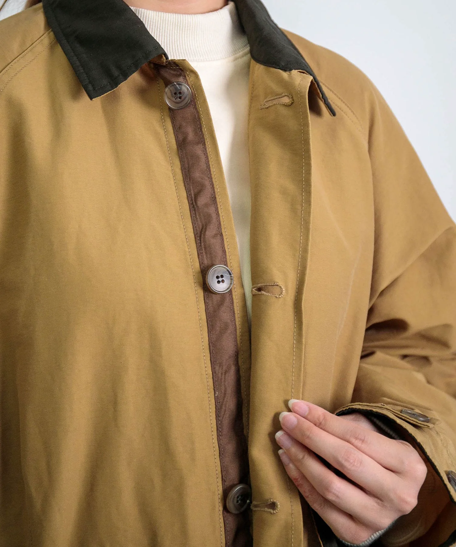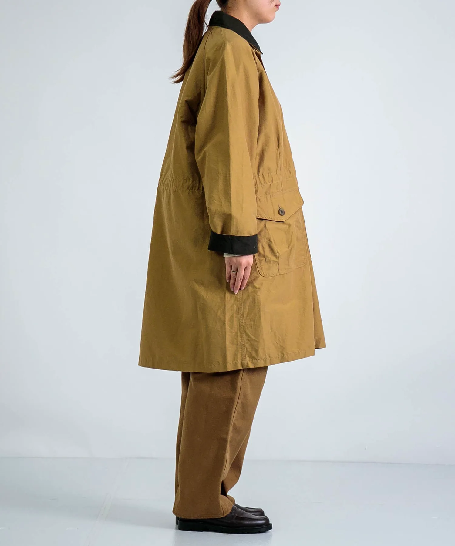 60% хлопковая нить утка и 40% нейлоновая нить основы, обычно известная как 64 cross.Оригинальный функциональный материал, известный своими водоотталкивающими, но при этом дышащими свойствами. Ткань имеет красивый потертый блеск и плотность, а ее уникальная текстура развивается со временем.Воротник выполнен из контрастной ткани, что создает осенне-зимнее ощущение и мягкий вид вокруг лица. Внимание к деталям также проявляется в ремешке под подбородком, больших объемных карманах, реглане внизу спереди и поясе. Свободный, объемный силуэт с рукавами реглан обеспечивает свободу движений, и его можно комфортно носить поверх толстого трикотажа или толстовки.Средняя длина легко сочетается с брюками или юбками. Она естественно прикрывает бедра и создает элегантное, легкое ощущение.…………………… Подкладка: отсутствуетТолщина: стандартнаяРастяжимость: отсутствуетКарманы: естьУход: химчистка…………………… 60% хлопок, 40% нейлон