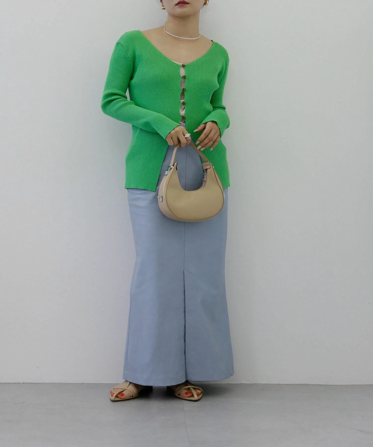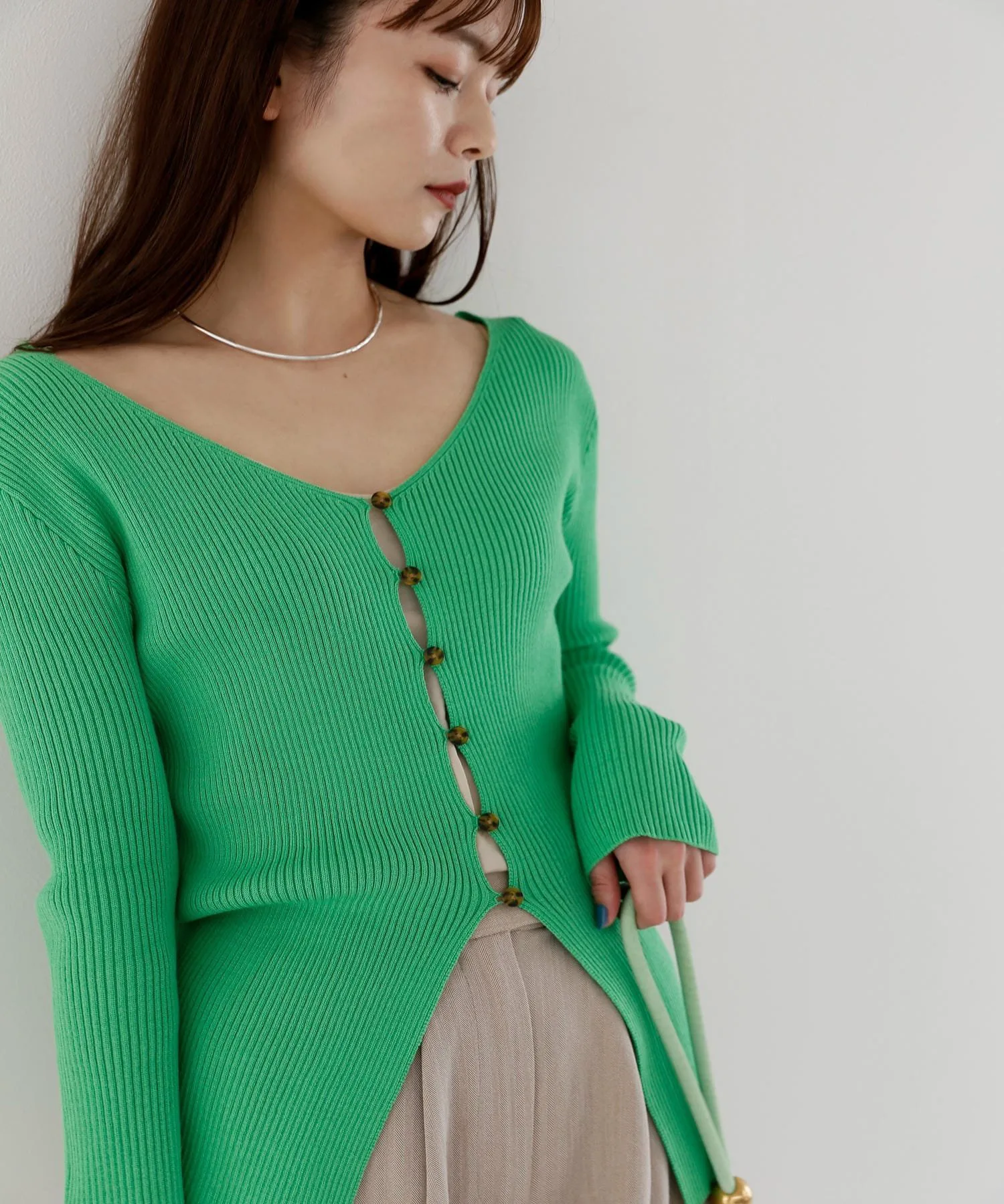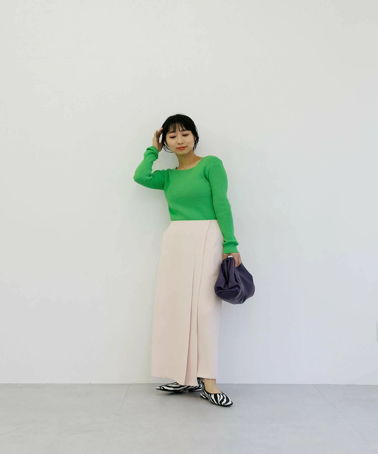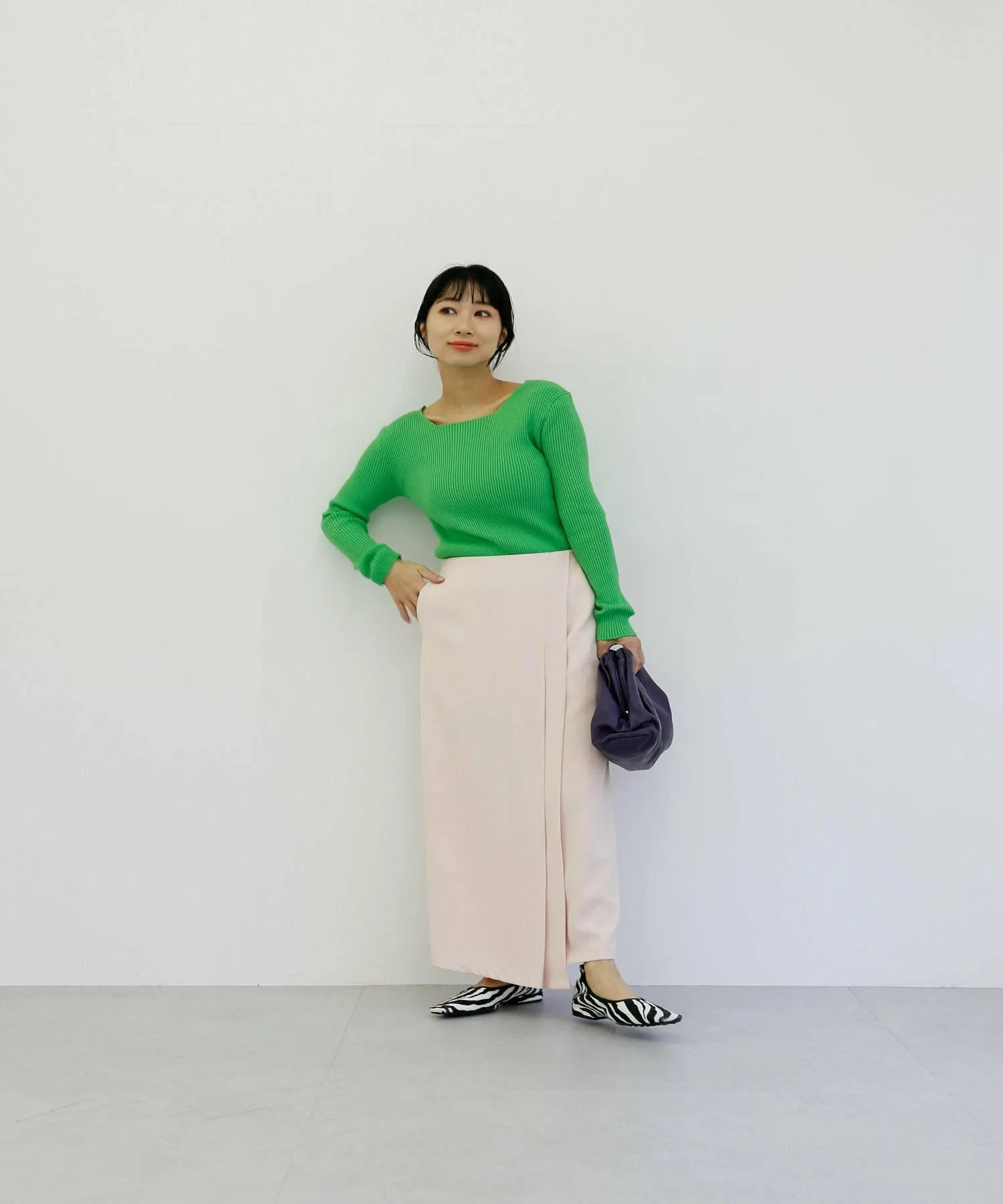・Зеленый: Свежий цвет, который не является ни светло-зеленым, ни зеленым. Просто добавив зеленый цвет, вы можете сделать весь образ стильным, используя его в качестве союзника.