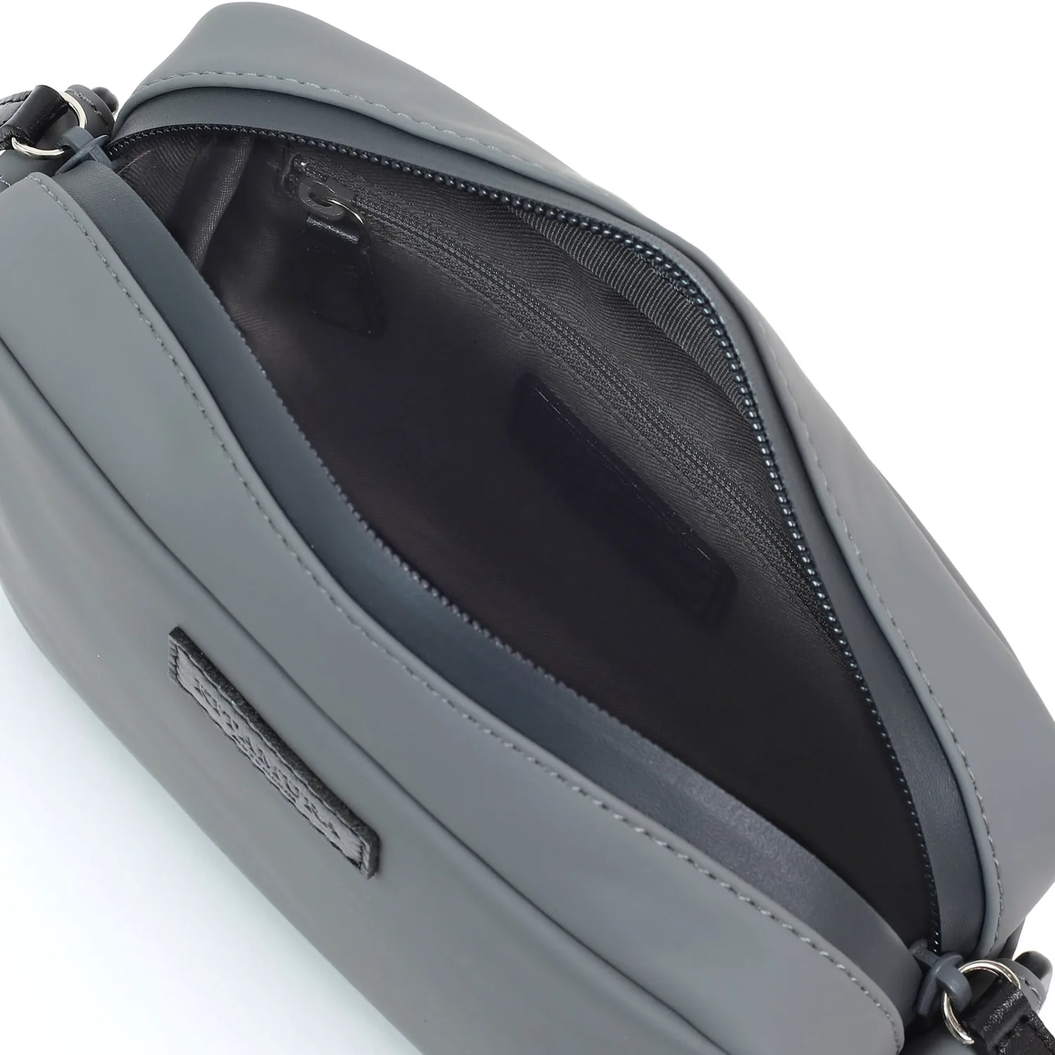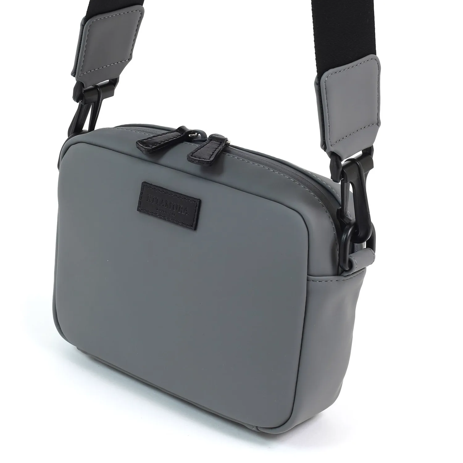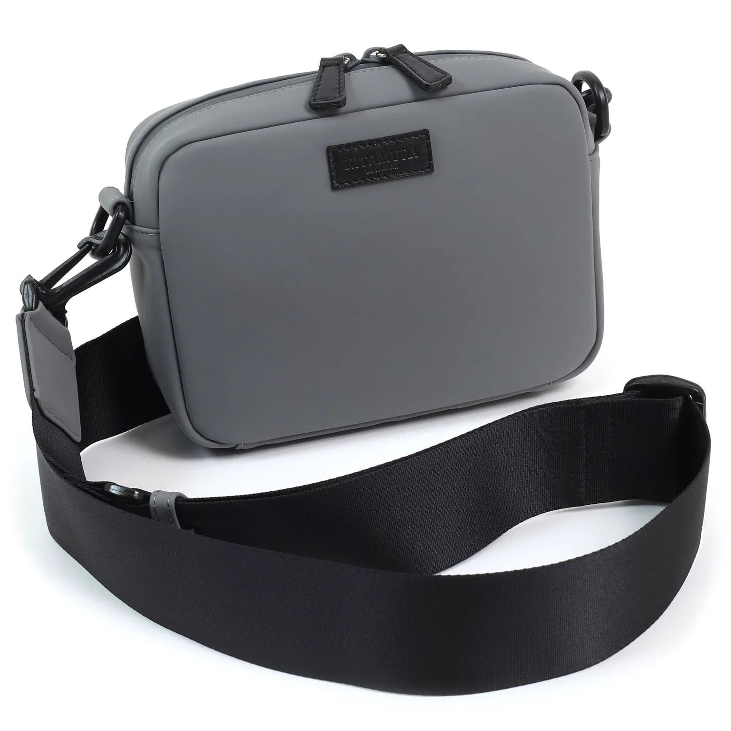 Эта сумка через плечо имеет матовую, резиноподобную текстуру. Она изготовлена из функциональной синтетической кожи, устойчивой к трению, высоким температурам и влажности. Молния водонепроницаема, поэтому вам не нужно беспокоиться о том, что она промокнет в дождливую погоду. Кожа коровы, используемая для язычка молнии и логотипа, обработана водоотталкивающим покрытием. Спортивный, толстый плечевой ремень органично сочетается с сумкой. Если снять плечевой ремень, ее можно использовать и как чехол.