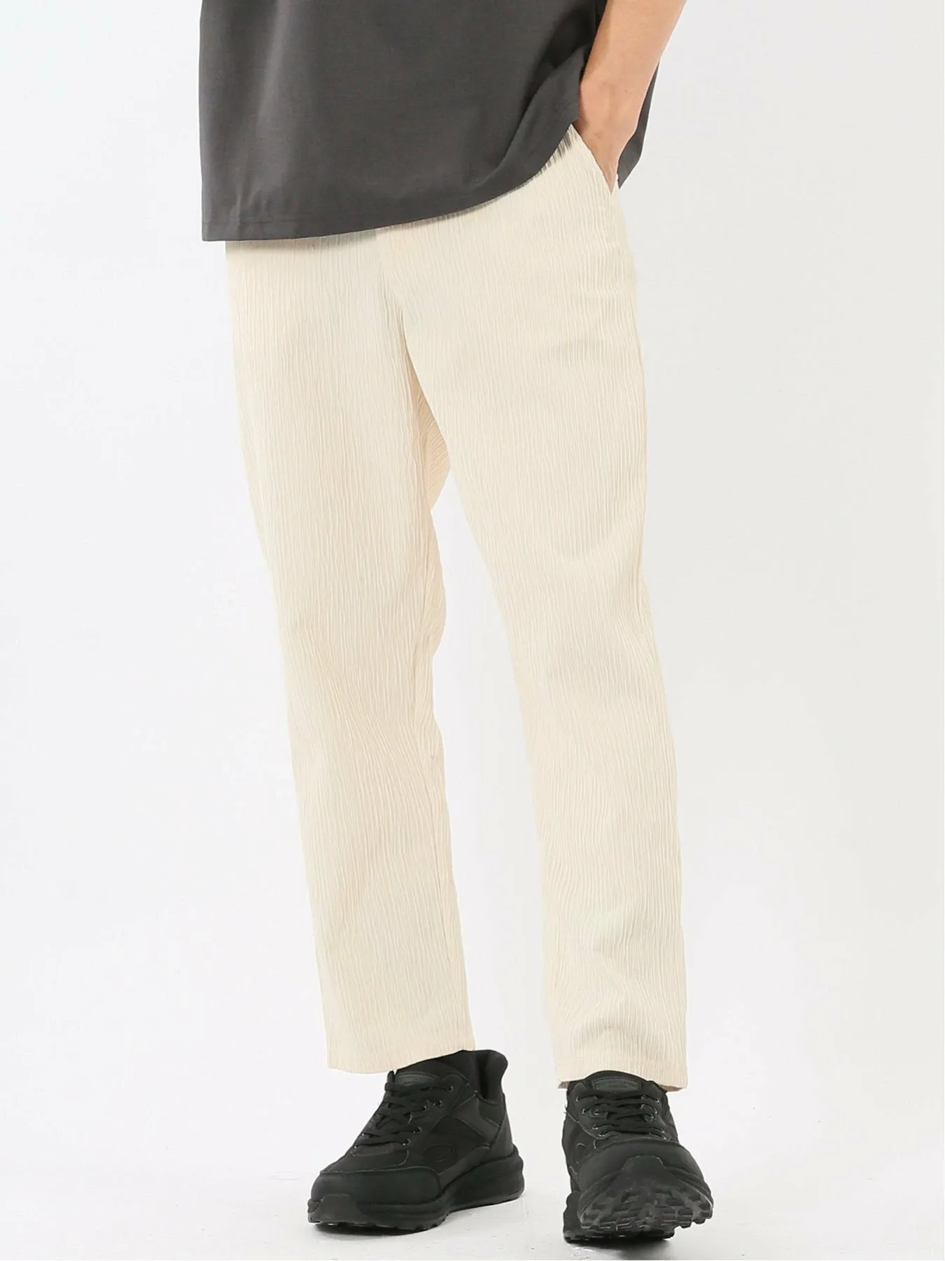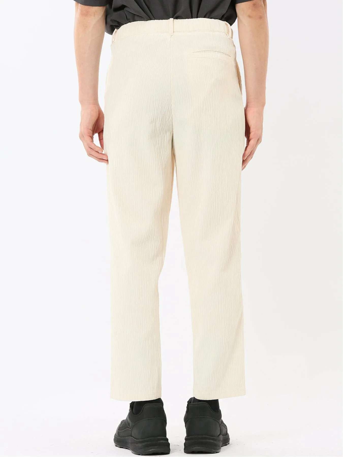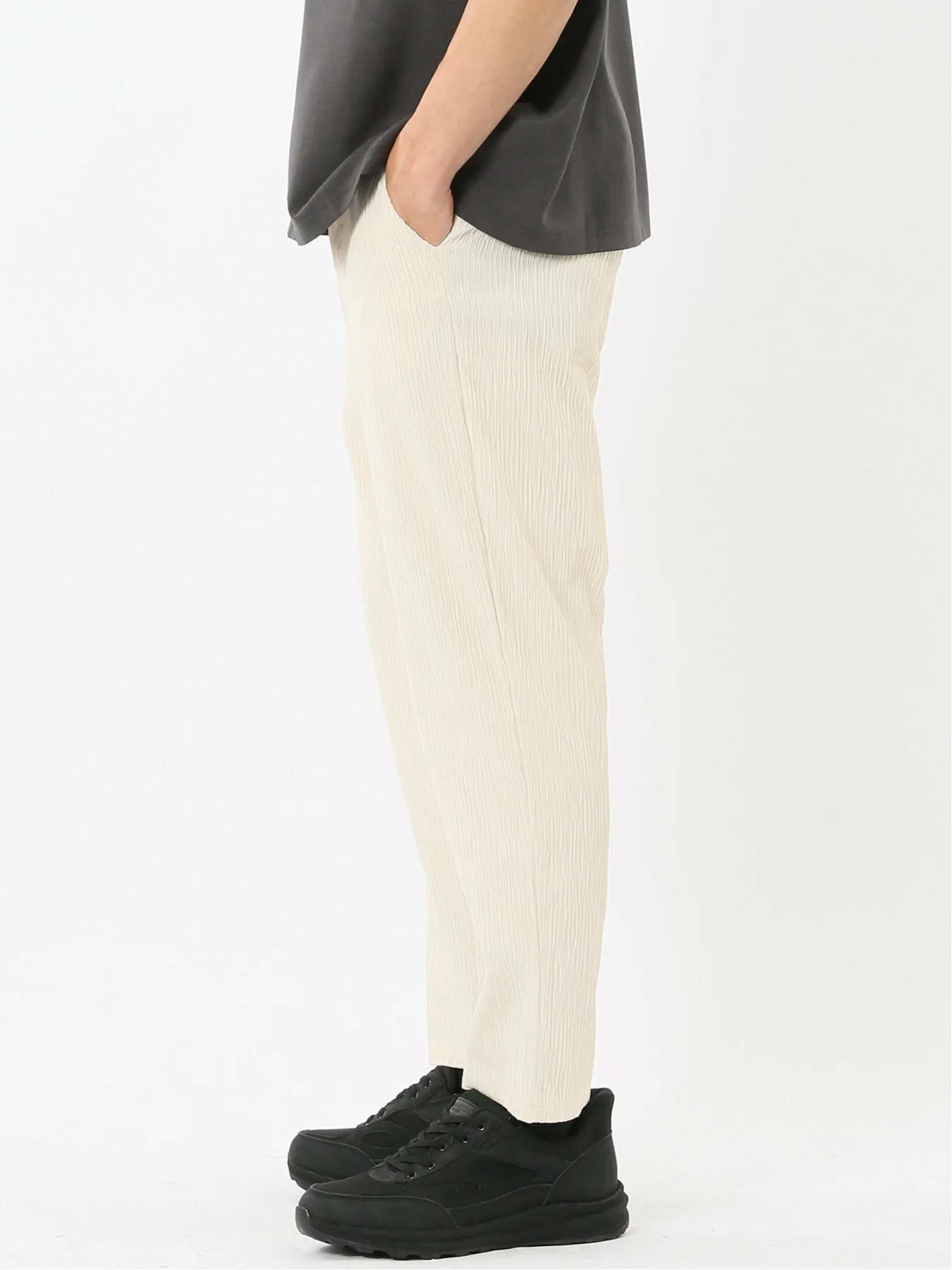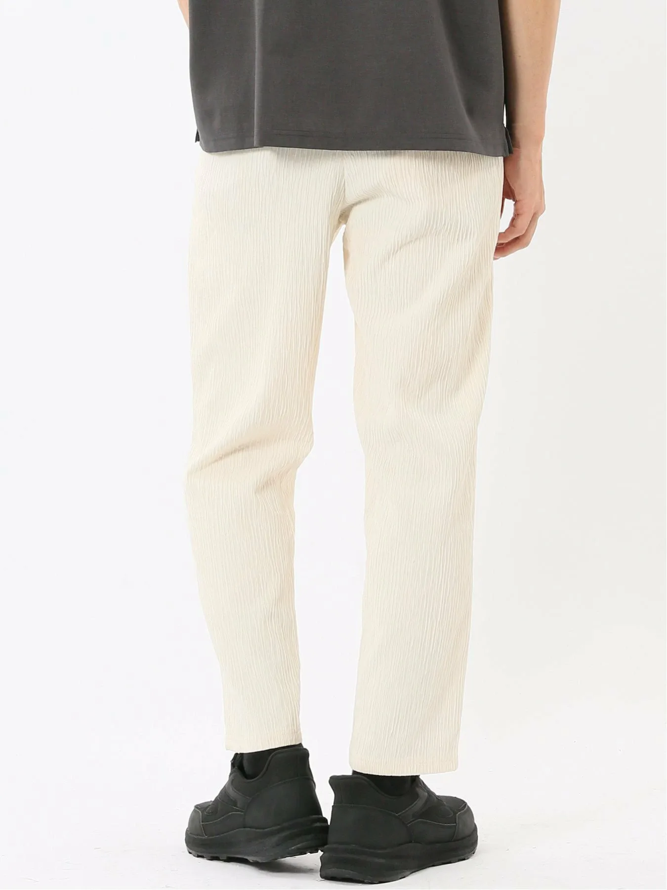 Изготовлены из 100% полиэстеровой ткани Yoru, обеспечивающей ощущение прохлады. Особенности включают в себя мелкозернистую вертикальную структуру, естественную мятую текстуру и отличную эластичность. Внутренняя сторона мягкая и гладкая на ощупь.