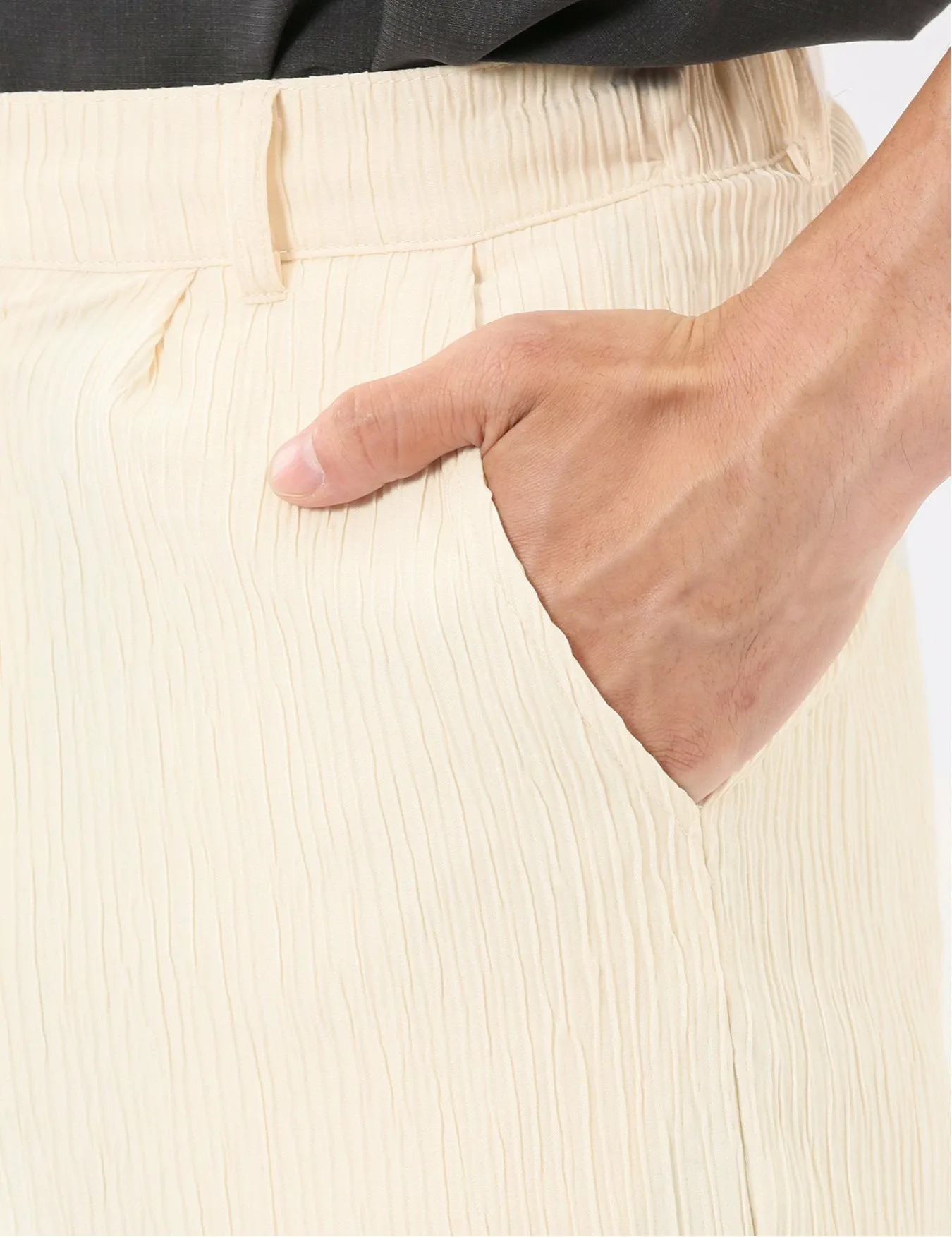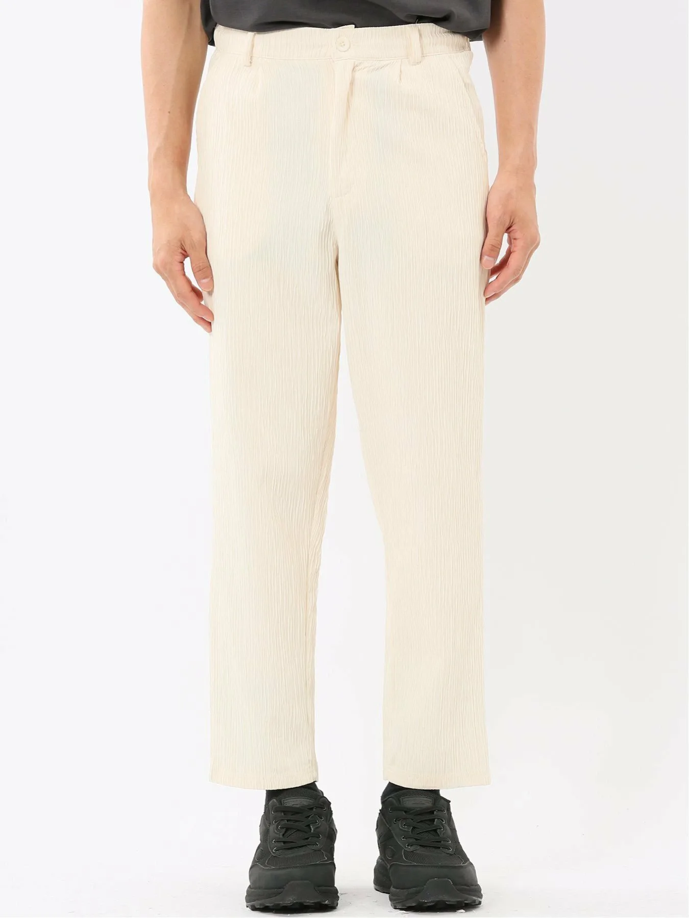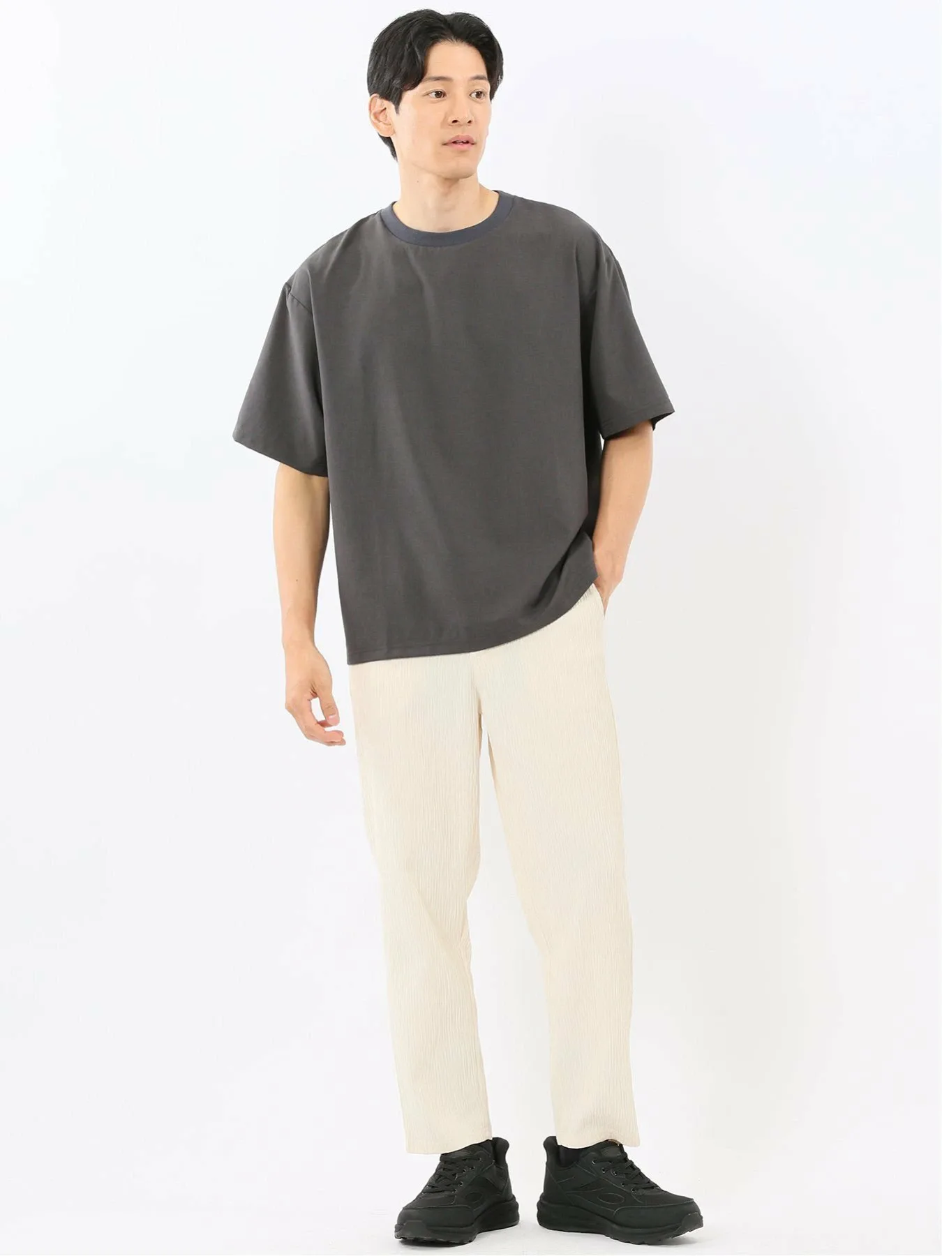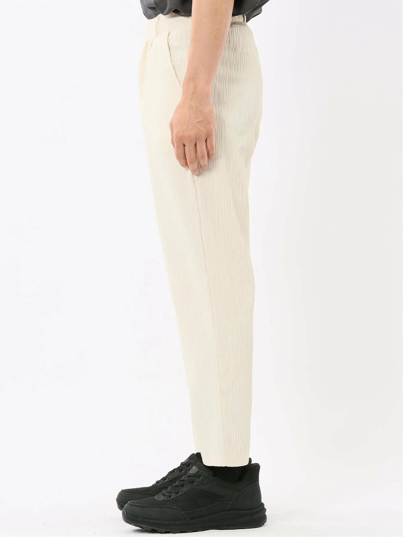Изготовлены из 100% полиэстеровой ткани Yoru, обеспечивающей ощущение прохлады. Особенности включают в себя мелкозернистую вертикальную структуру, естественную мятую текстуру и отличную эластичность. Внутренняя сторона мягкая и гладкая на ощупь.