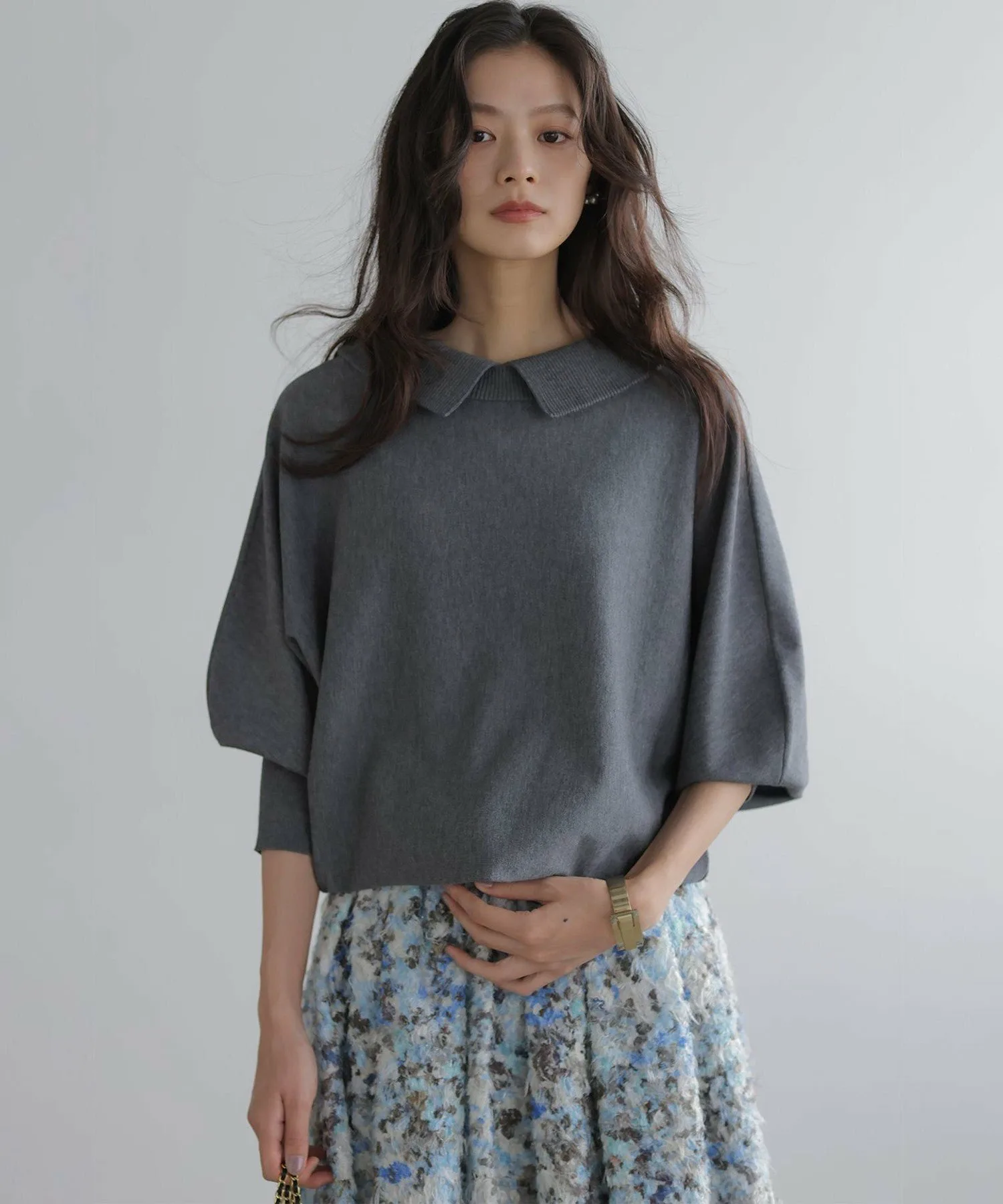 [Комментарии сотрудников]▼Рост: 158 см | Размер 2 (обычно ношу размер M) При ношении задом наперед создается воротникообразный дизайн для милого образа. Несмотря на свободный крой, длина не слишком большая, поэтому рекомендуется сочетать с расклешенной юбкой!