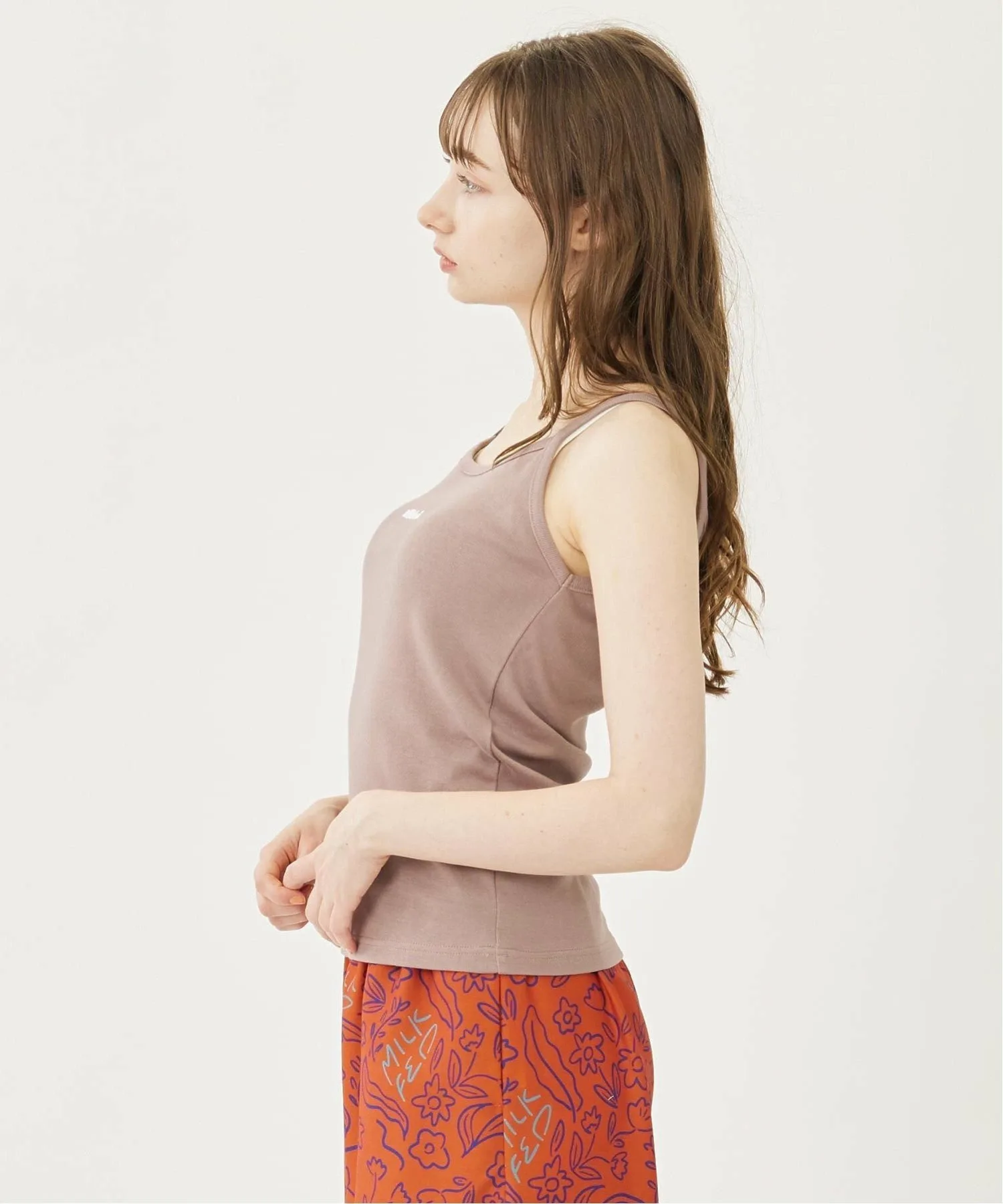 Мы рекомендуем носить компактный кардиган поверх этой майки компактного силуэта! Это придаст области груди чистый, женственный вид. 〇Сочетайте ее с мини-юбкой или облегающей длинной юбкой для создания девичьего образа.