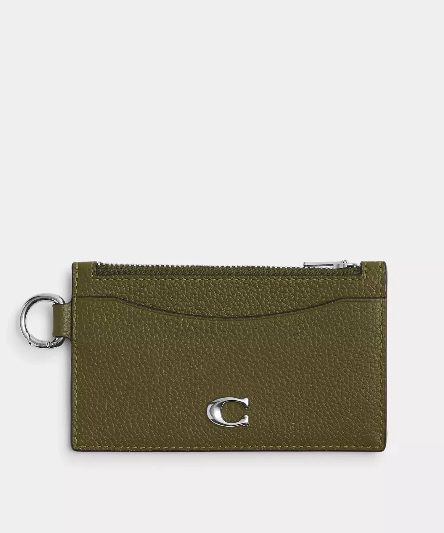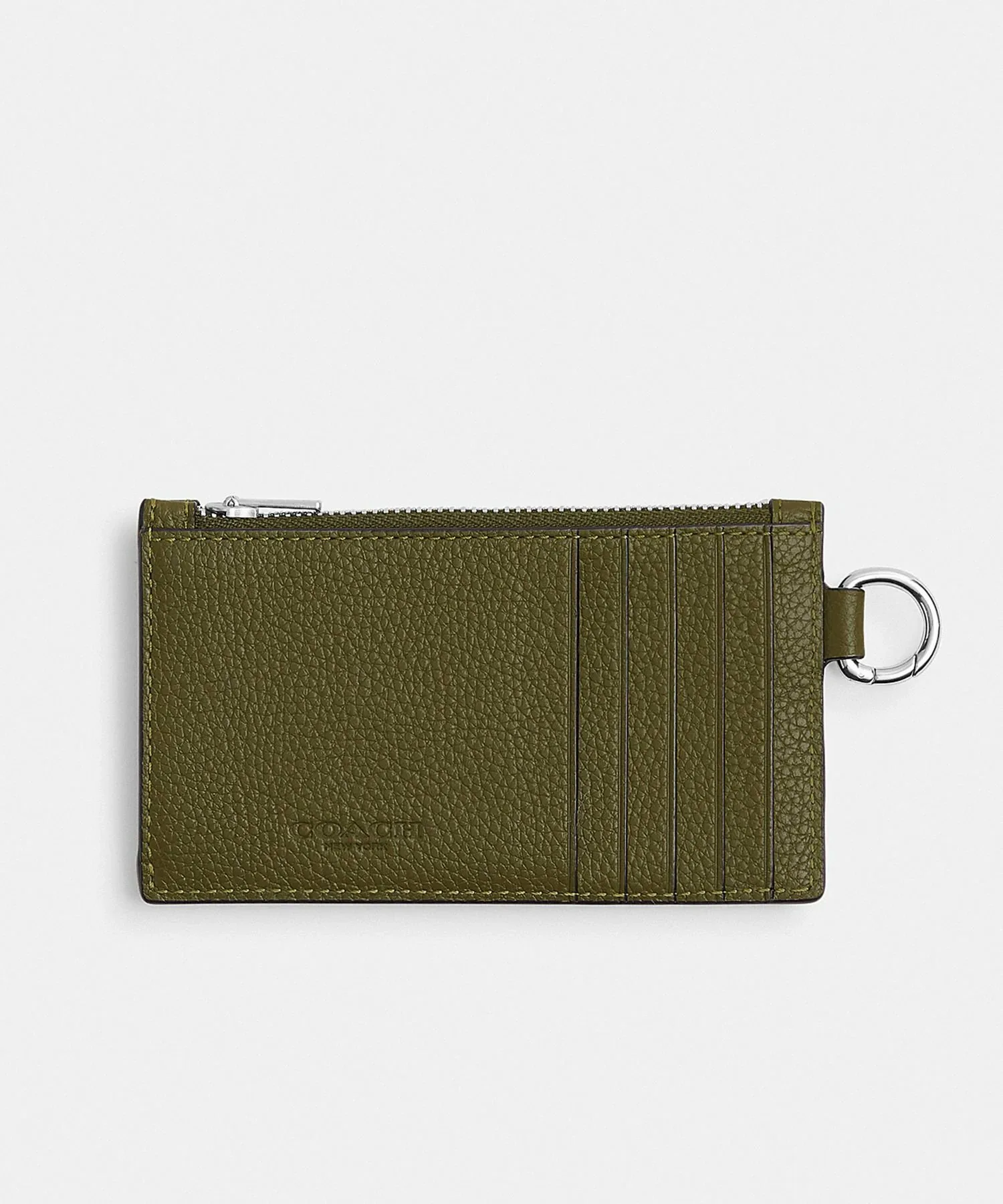 Этот чехол для карт изготовлен из полированной зернистой кожи. Он имеет застежку-молнию, которая расширяет боковую часть.