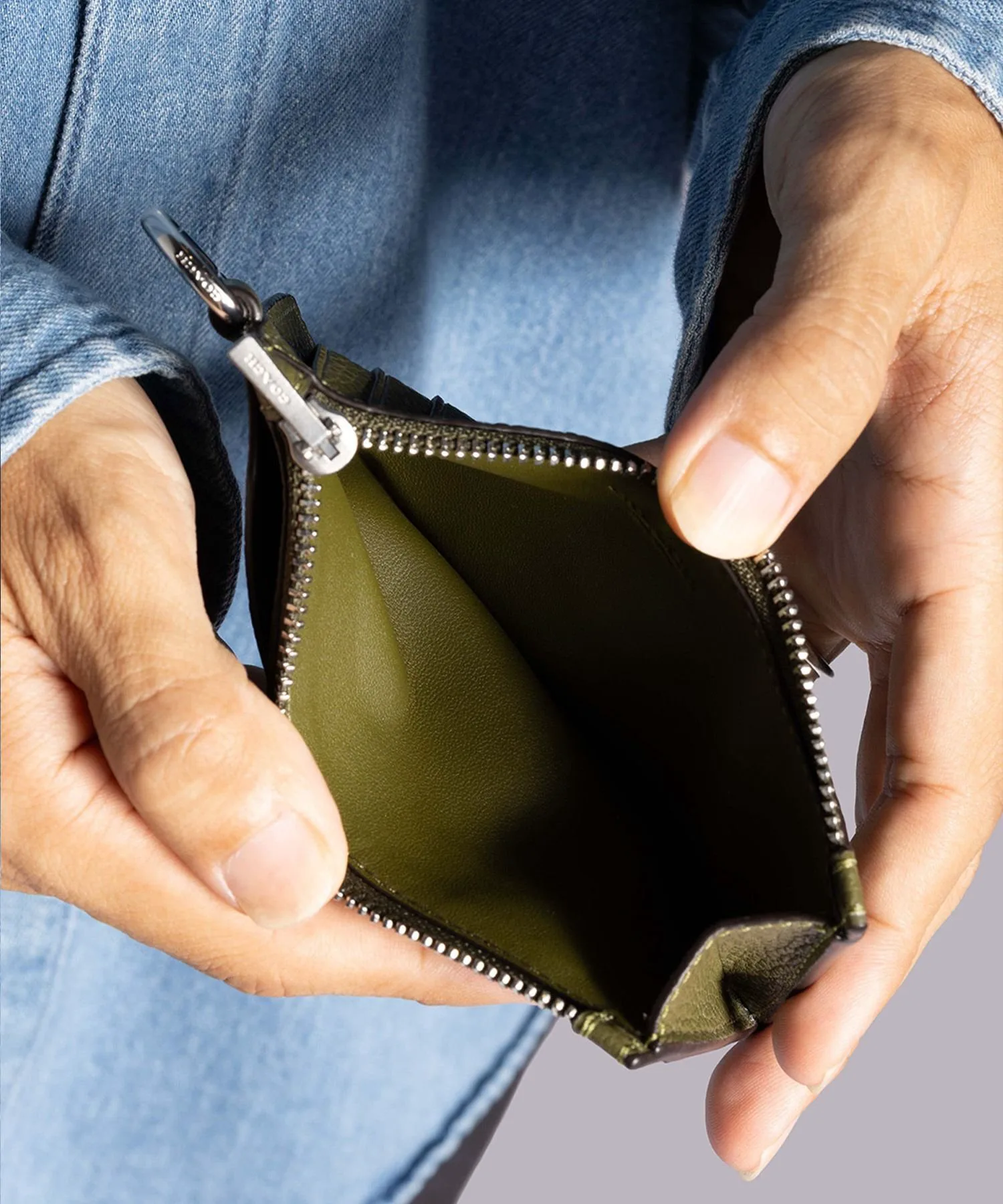 Его тонкий дизайн позволяет легко поместить его в карман, но при этом он вмещает пять карт и другие мелкие необходимые вещи. Шарнирное D-образное кольцо сбоку позволяет прикрепить его к ремешку сумки или хранить ключи.