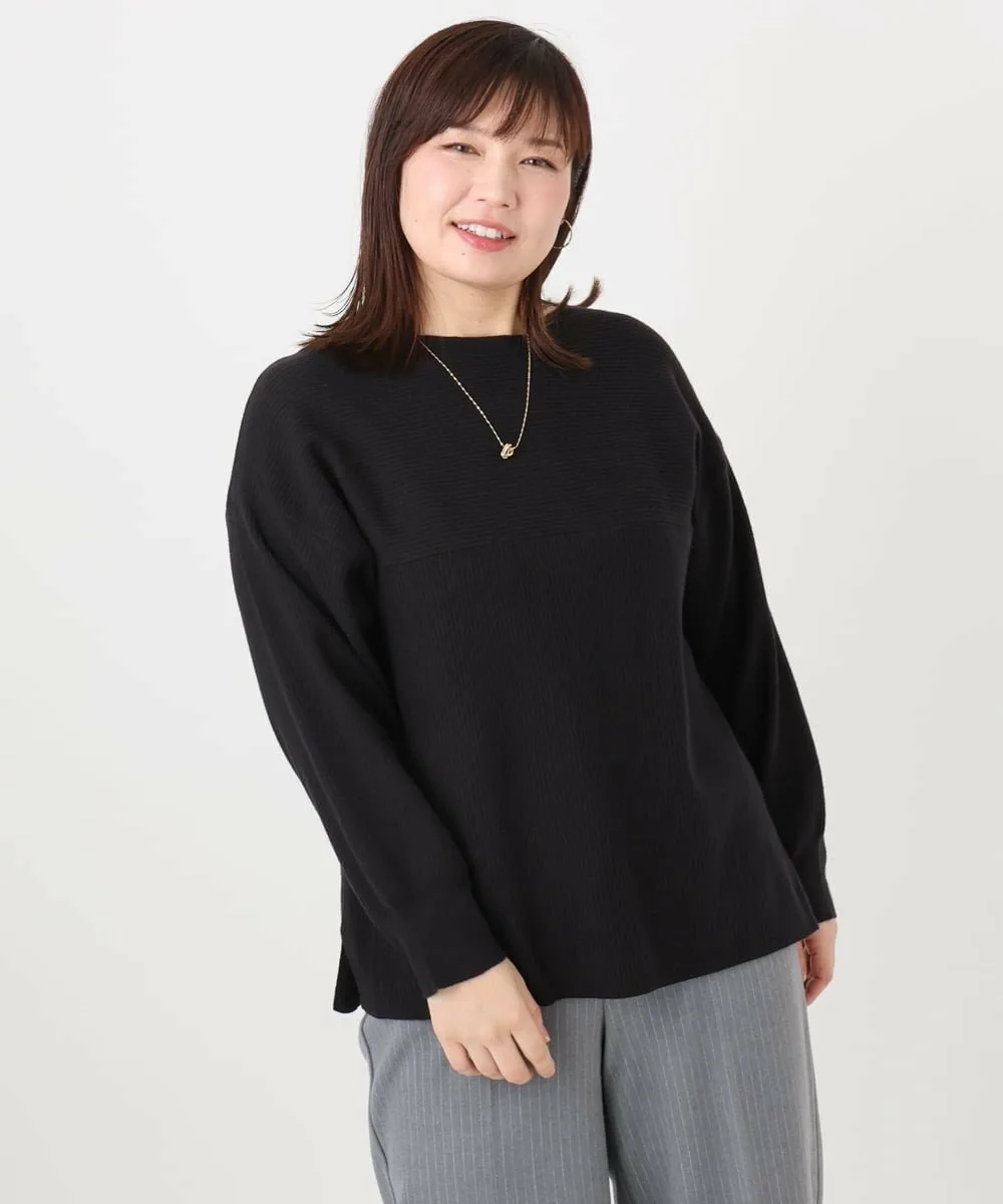 Трикотаж с частичной горизонтальной резинкой, сочетающий в себе умеренную толщину вискозного нейлона и мягкую текстуру PBT.