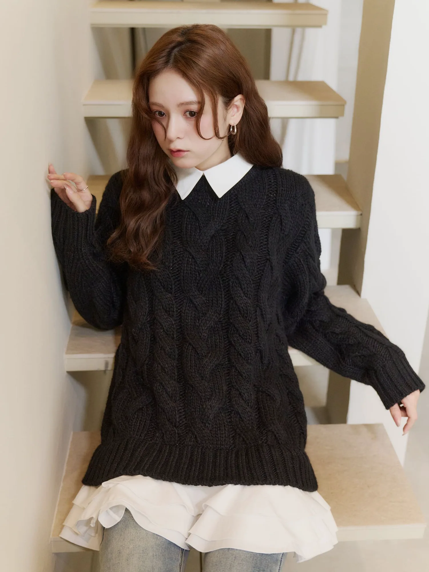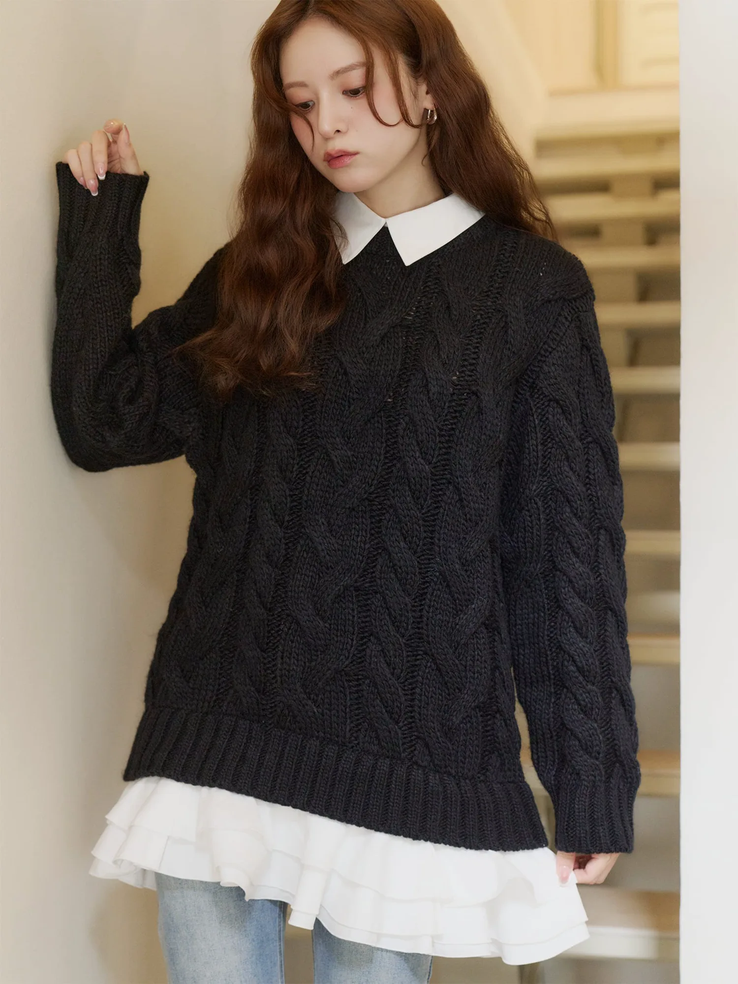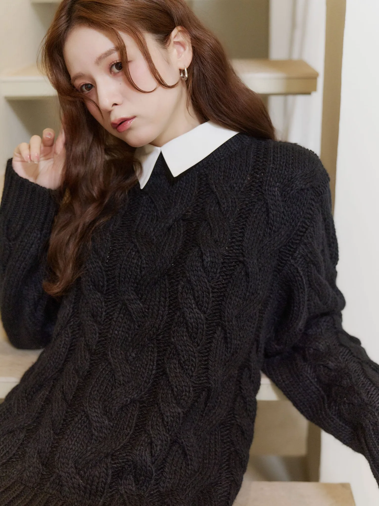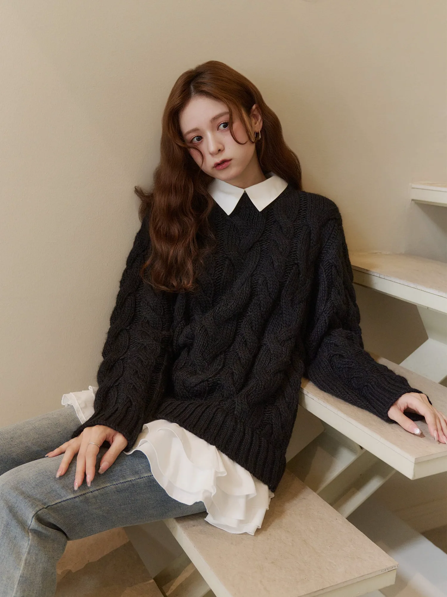 Особый вязаный топ, символизирующий Olu этой зимой, сочетает в себе нежность и элегантность в изысканном балансе.