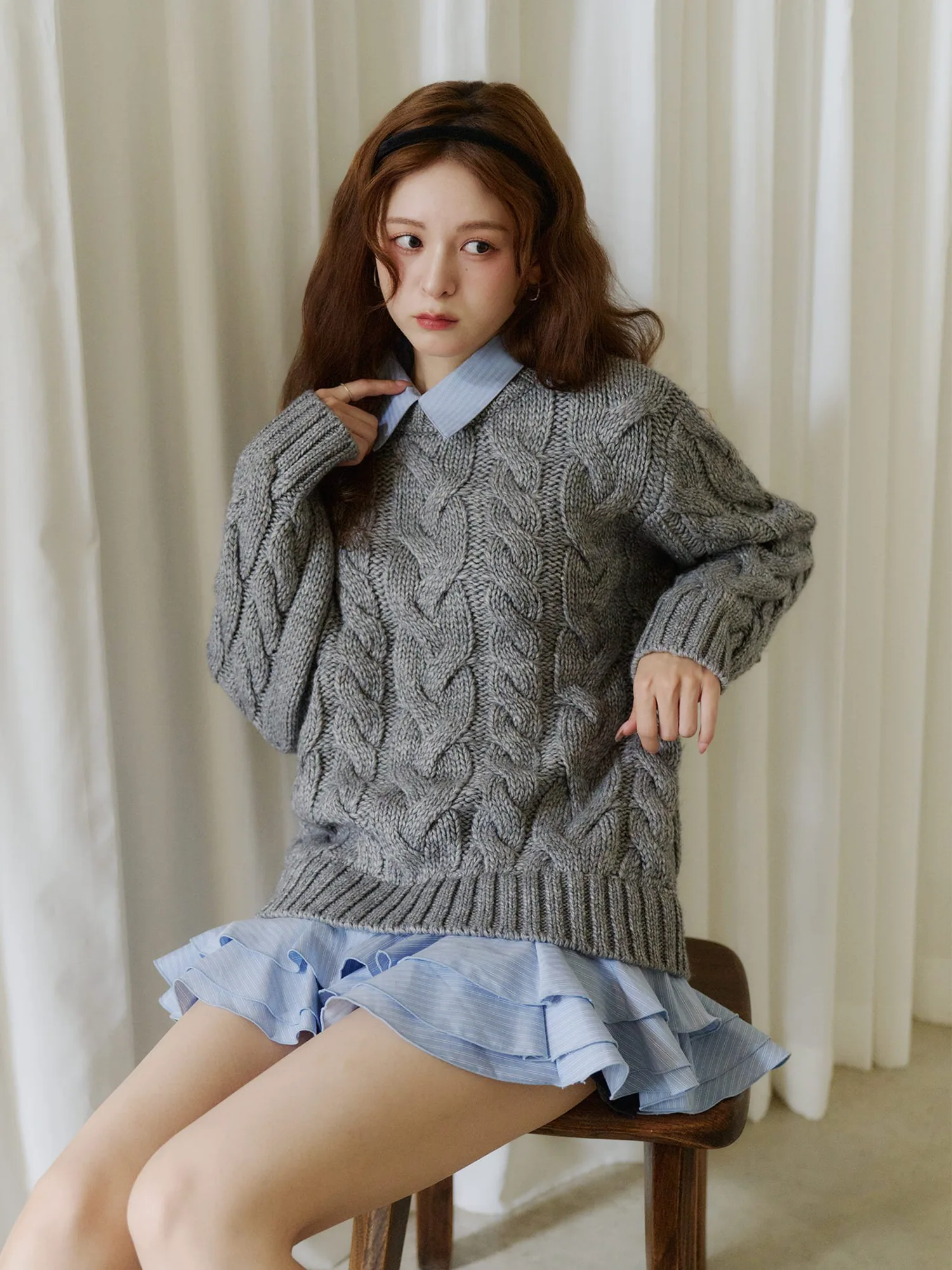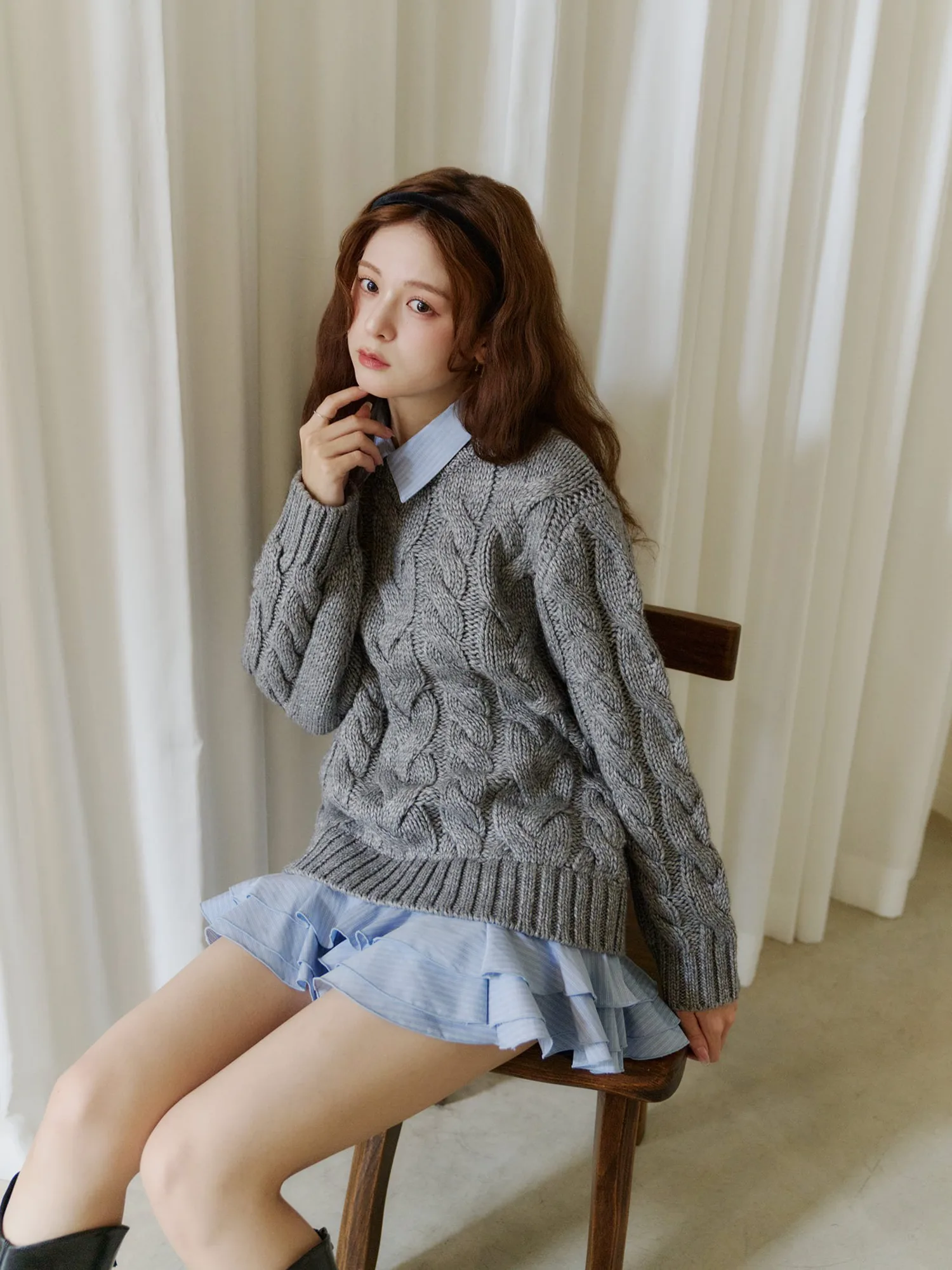 Особый вязаный топ, символизирующий Olu этой зимой, сочетает в себе нежность и элегантность в изысканном балансе.