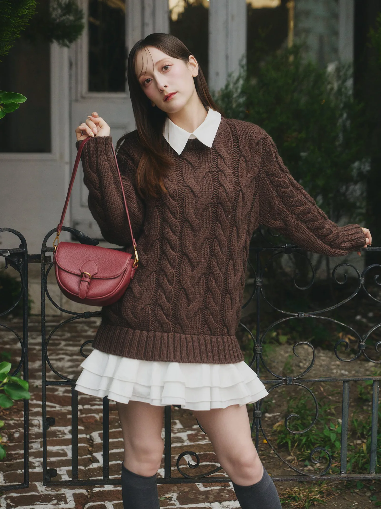 Особый вязаный топ, символизирующий Olu этой зимой, сочетает в себе нежность и элегантность в изысканном балансе.