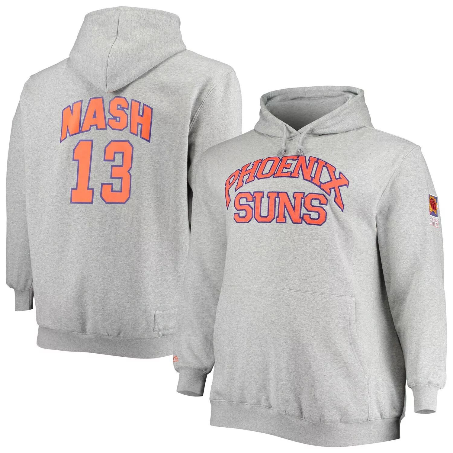 Мужской пуловер с капюшоном Mitchell & Ness Steve Nash Heathered Grey Phoenix Suns Big & Tall Name & Number