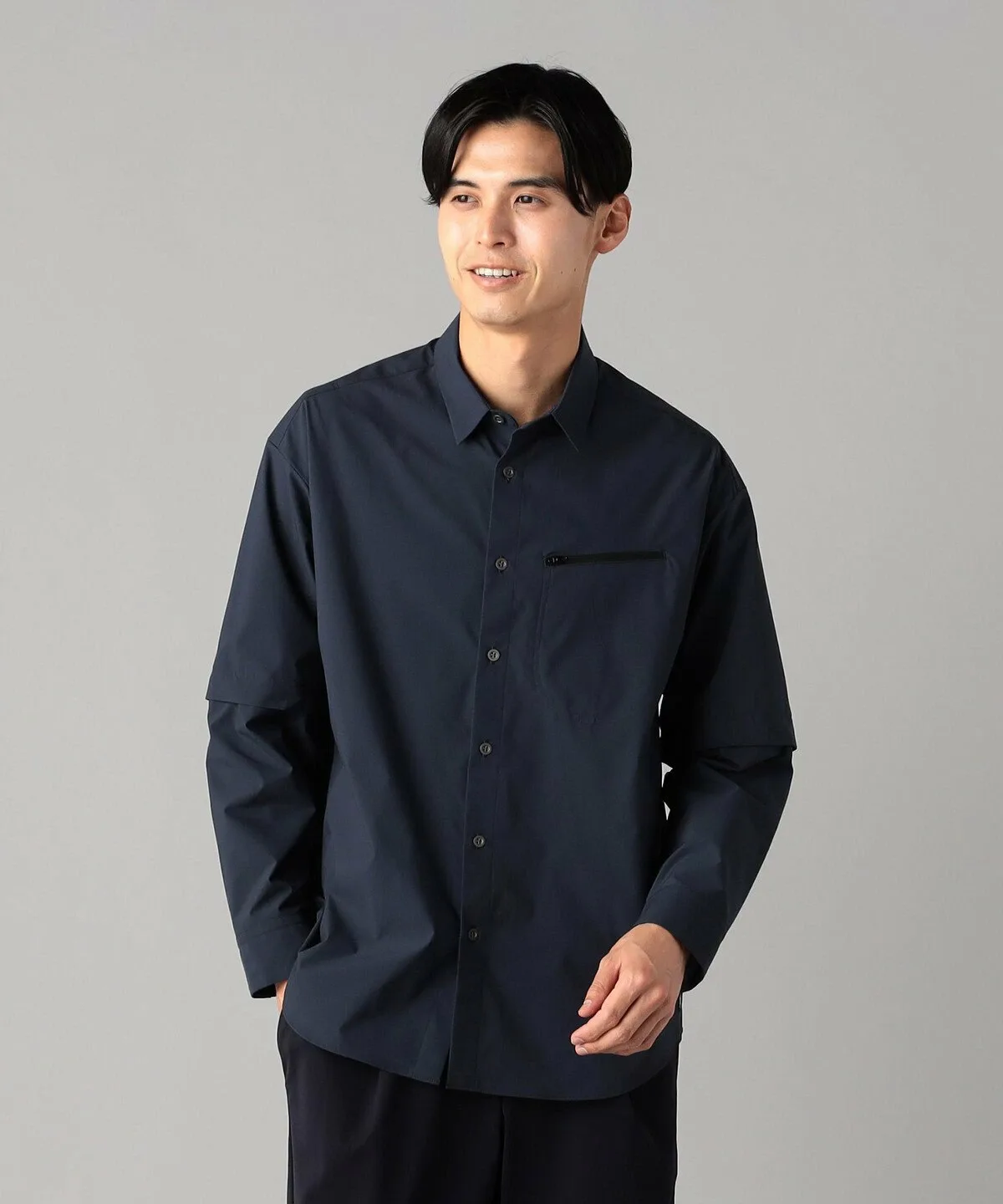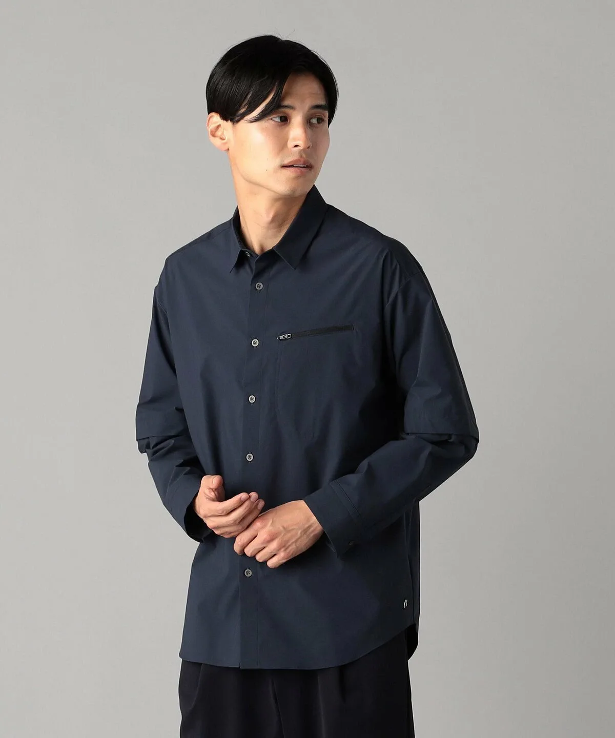 Карман на молнии слева на груди придает этой рубашке уникальный дизайн, создавая необычный вид, напоминающий горную парку или другой блузон.