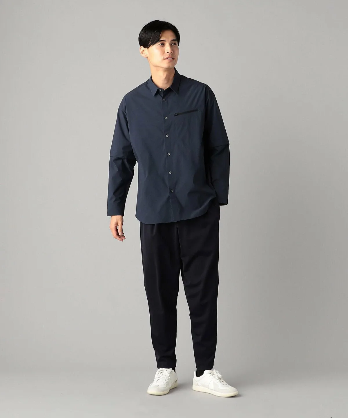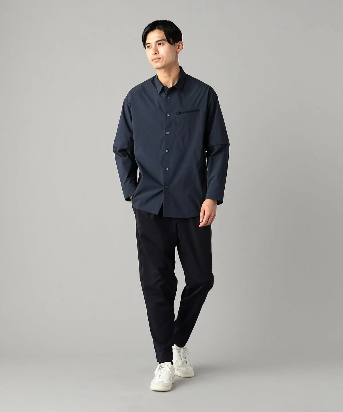 Рукава можно регулировать по длине с помощью кнопок, как в спортивной одежде, что делает ее универсальной вещью, подходящей для всех сезонов.
