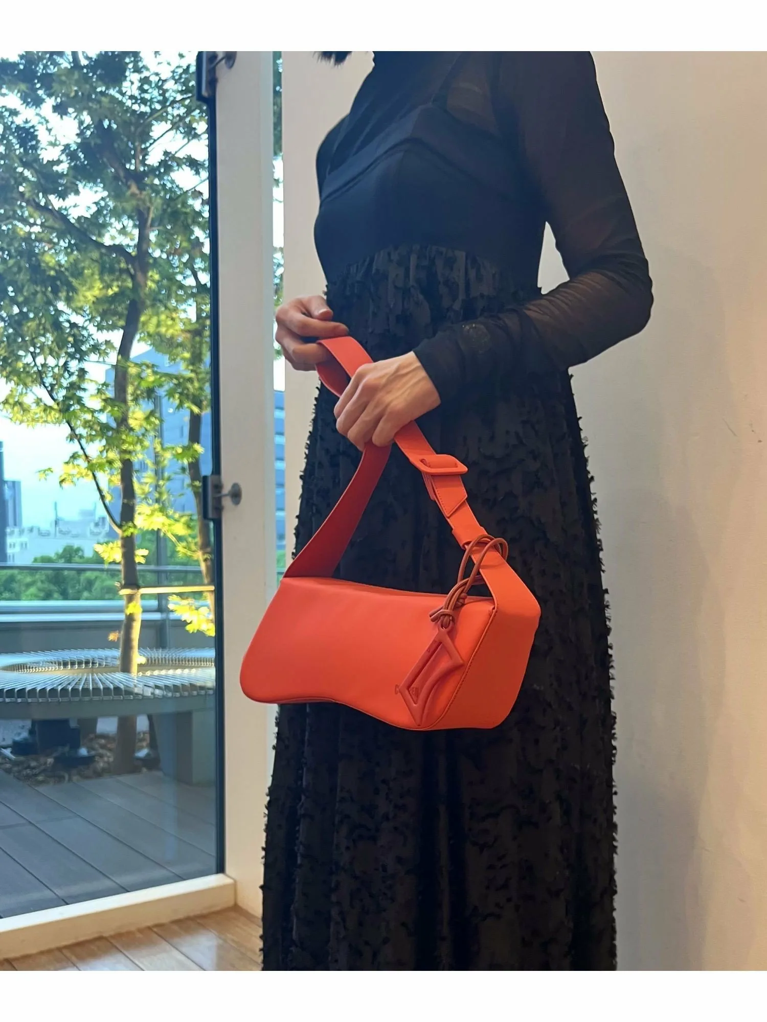 Вместительный дизайн сумки обеспечивает достаточно места для хранения вещей до самого верха, гарантируя достаточную вместимость для повседневных предметов, таких как смартфон или длинный кошелек. Плечевой ремень можно регулировать в зависимости от случая или наряда, от сумочки до сумки через плечо.