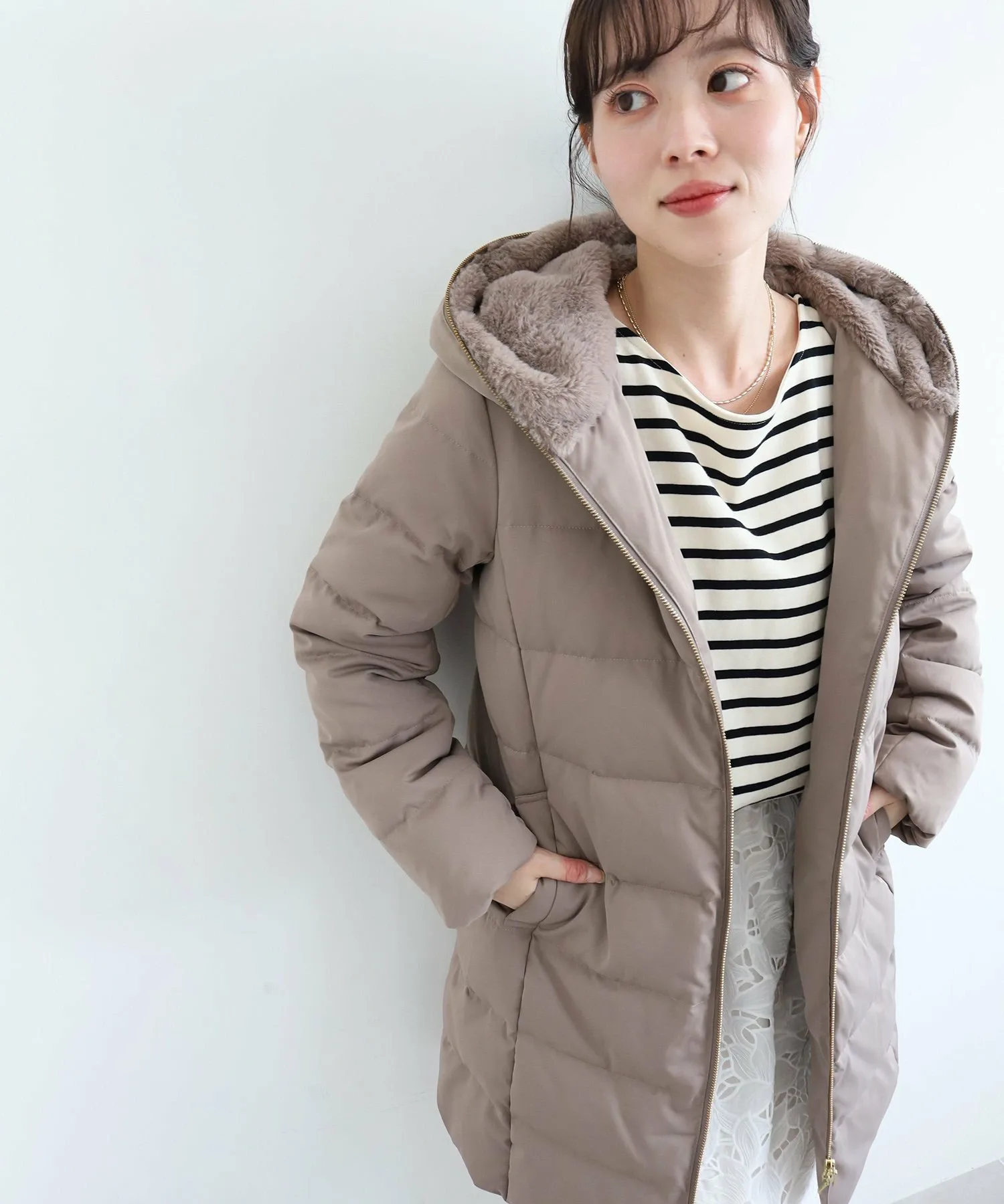 *В том же материале также доступна короткая пуховая куртка. (3058075911 Пуховая куртка с меховым капюшоном)