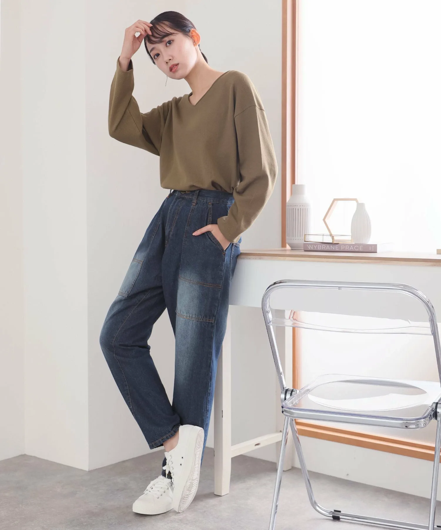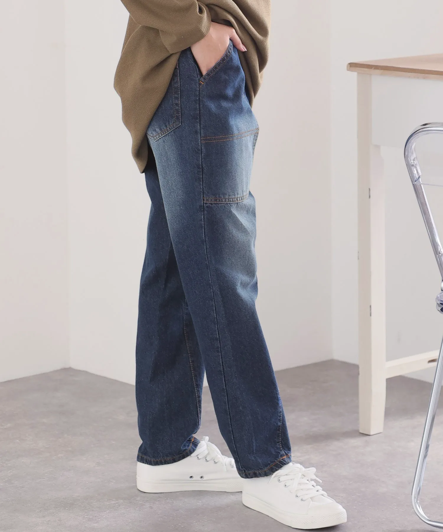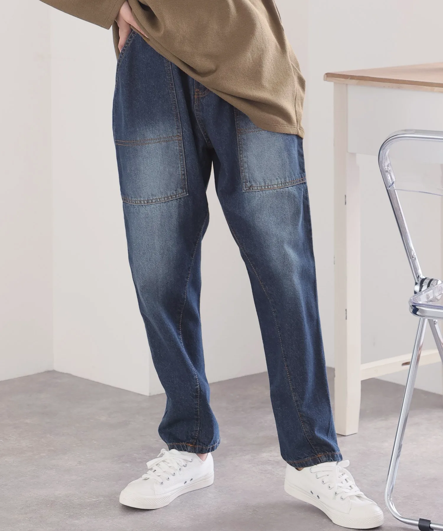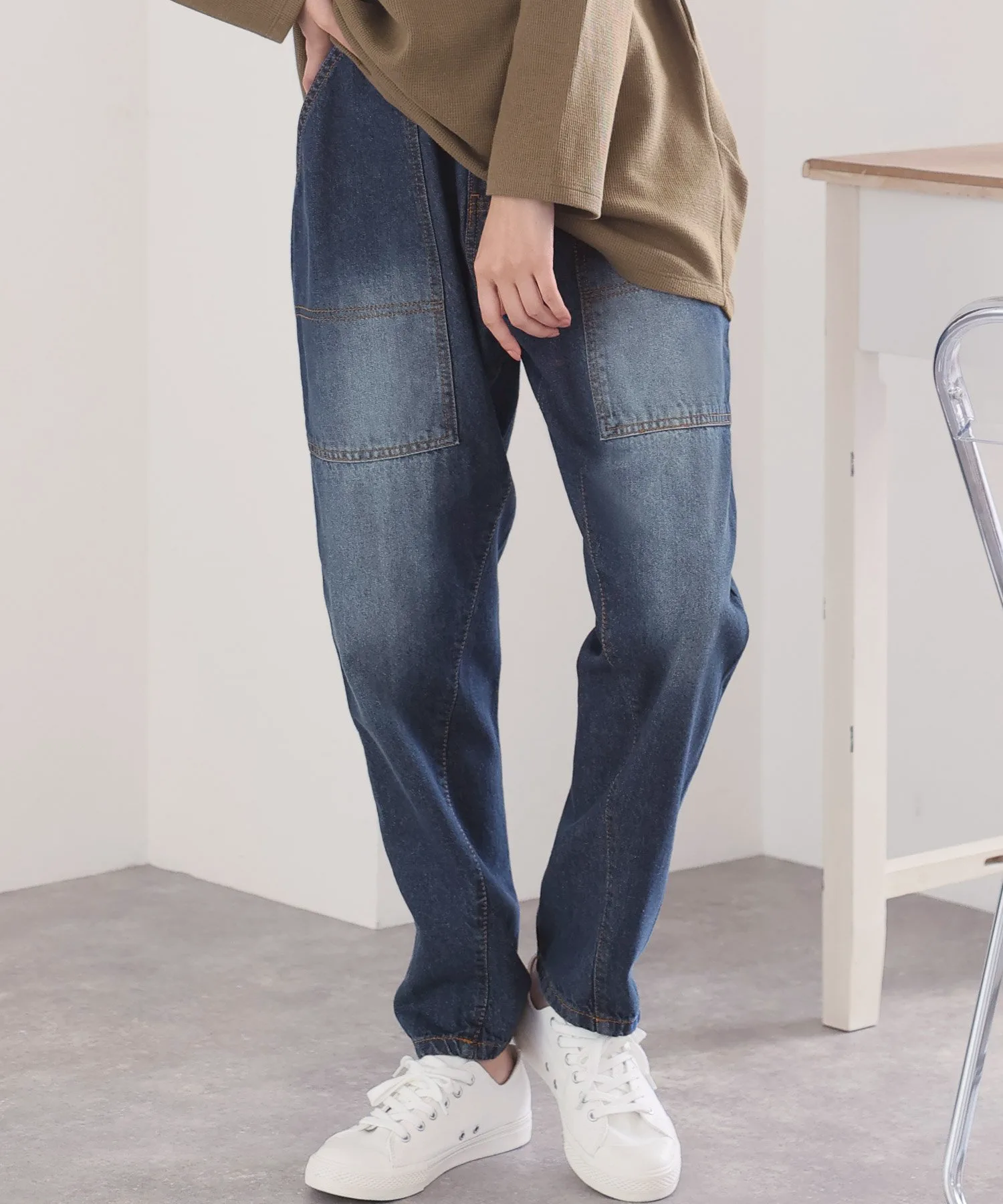 Джинсовые брюки с большими карманами-«булочниками» в качестве изюминки