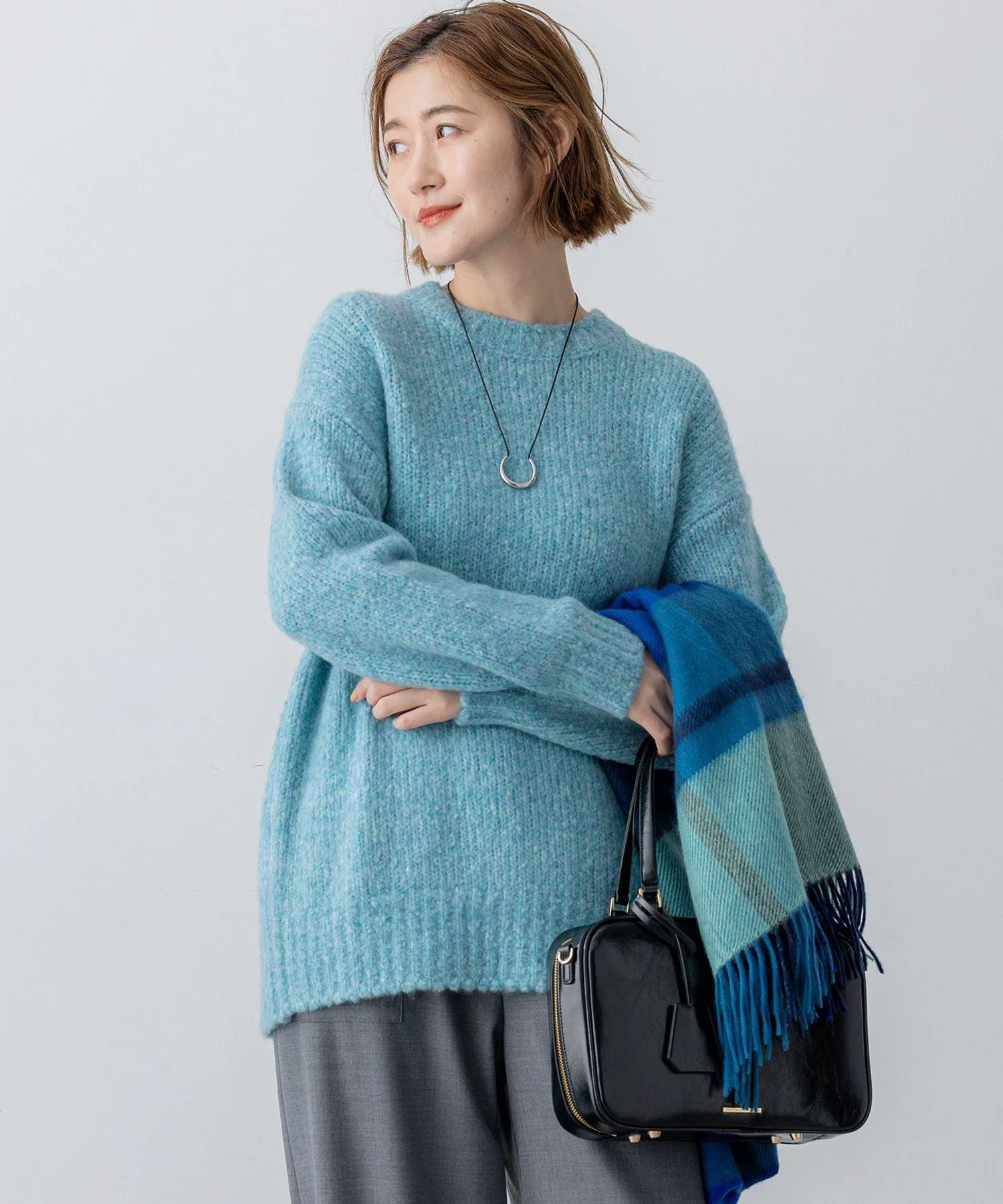 Этот трикотаж отличается яркими цветами и очаровательной текстурой тканей, окрашенных в Италии. Круглый вырез горловины с толстым ребристым воротником, свободный силуэт и длина до бедра делают его теплым и комфортным даже в разгар зимы. Он станет центральным элементом вашего образа, как только вы его наденете, а сочетание с простыми брюками создаст стильный вид. Доступен в трех цветах: универсальный белый (#001), привлекательный яркий пурпурный (#014) и освежающий небесно-голубой (#072).