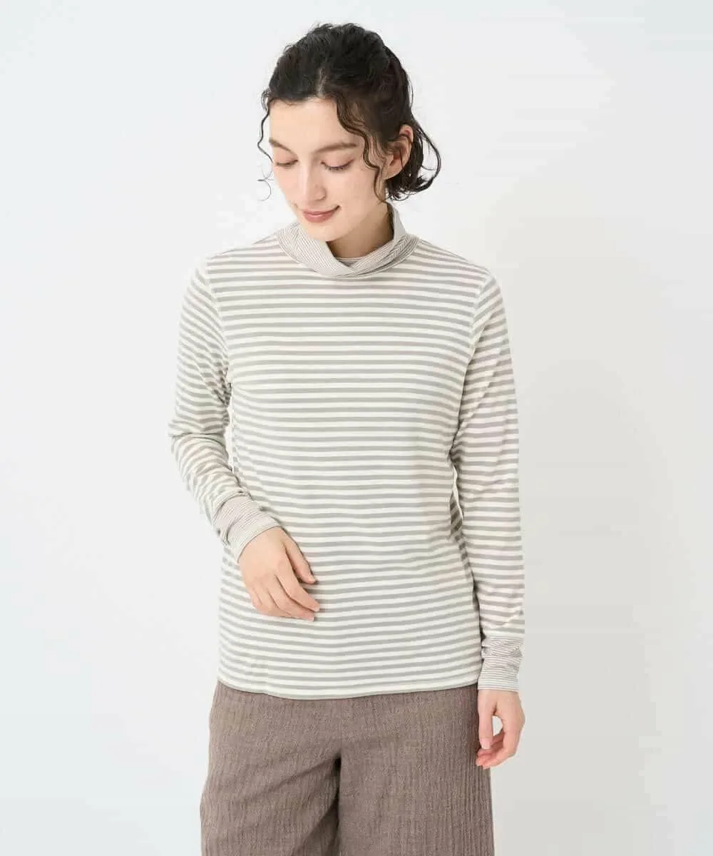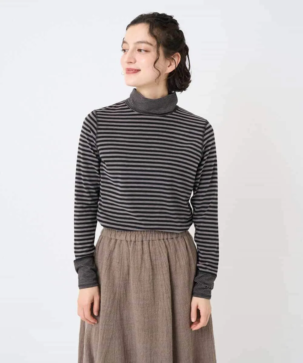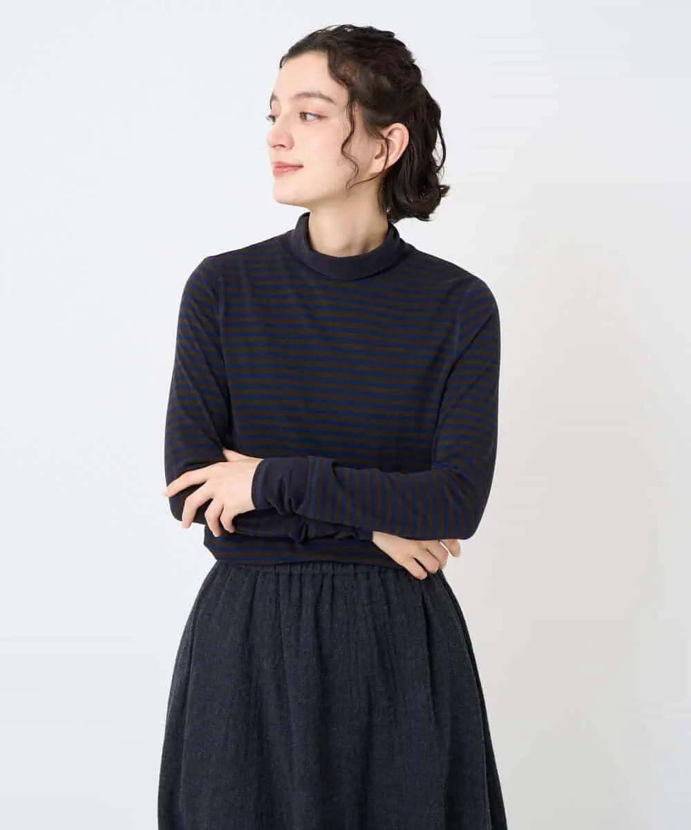 Этот топ с высоким воротником сочетает в себе два разных полосатых узора. Манжеты и воротник украшены тонкой (дафниевой) полоской, создавая забавный, но не слишком простой дизайн. Это универсальная вещь, которую можно носить как отдельно, так и в сочетании с различными предметами одежды, такими как жилеты, трикотаж и платья.