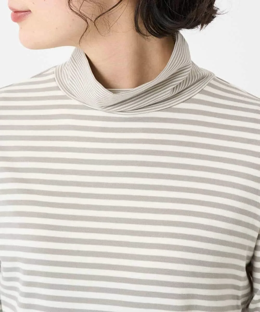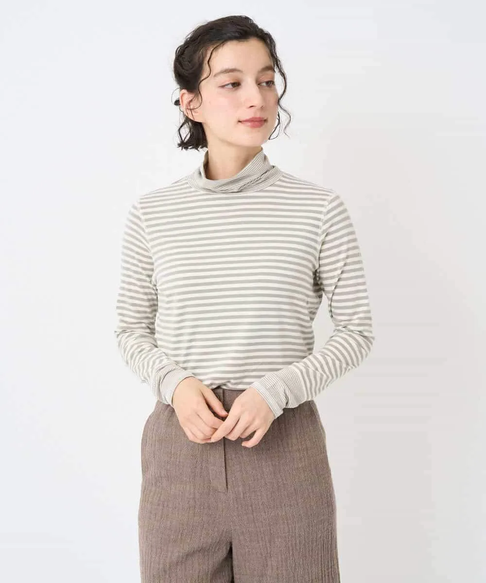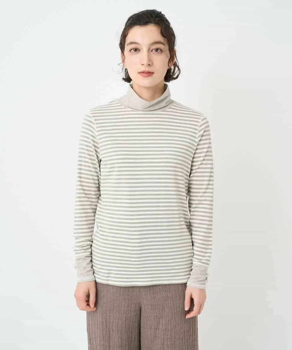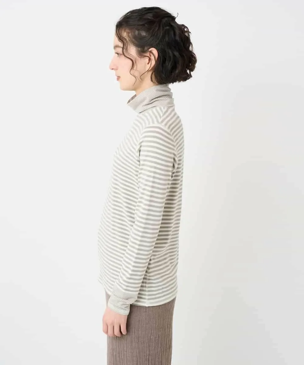 Этот топ с высоким воротником сочетает в себе два разных полосатых узора. Манжеты и воротник украшены тонкой (дафниевой) полоской, создавая забавный, но не слишком простой дизайн. Это универсальная вещь, которую можно носить как отдельно, так и в сочетании с различными предметами одежды, такими как жилеты, трикотаж и платья.