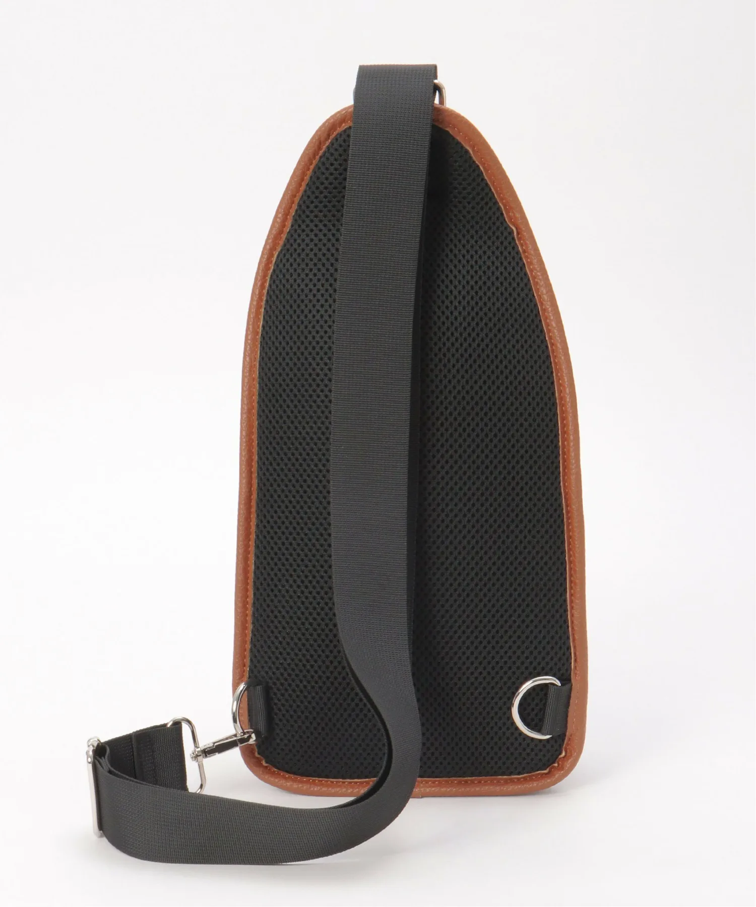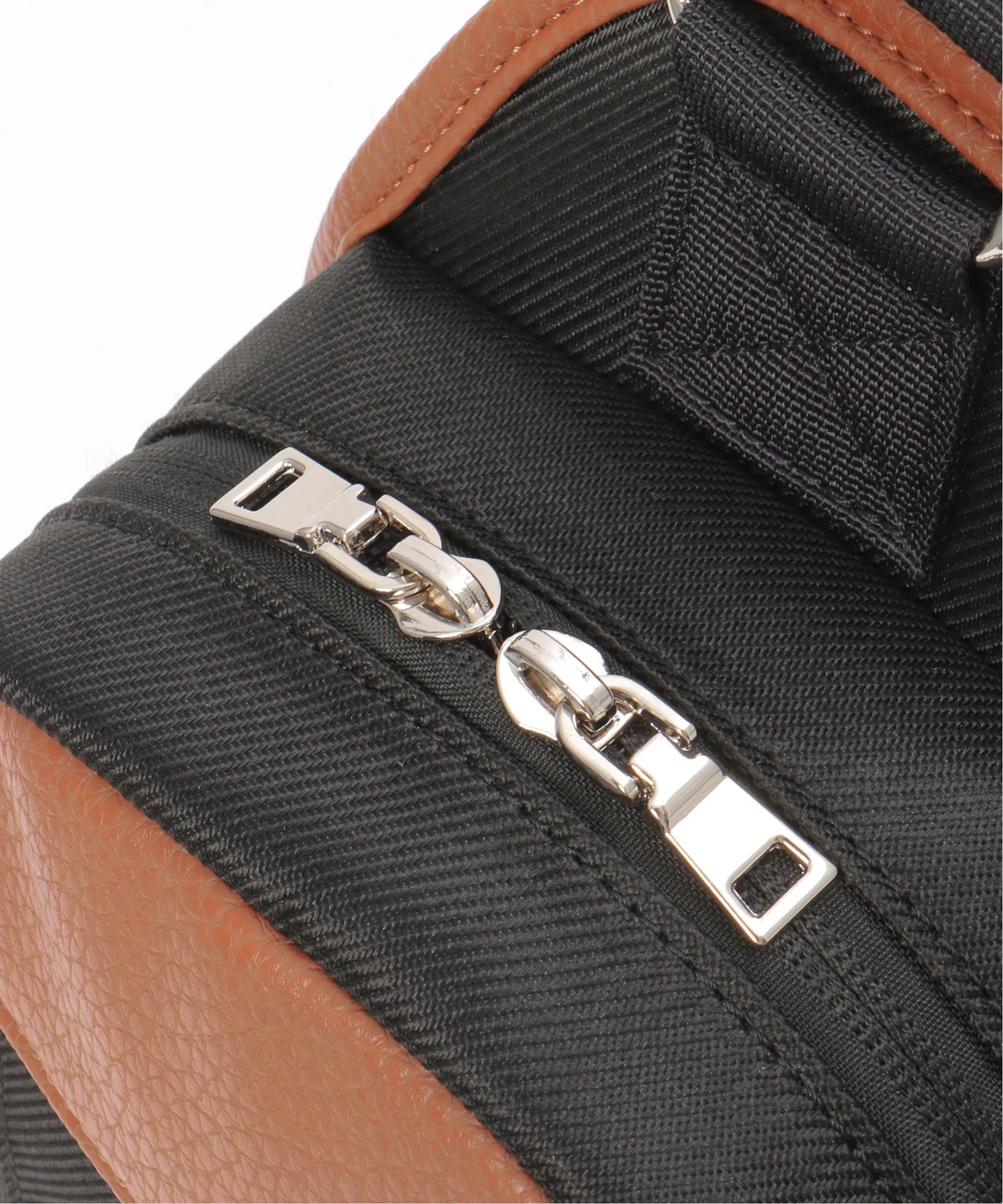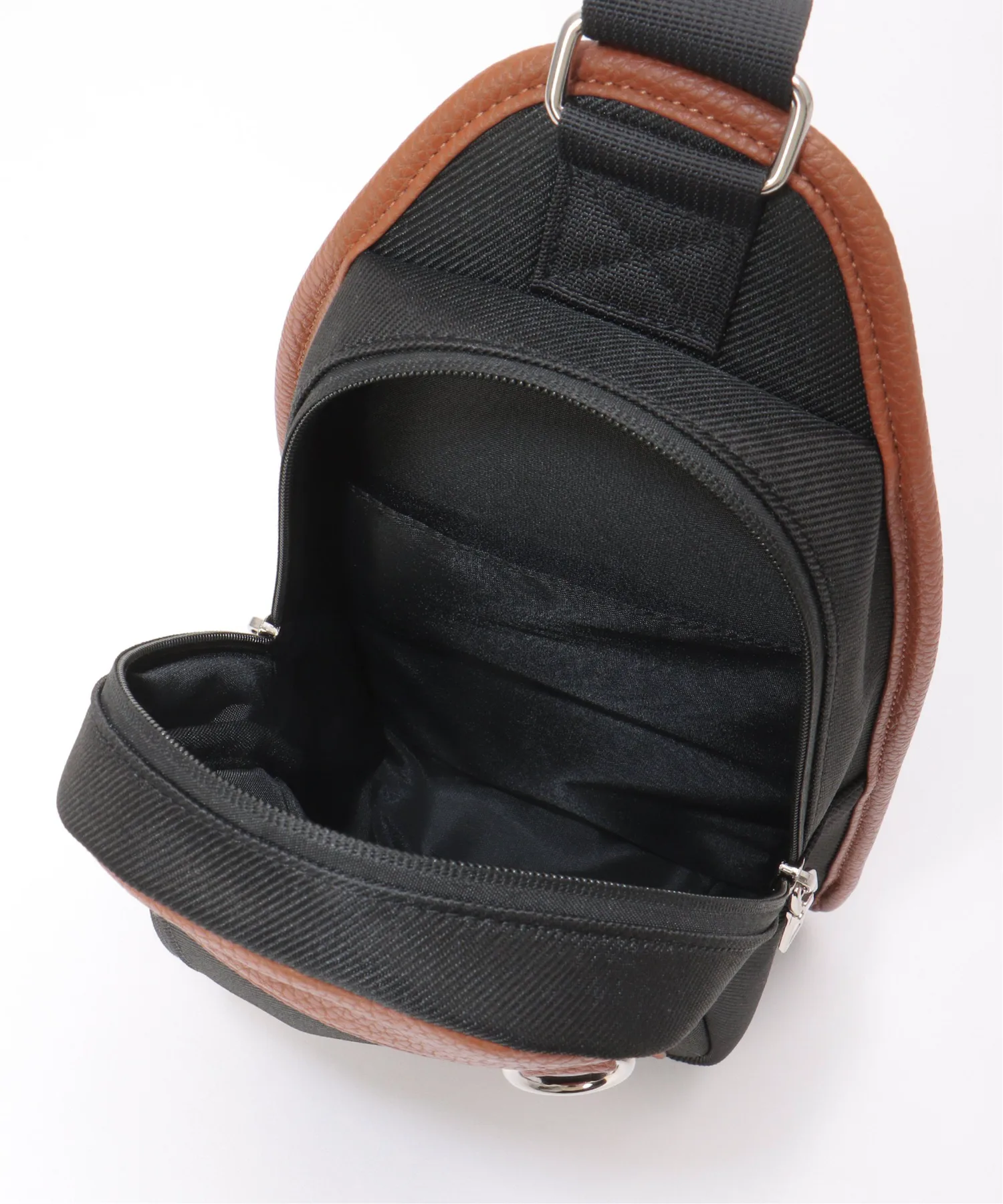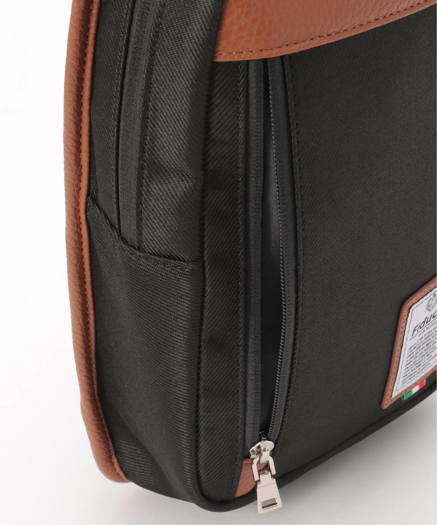 Сумка через плечо с контрастной цветовой гаммой, сочетающей полиэстер и материалы, имитирующие кожу.