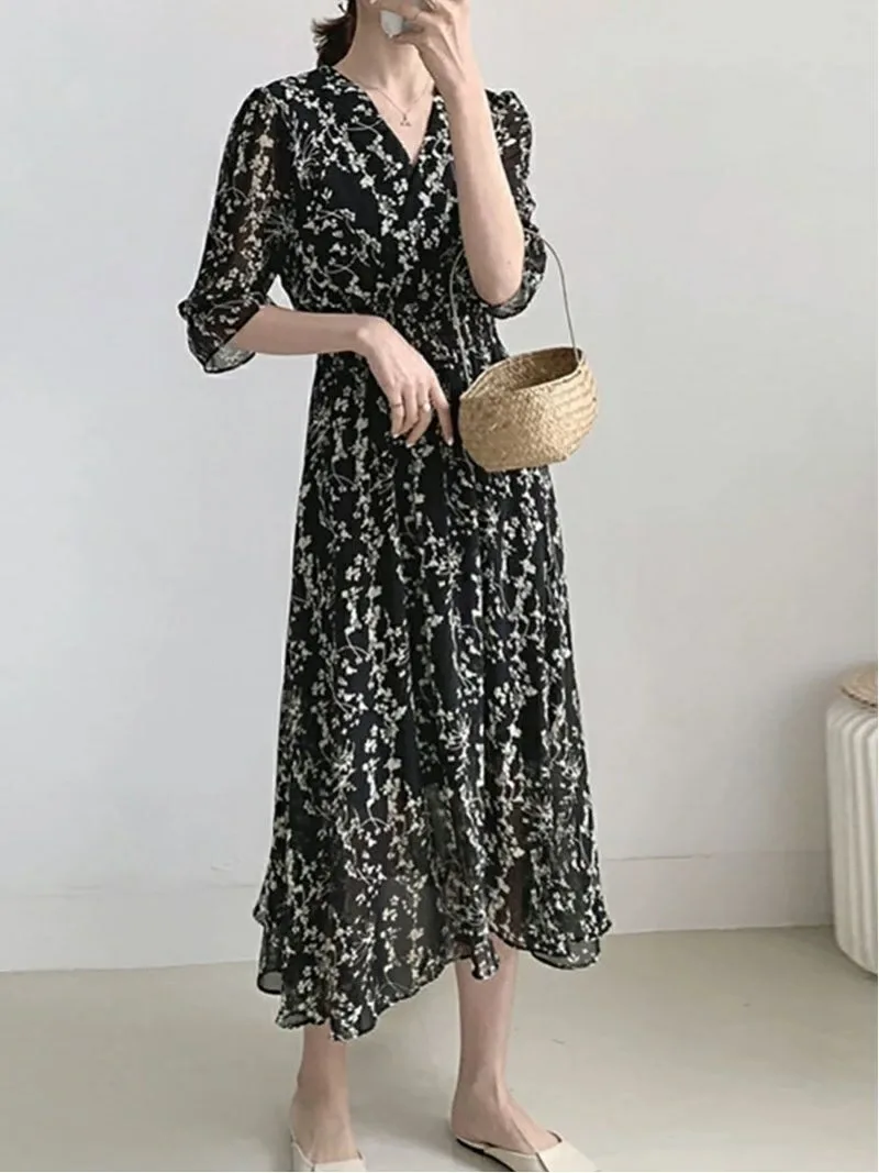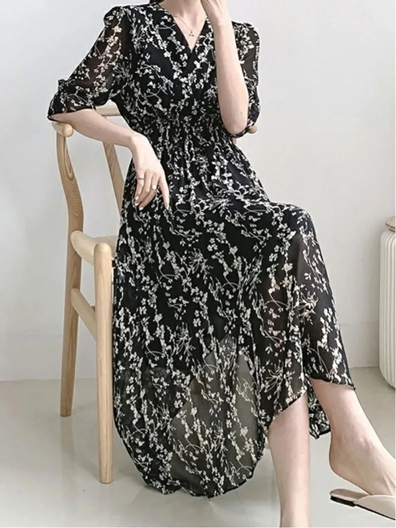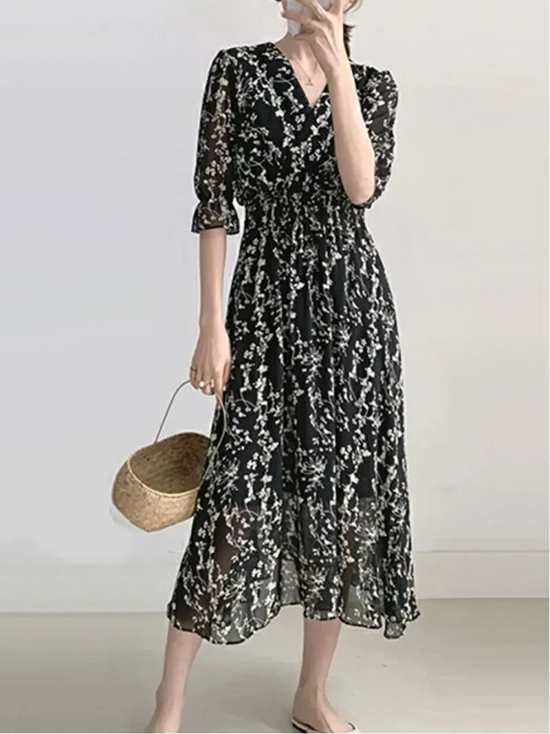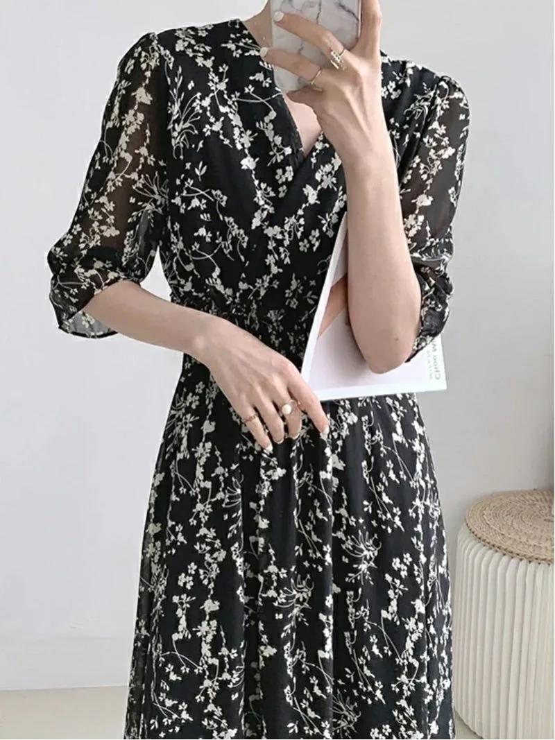 Выглядите опрятно и аккуратно всего одним предметом одежды! Платье из шифона с цветочным принтом.