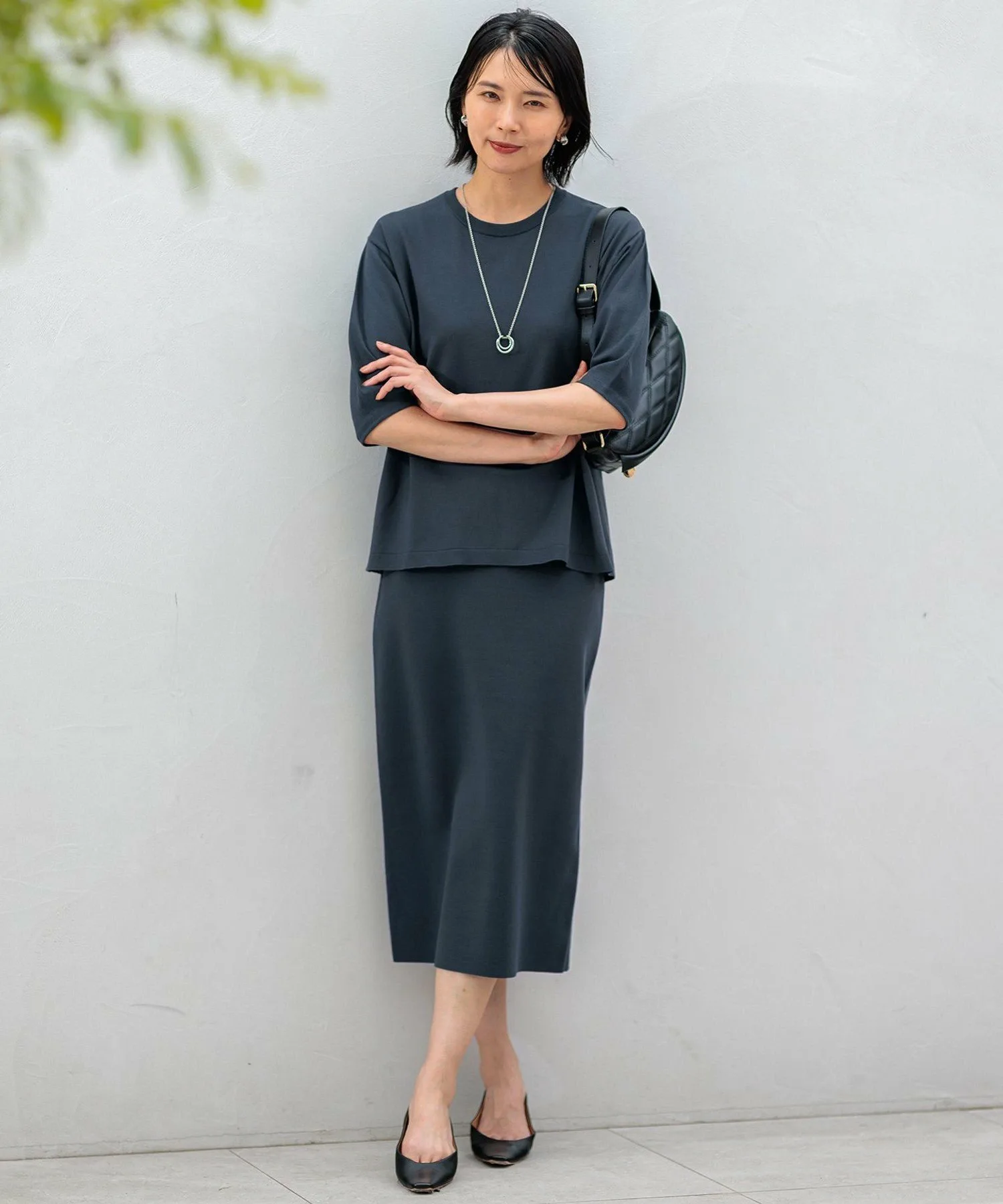 Материал [Трикотаж] Этот роскошный трикотаж мягкий на ощупь, легкий и эластичный. Этот популярный материал «Вискоза» изготавливается с использованием специального метода скручивания, при котором мягкая, упругая, ультратонкая вискозная пряжа обматывается вокруг сердцевины из эластичной пряжи. Умеренный блеск и высокая плотность этой красиво сотканной ткани создают аккуратный и опрятный вид. Она приятна на ощупь, легкая и эластичная, а также легко стирается вручную, что делает ее идеальным вариантом для переходного периода между сезонами.