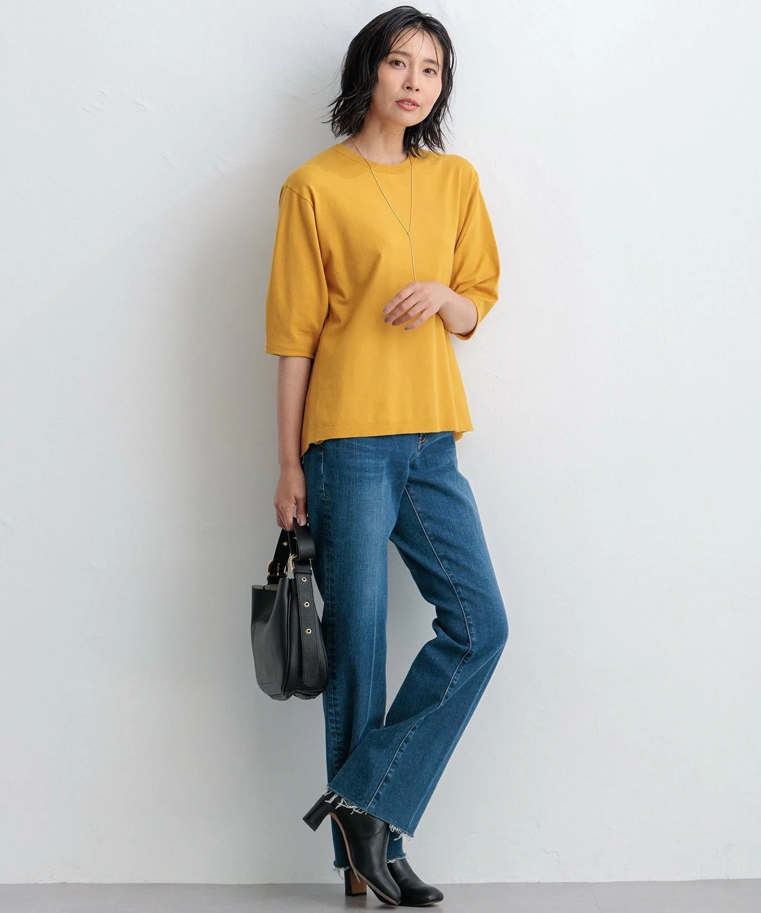 Материал [Трикотаж] Этот роскошный трикотаж мягкий на ощупь, легкий и эластичный. Этот популярный материал «Вискоза» изготавливается с использованием специального метода скручивания, при котором мягкая, упругая, ультратонкая вискозная пряжа обматывается вокруг сердцевины из эластичной пряжи. Умеренный блеск и высокая плотность этой красиво сотканной ткани создают аккуратный и опрятный вид. Она приятна на ощупь, легкая и эластичная, а также легко стирается вручную, что делает ее идеальным вариантом для переходного периода между сезонами.
