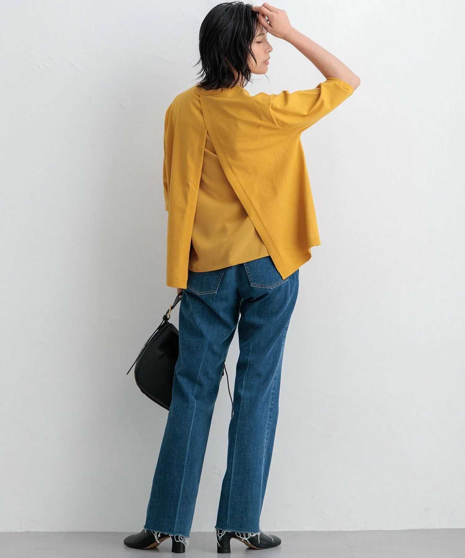Этот пуловер имеет рукава-фонарики длиной до локтя для классического образа. Деталь на спине, демонстрирующая мягкую, приятную на ощупь драпировку, добавляет нотку элегантности. Круглый подол с укороченным передним краем создает аккуратный вид и рекомендуется для сочетания с брюками. Доступен в шести цветах: светло-серый (#003), черный (#005), темно-коричневый (#035), серо-голубой (#074), желтый (#040) и темно-зеленый (#065).